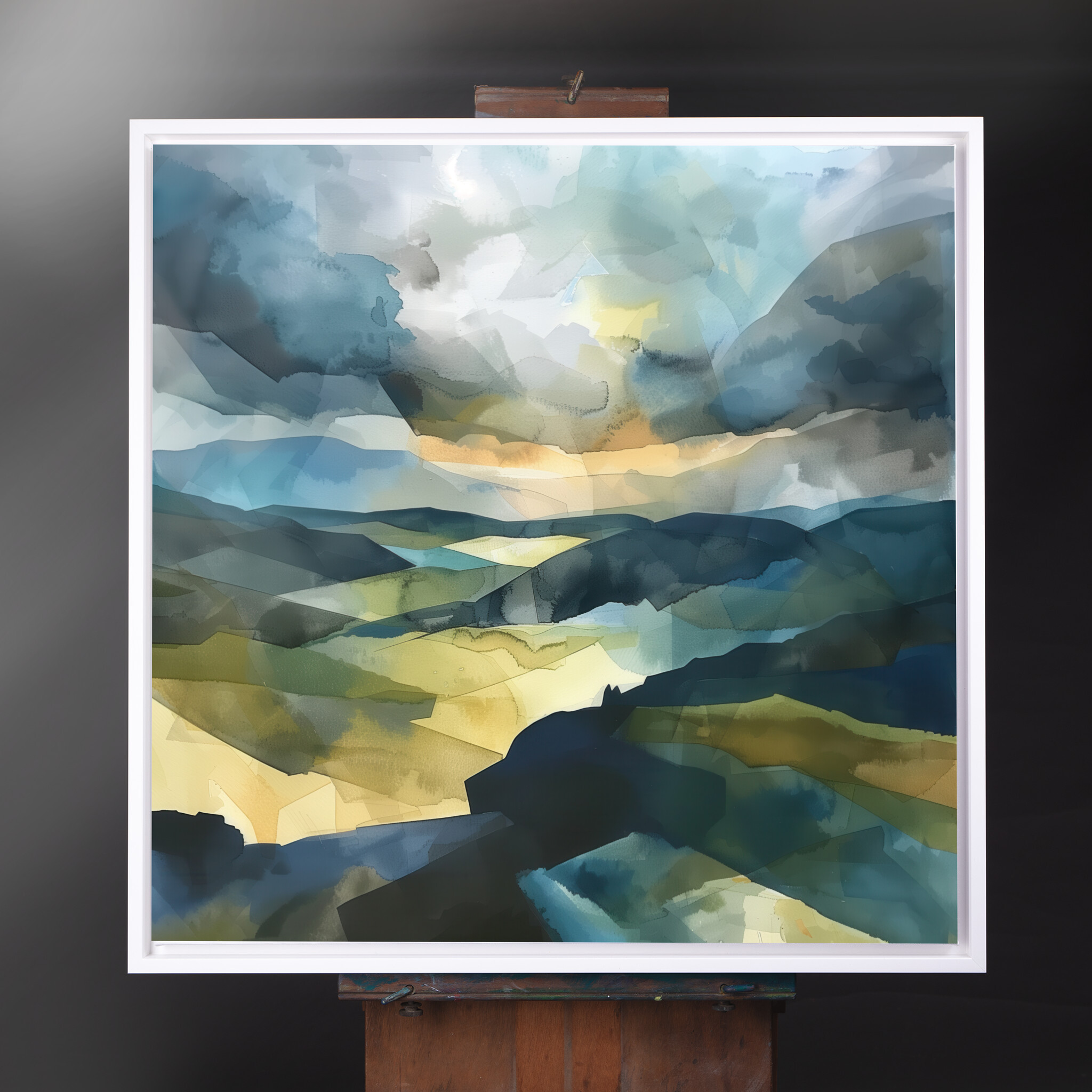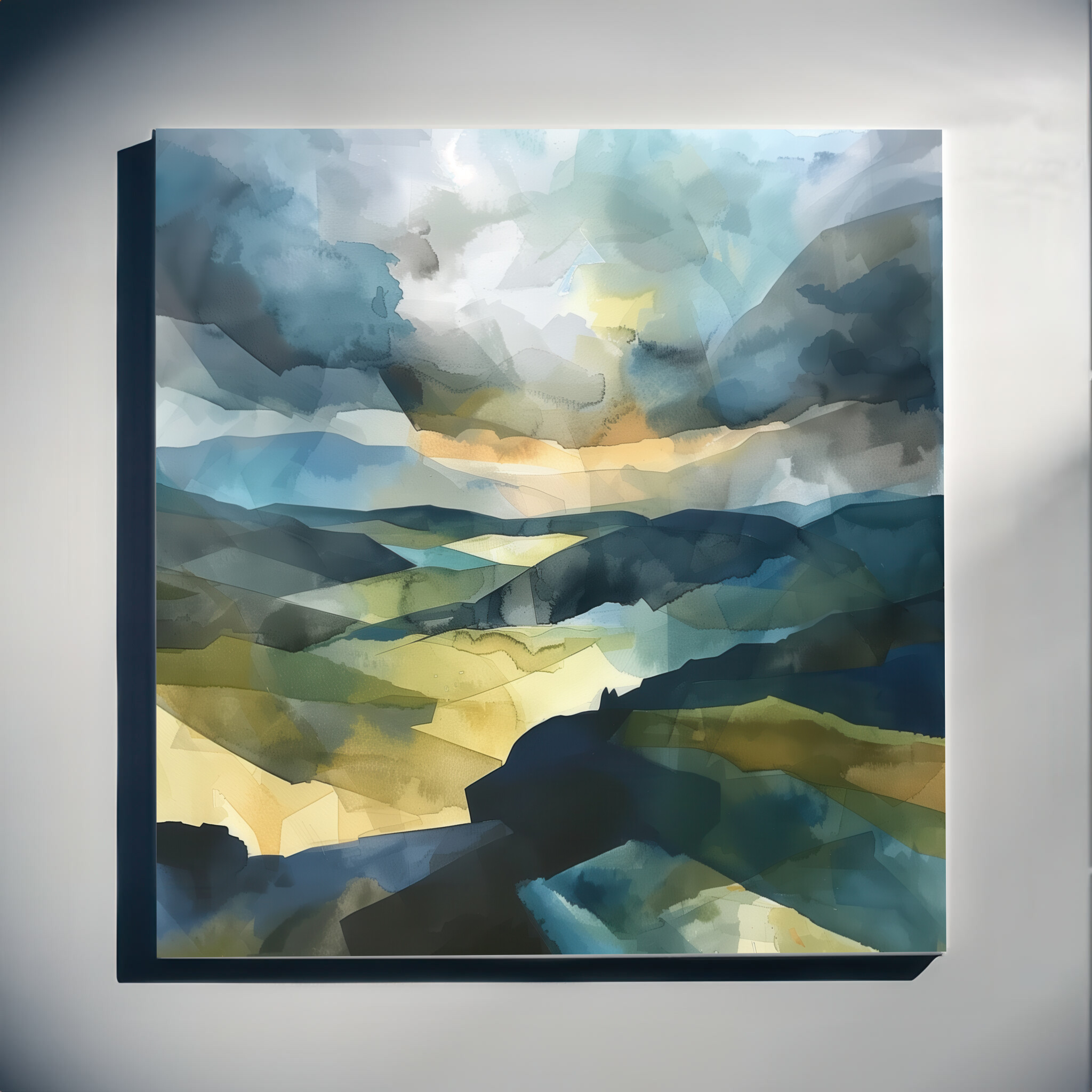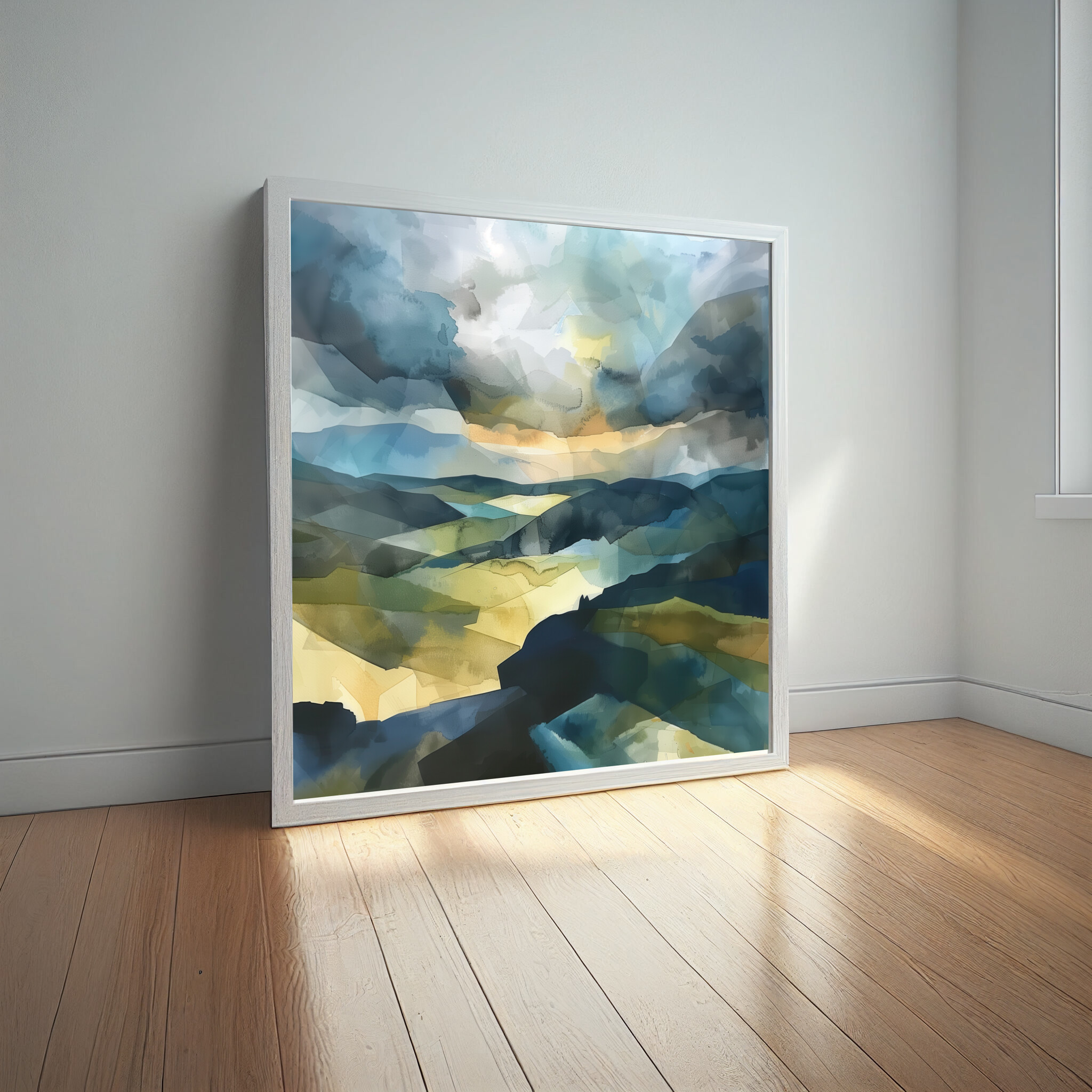 This captivating artwork depicts the enchanting landscape of the Southdowns. With its abstract style, the painting beautifully blends rich blue hues with earthy tones, capturing the essence of this picturesque location. The modern abstract approach creates a sense of movement and depth, drawing the viewer into the serene yet dynamic scene.