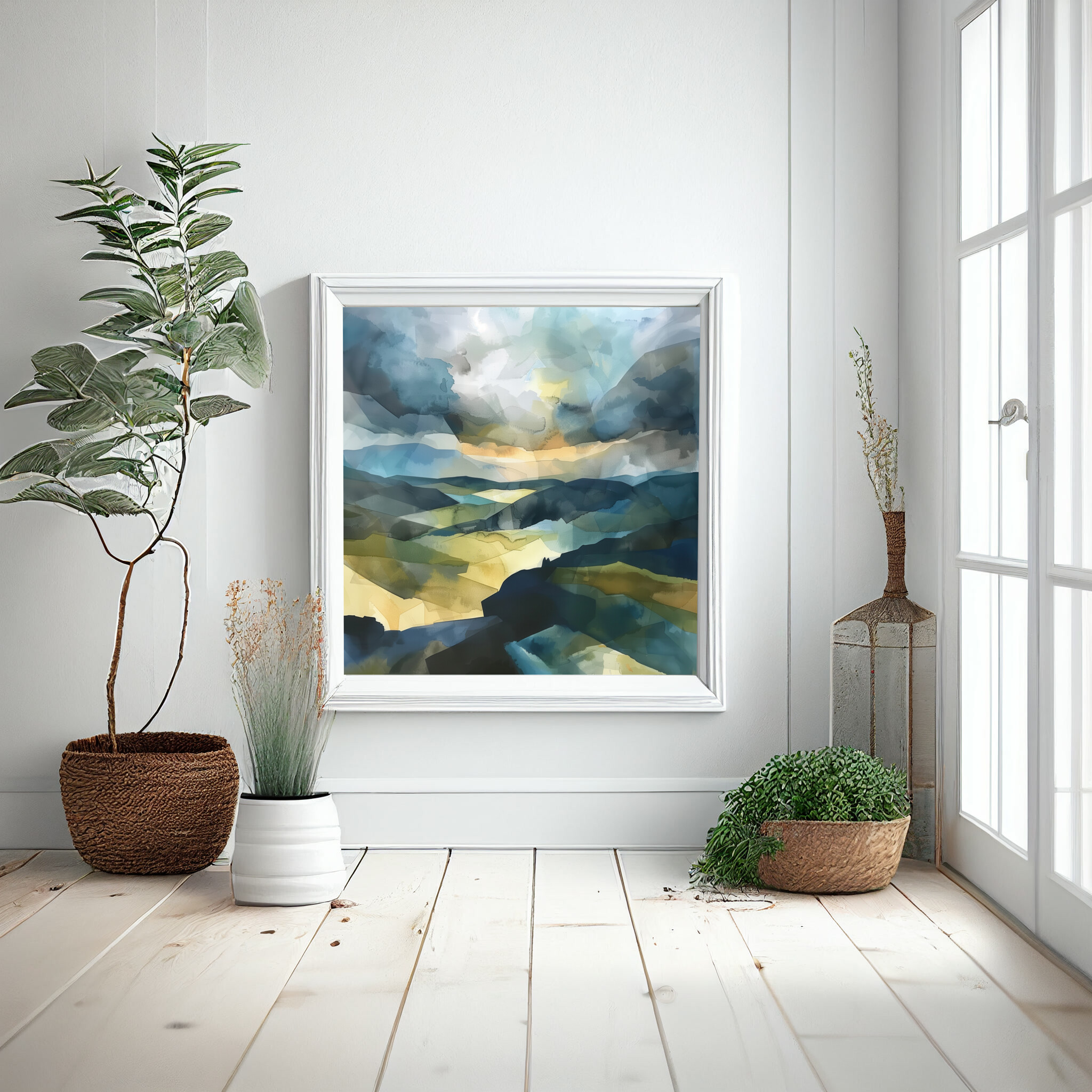 The artwork evokes a feeling of calm and tranquillity, making it perfect for your living room, bedroom decor, or office art. Its soothing palette and flowing forms effortlessly complement various interior styles, adding a touch of sophistication and character to any space.
