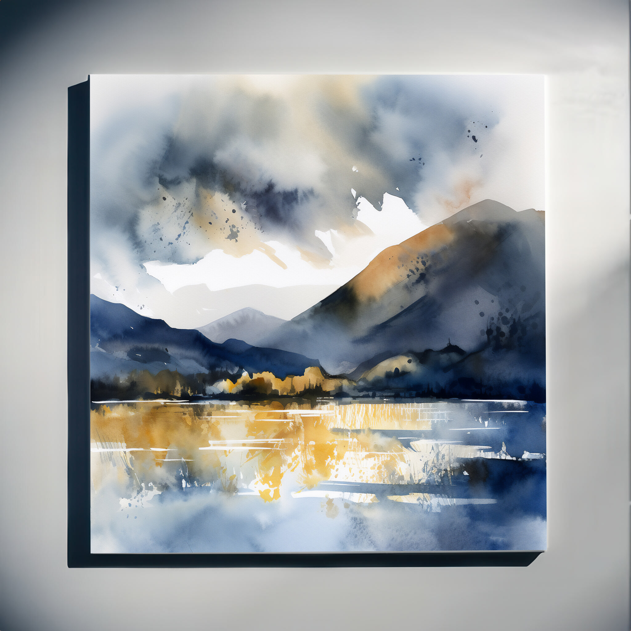 This abstract landscape artwork beautifully captures the serene and tranquil essence of Bassenthwaite lake. Featuring calming blue tones contrasted with warm accents, this piece evokes a sense of elegance and depth. Perfect for modern and contemporary settings, the artwork seamlessly blends into living room art, bedroom decor, and even as striking office art.