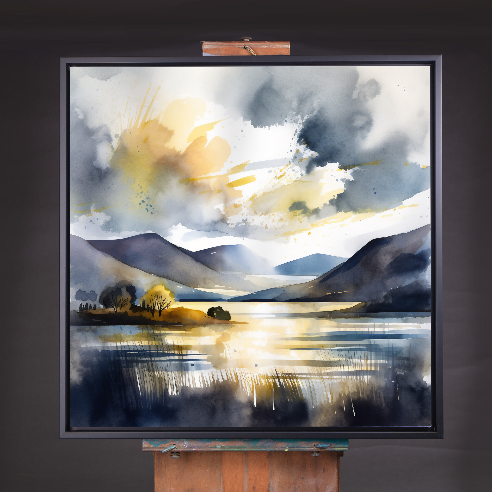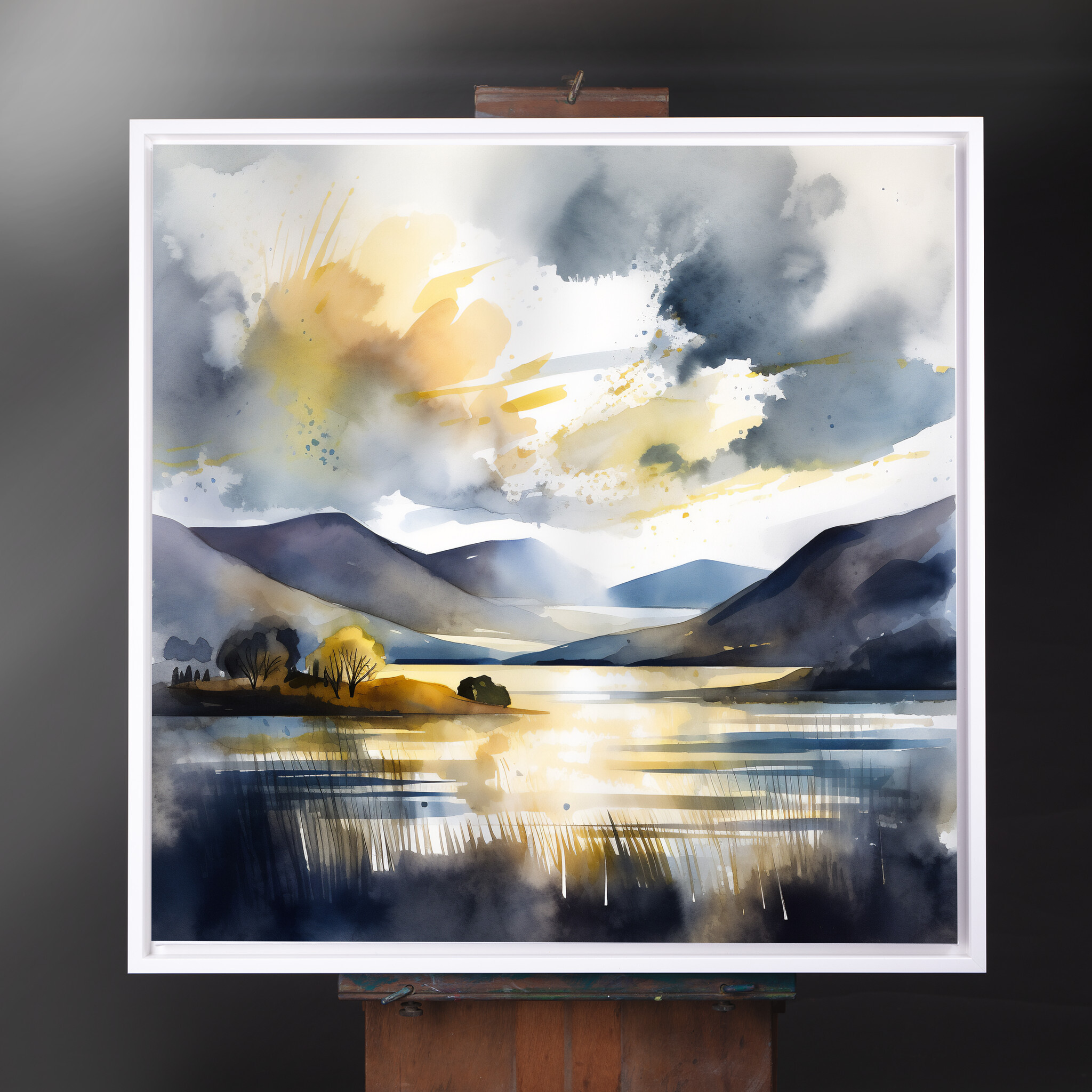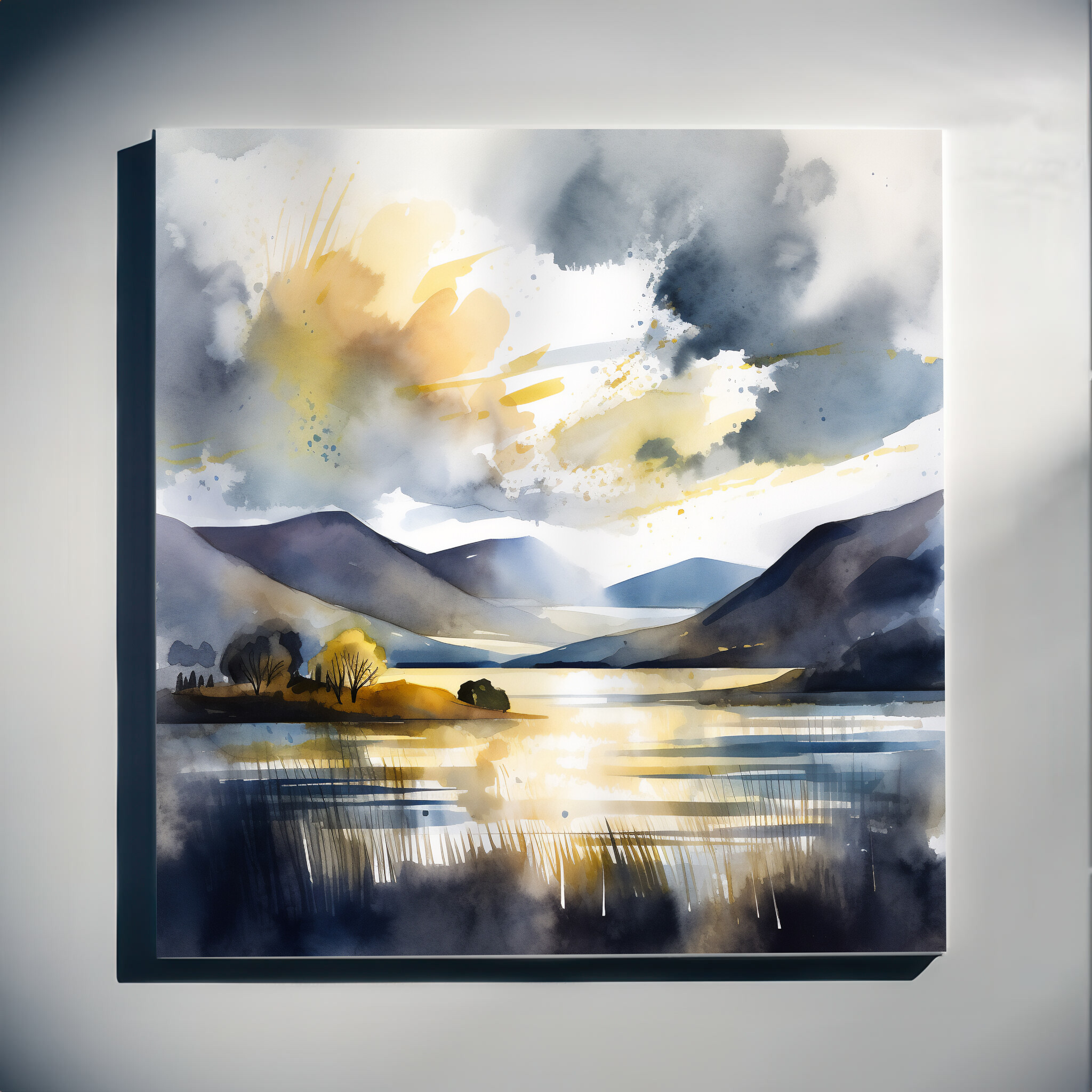 Immerse yourself in the tranquil beauty of Bassenthwaite with this captivating watercolor landscape. The harmonious blend of blue art and gold accents brings the scene to life, capturing the serene essence of this picturesque location. Perfect for any art lover, this piece adds a touch of sophistication and peace to your home decor.