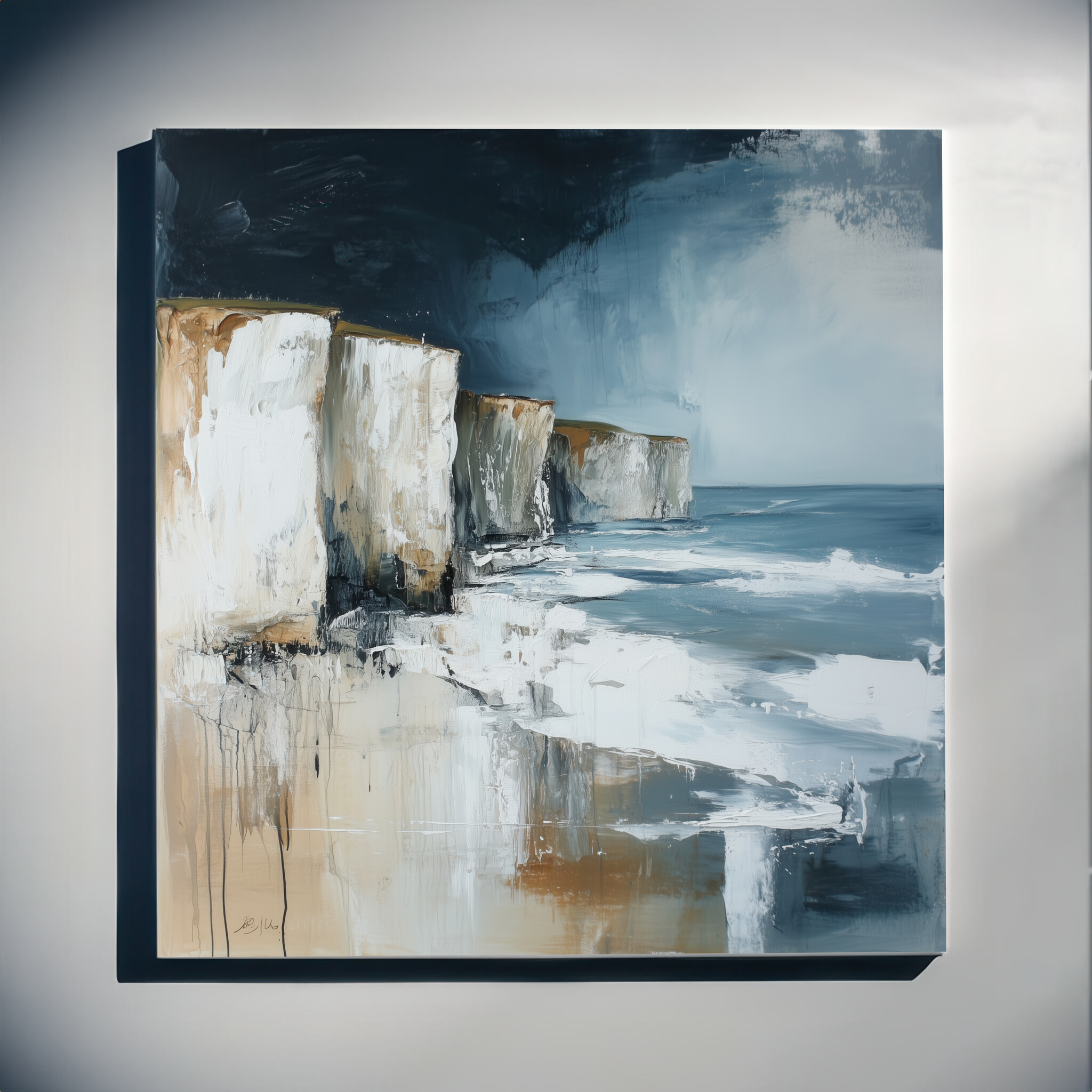 This stunning impressionist artwork captures the breathtaking beauty of Birling Gap with its towering cliffs and serene blue waters. The piece uses a calming palette of blue and earth tones, making it an ideal choice for art lovers seeking coastal decor. Perfect for your living room, this landscape evokes a sense of tranquility and natural grandeur.