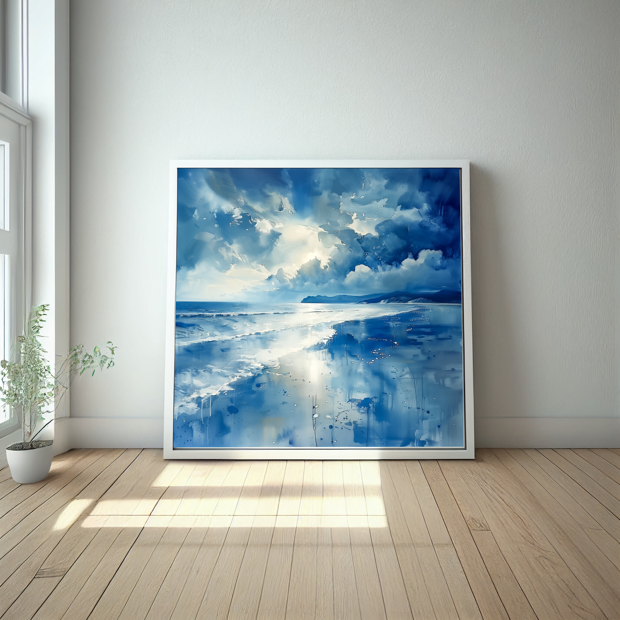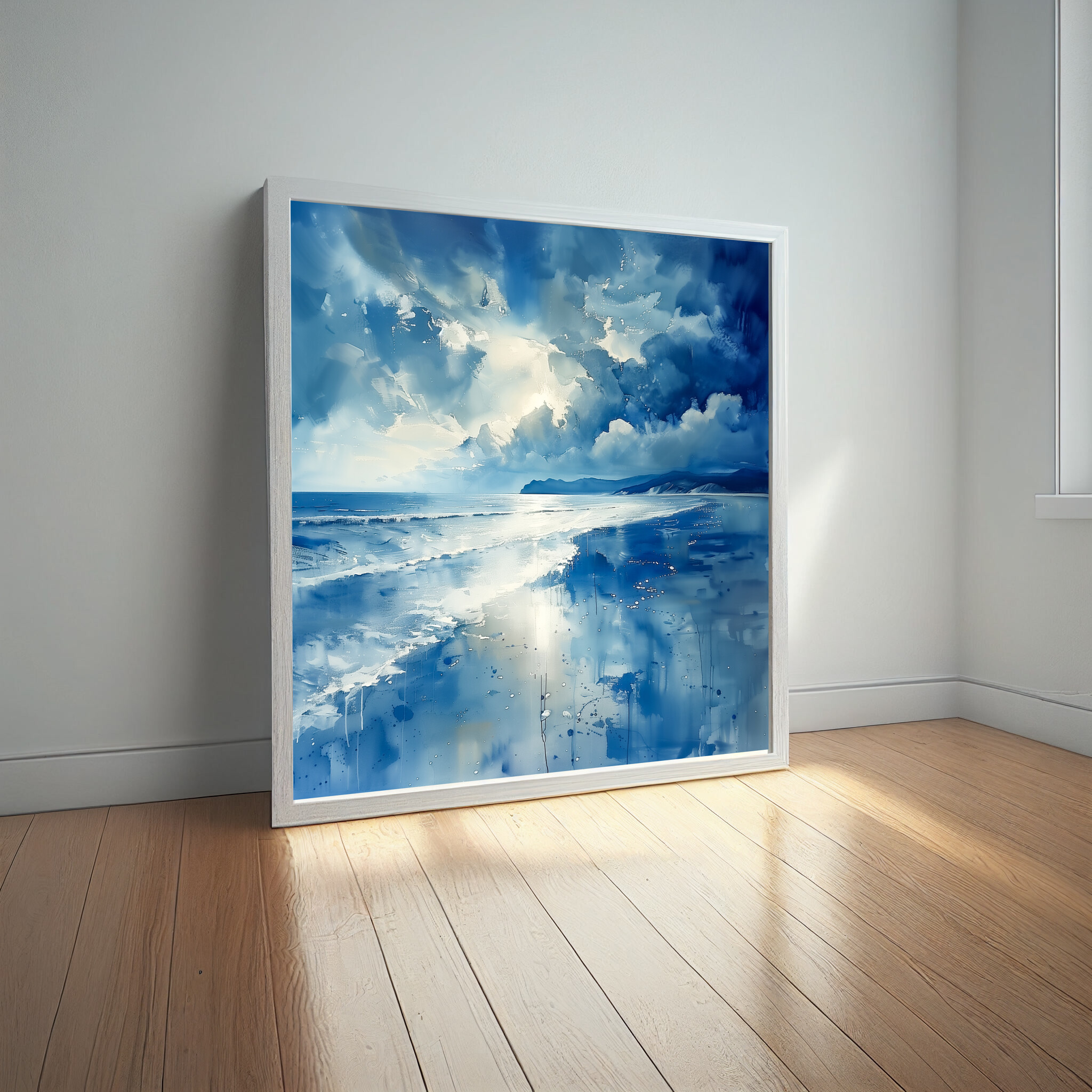 Perfectly suited for your living room or bedroom, the artwork evokes a sense of tranquility and wonder, reminiscent of soft waves and coastal breezes. Its elegant simplicity and coastal charm make it ideal for enhancing both modern and minimalist interiors.