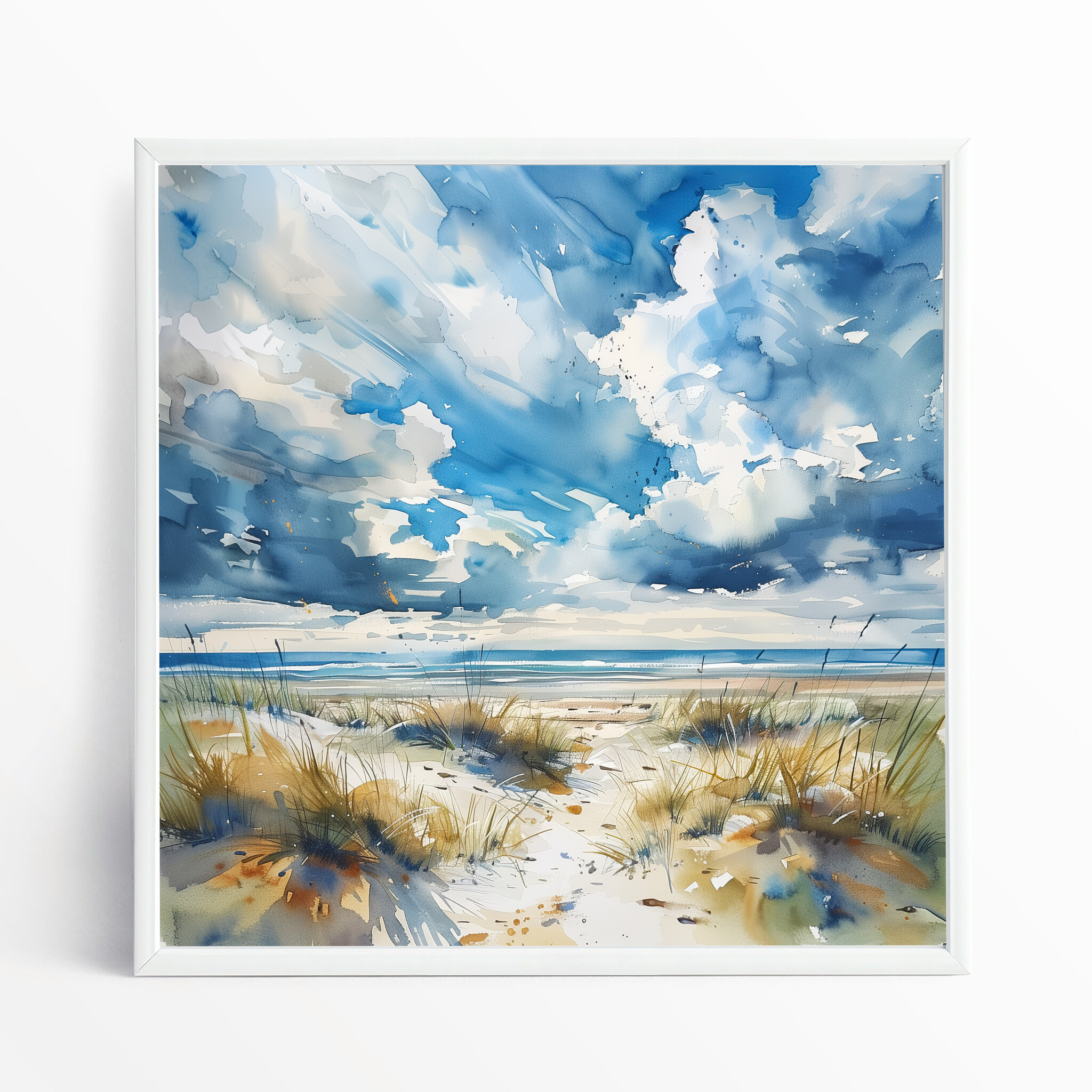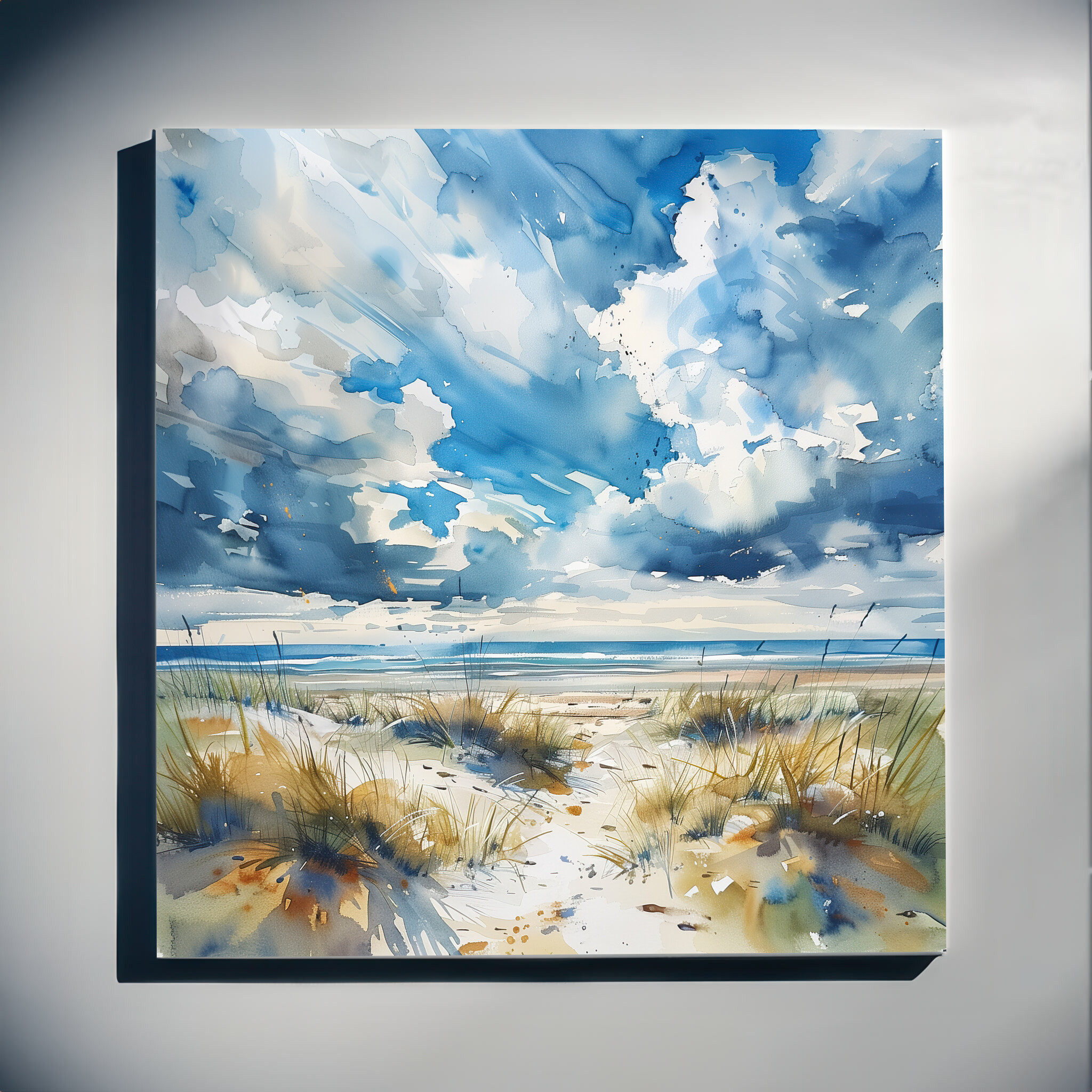 Immerse yourself in the tranquil mood of this blue art, perfect for enhancing your living room or adding a touch of calm to your bedroom decor. The soothing blue tones and coastal theme make it an ideal choice for office art as well, bringing the refreshing essence of the ocean indoors.