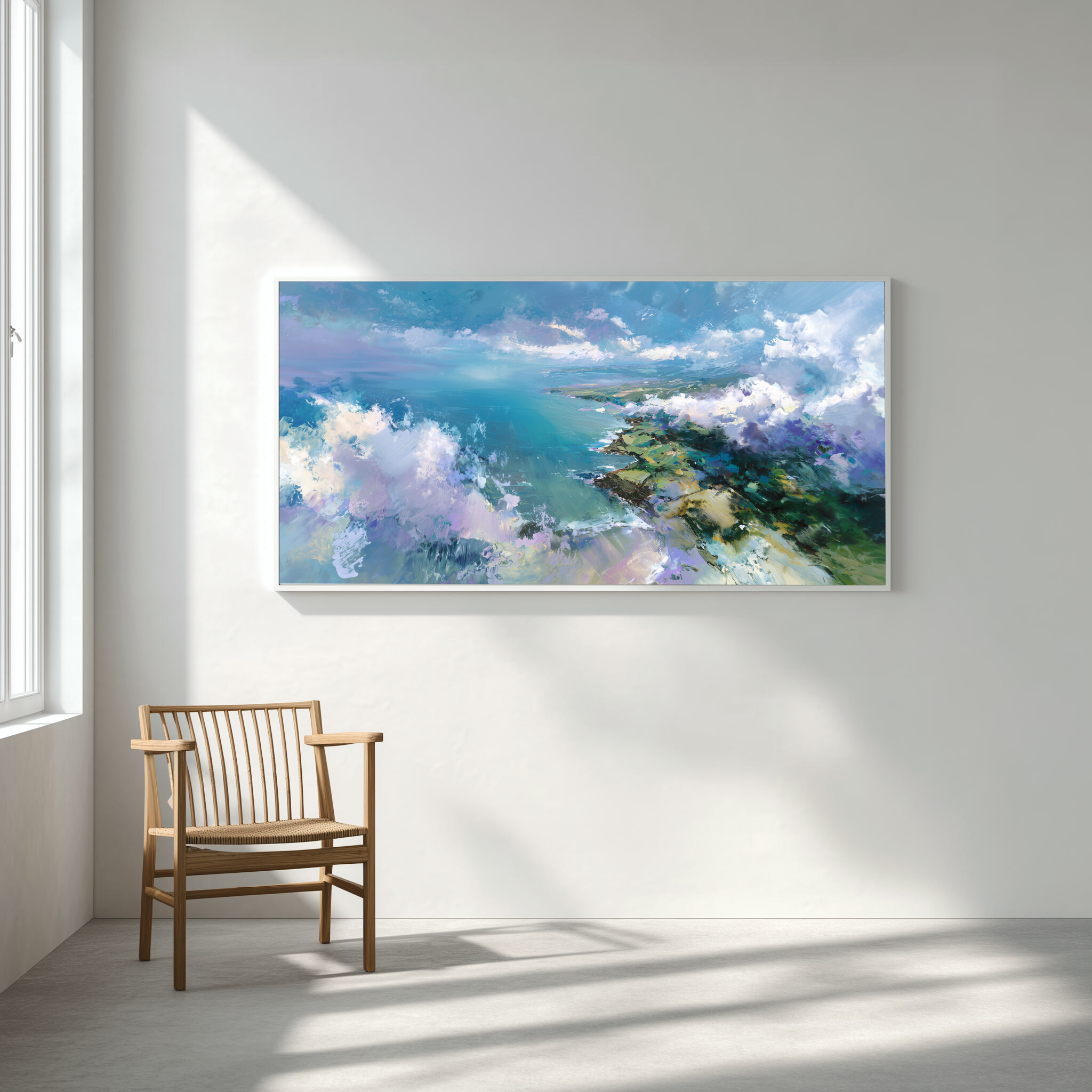 The artwork evokes a serene and contemplative mood, making it a perfect addition to living room art or bedroom decor. Its coastal charm brings tranquillity to any office art collection, providing an escape into the peaceful seascape.