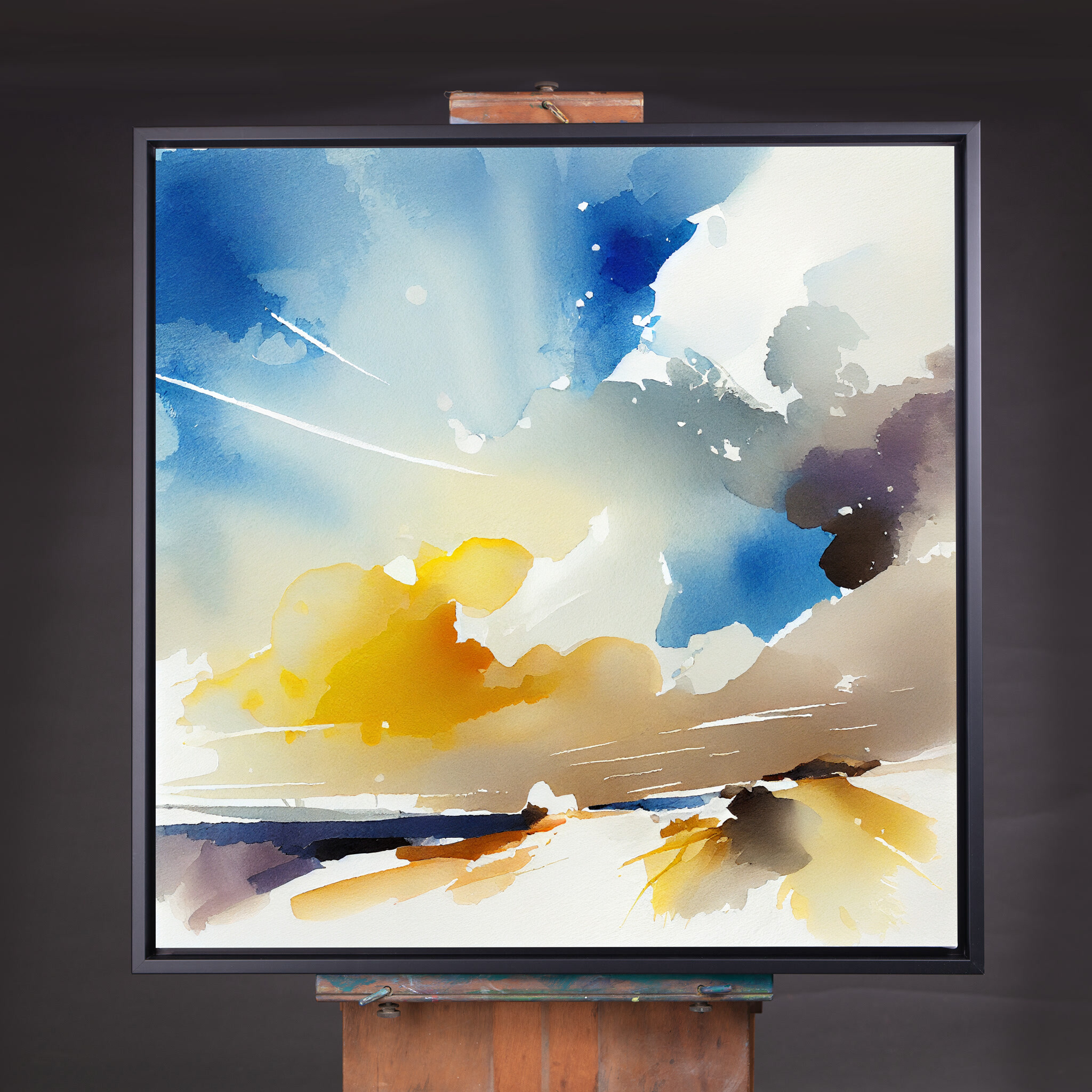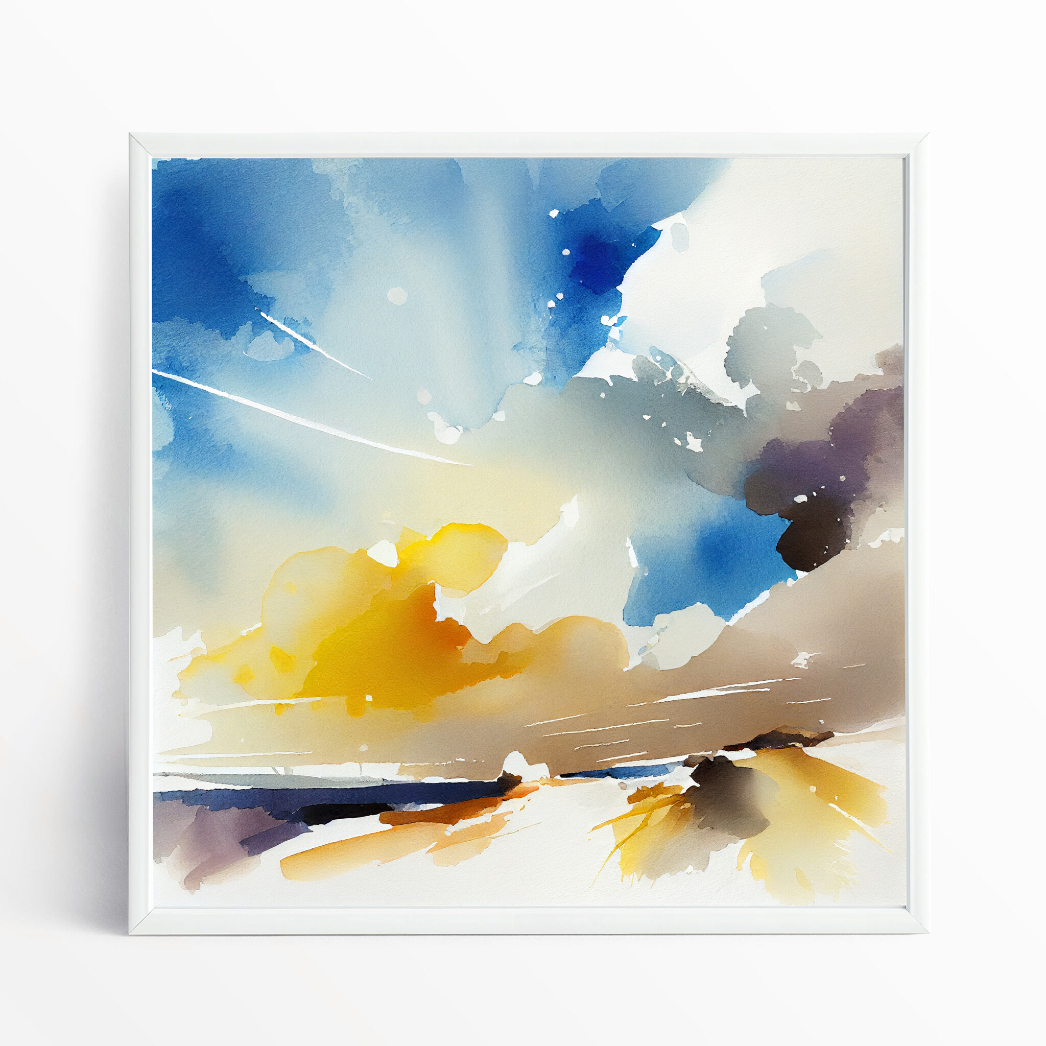 This stunning abstract skyscape captures the vibrant hues of Cornwall’s ethereal skies. With its blend of blue art and warm tones, the artwork is a captivating visual display that evokes a sense of serenity and wonder. The fluid abstraction gives the piece a modern feel, making it a versatile addition to any space. Evoking tranquility and inspiration, this Cornwall masterpiece is perfect for your living room, bedroom decor, or office art collection. Its harmonious blend of colors and flowing forms make it an ideal choice for those seeking to enhance their home decor with a touch of elegance. Art lovers and those with a penchant for abstract design will adore this wall art. It also serves as a thoughtful housewarming or art lover gift, resonating with anyone who appreciates refined aesthetics. Choose from museum-quality prints, wall art, or canvas prints to fit any space from 8″ to 44″.