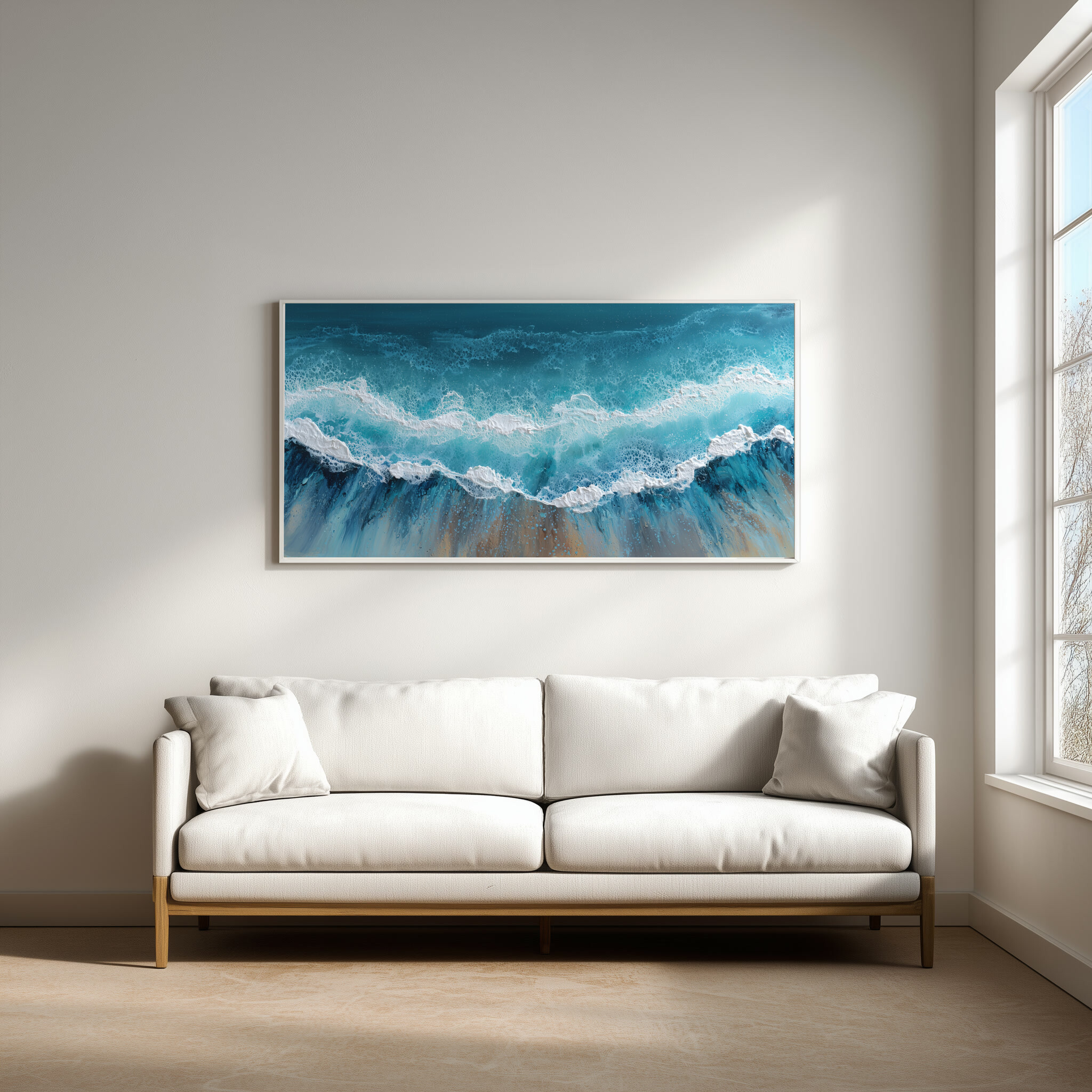 Feel the serene yet powerful presence of Cornwall’s waves, bringing tranquillity and depth into your living room or office. Its captivating blue hues are sure to complement any bedroom decor.