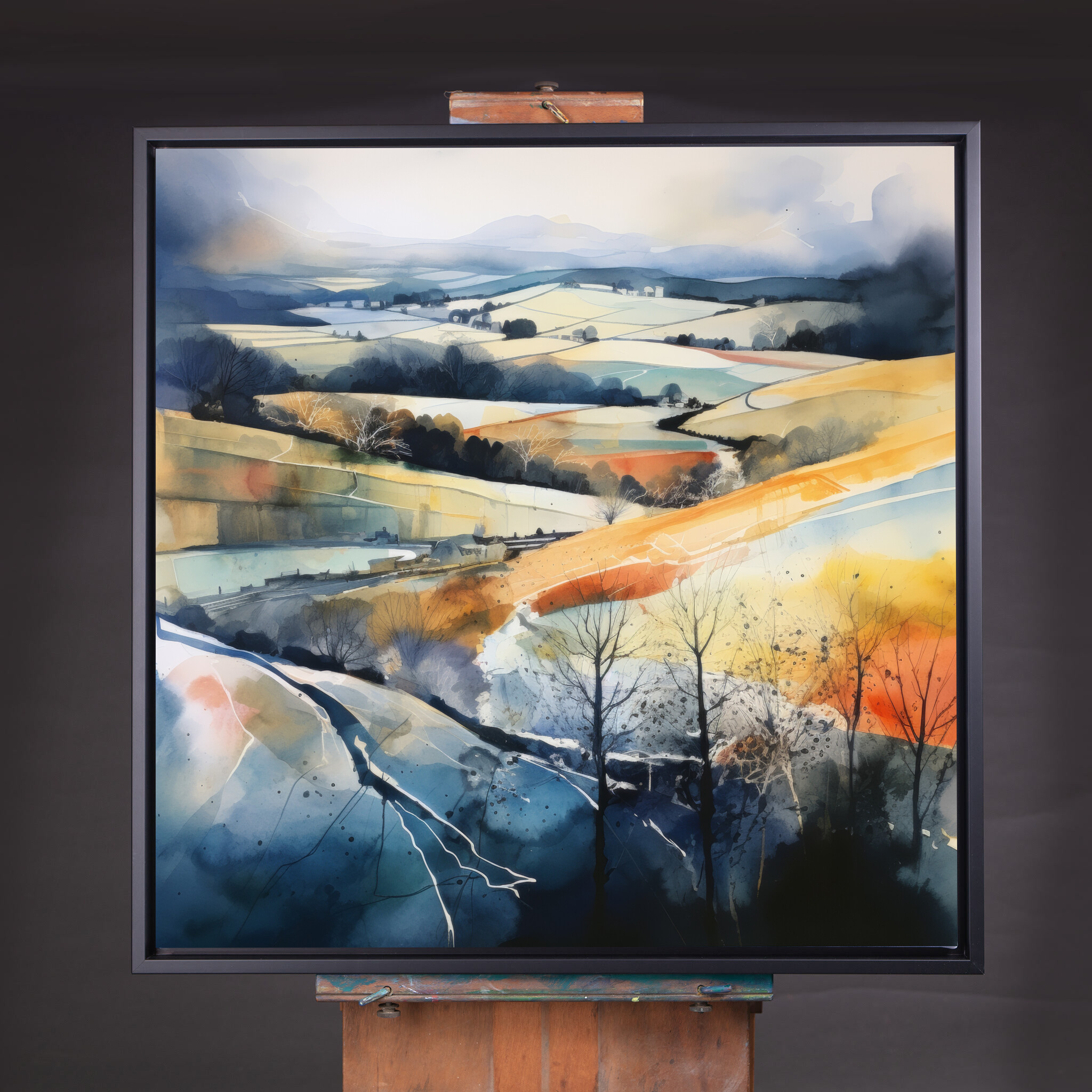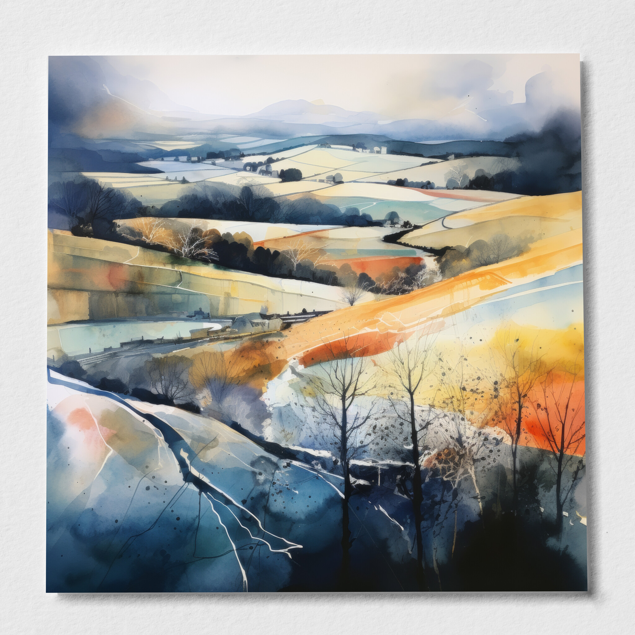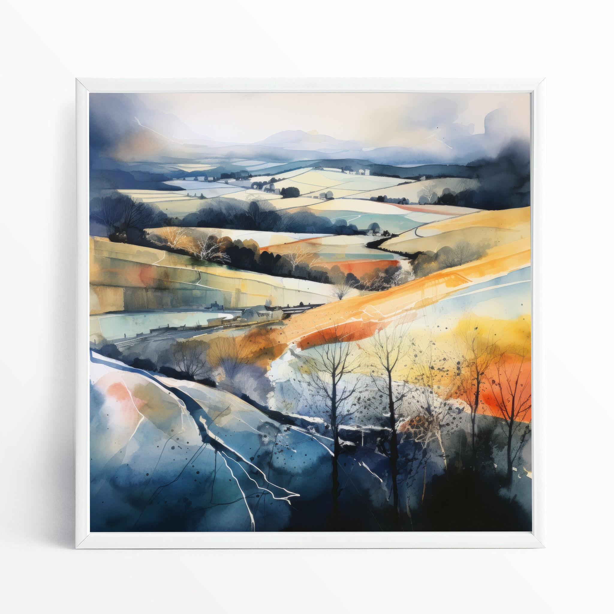 This impressionist artwork captures the serene beauty of the Cotswolds, with fields and hills rendered in a harmonious blend of blue art and warm tones. The landscape art style offers a tranquil escape, making it a captivating piece of wall art.