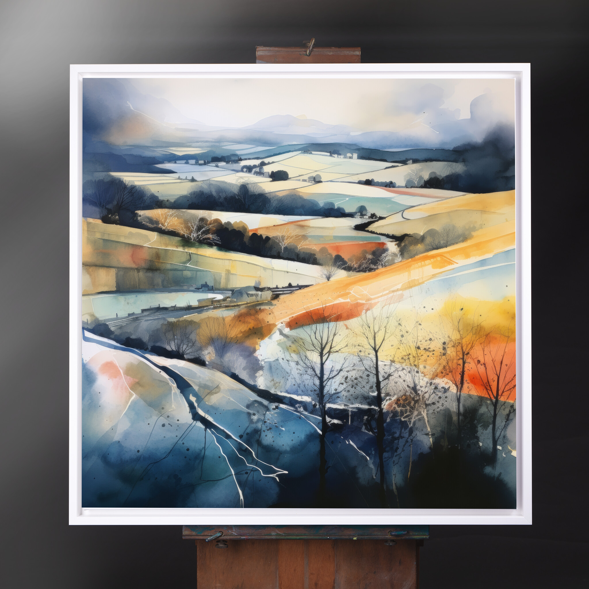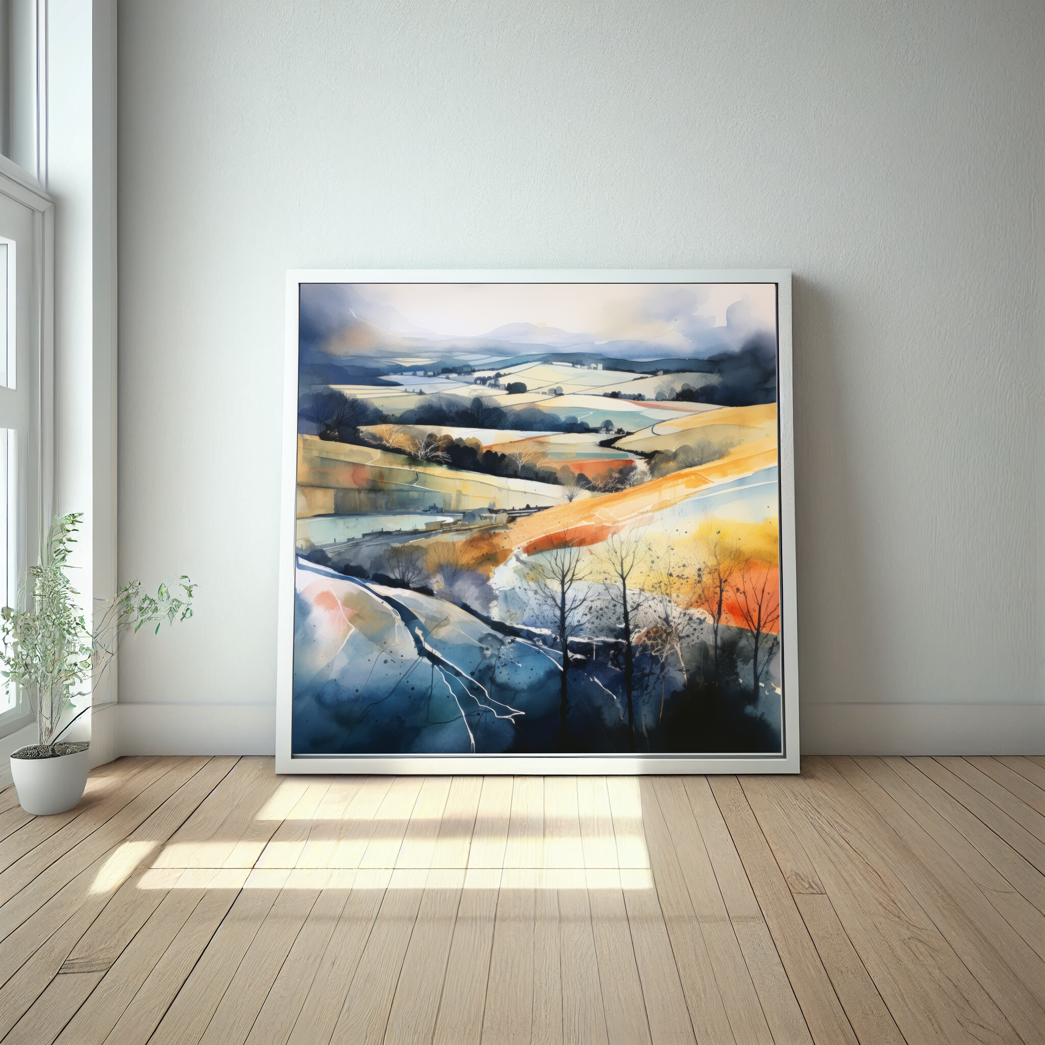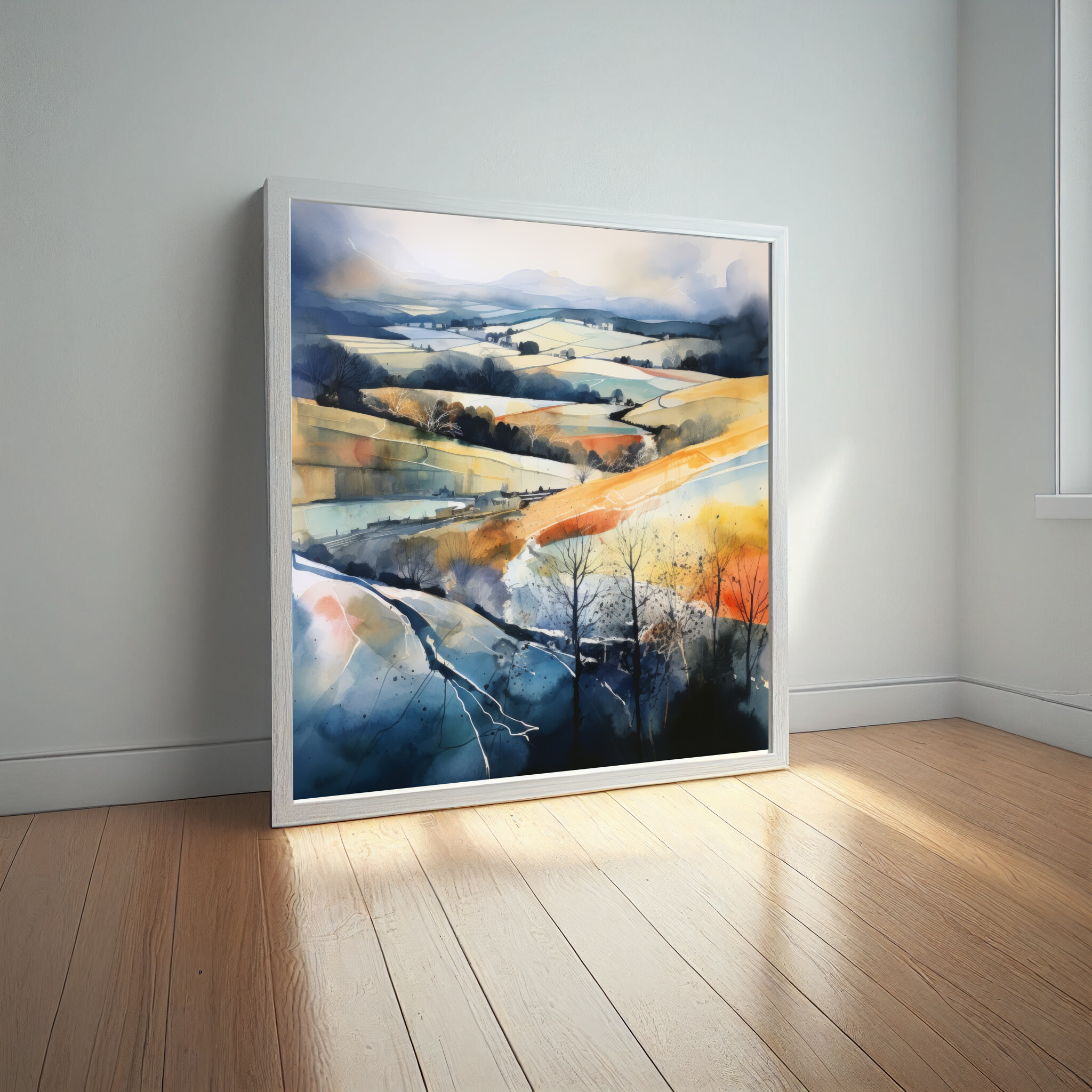 This impressionist artwork captures the serene beauty of the Cotswolds, with fields and hills rendered in a harmonious blend of blue art and warm tones. The landscape art style offers a tranquil escape, making it a captivating piece of wall art.