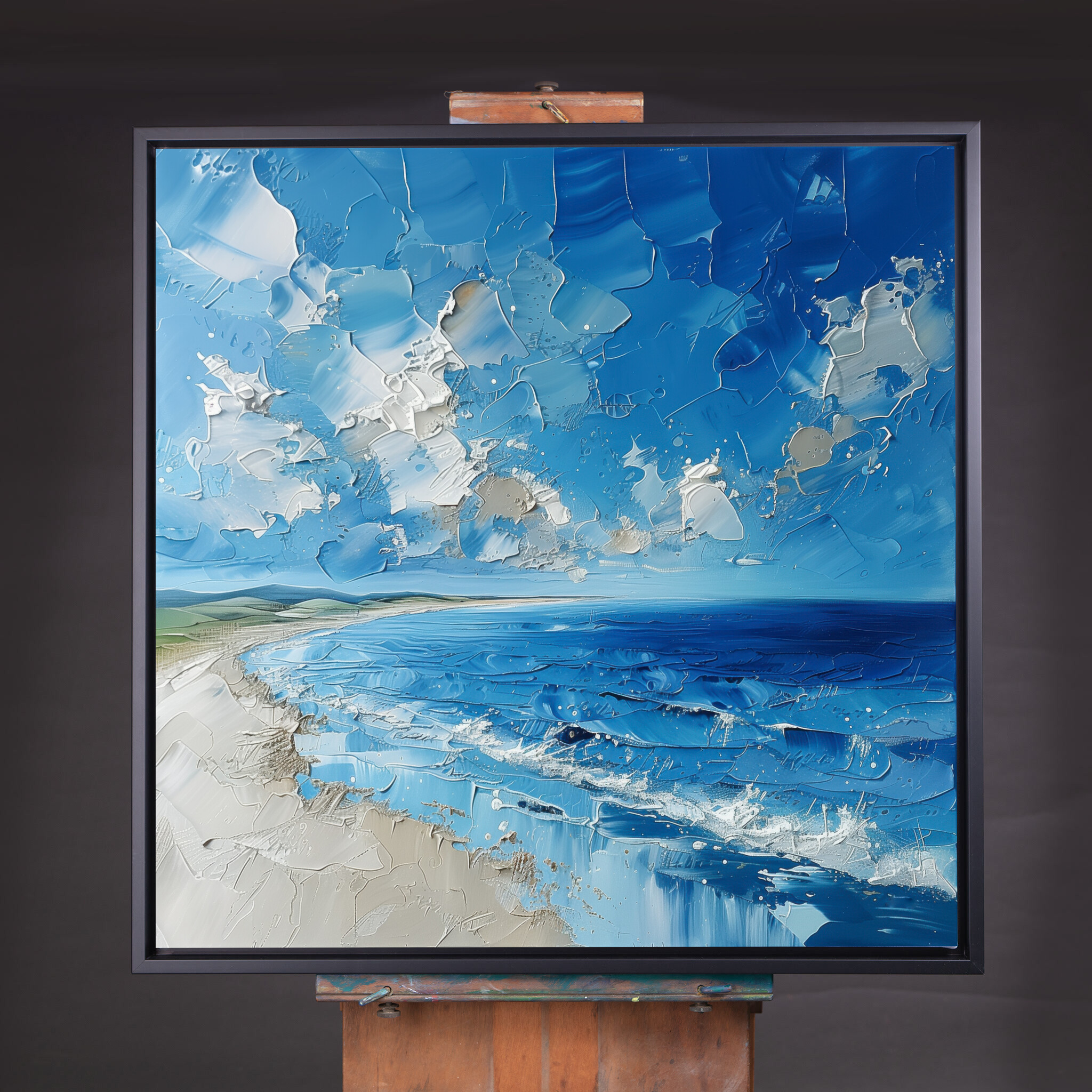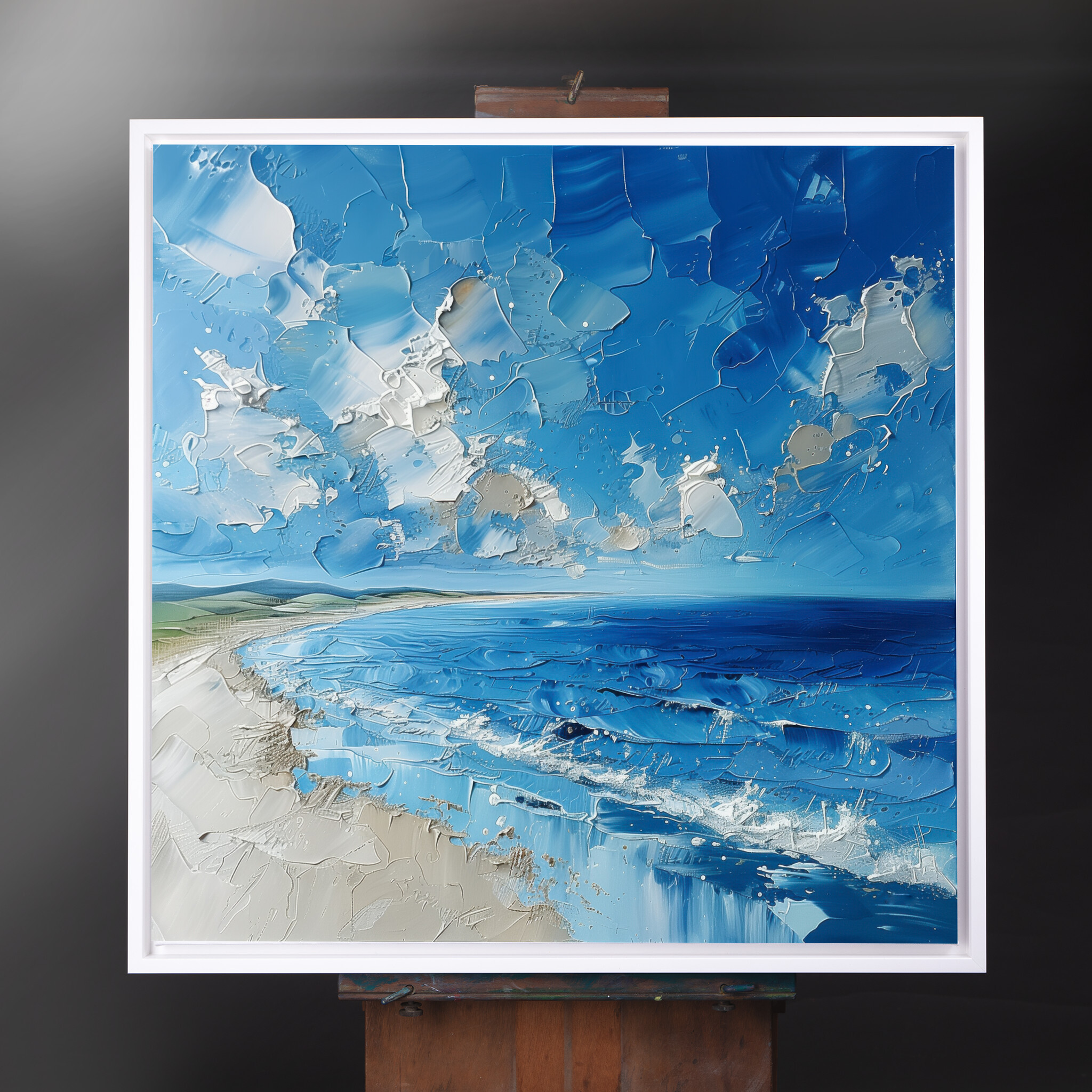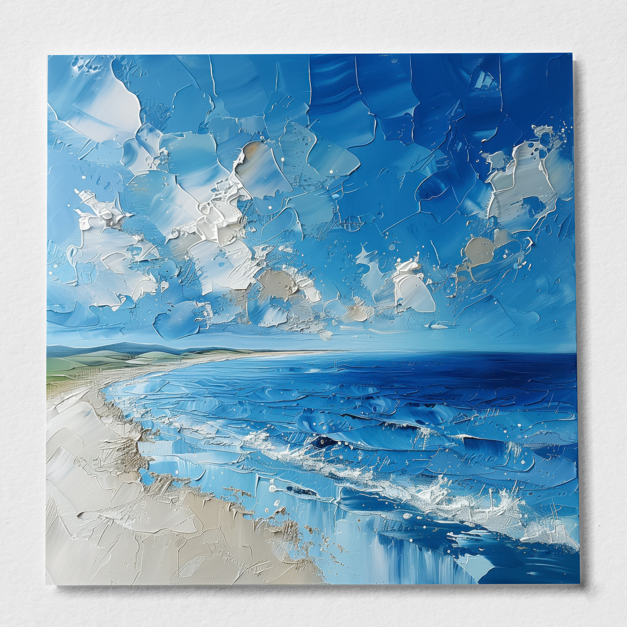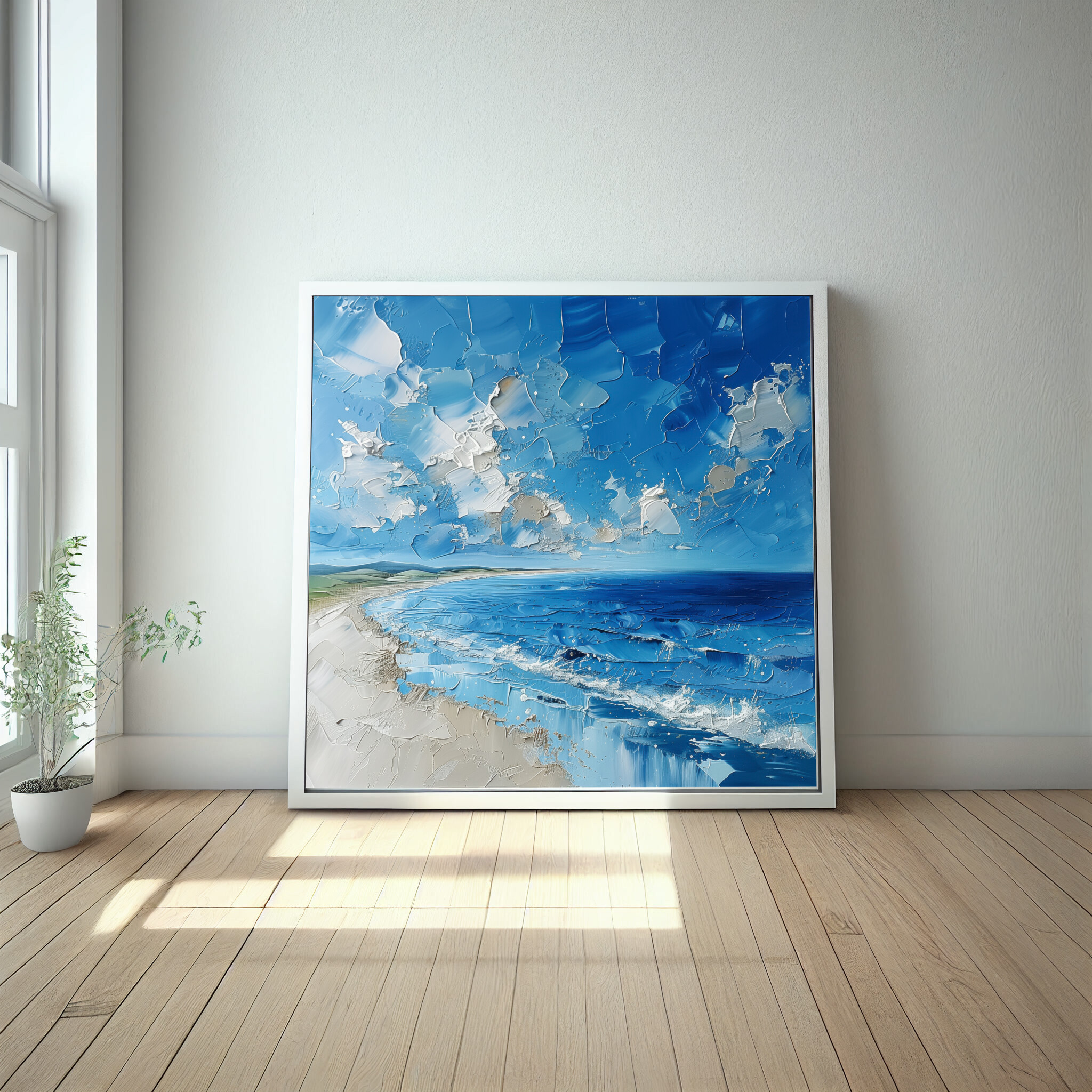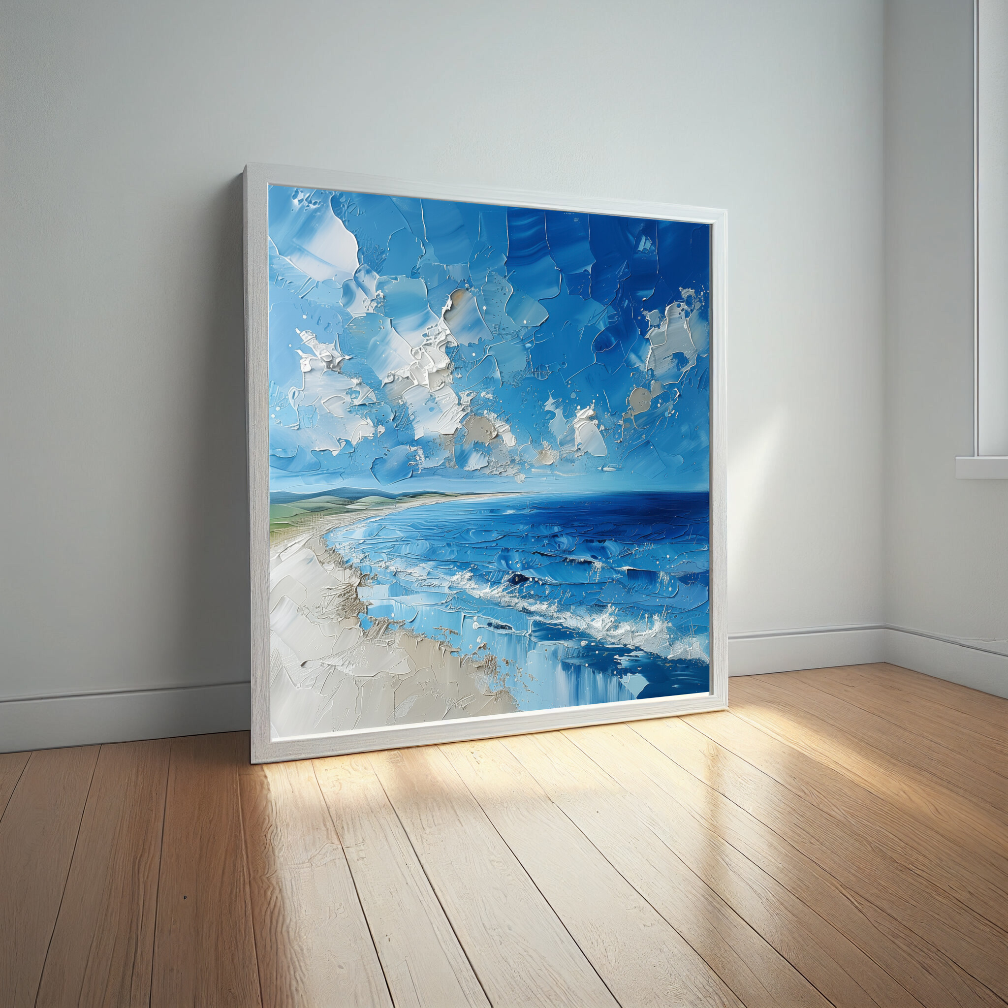 The artwork’s lively composition evokes feelings of peace and introspection, making it an ideal addition to your living room, bedroom, or office. Its coastal theme and rich blue palette blend seamlessly with varied decor styles, ensuring it becomes a focal point of admiration.