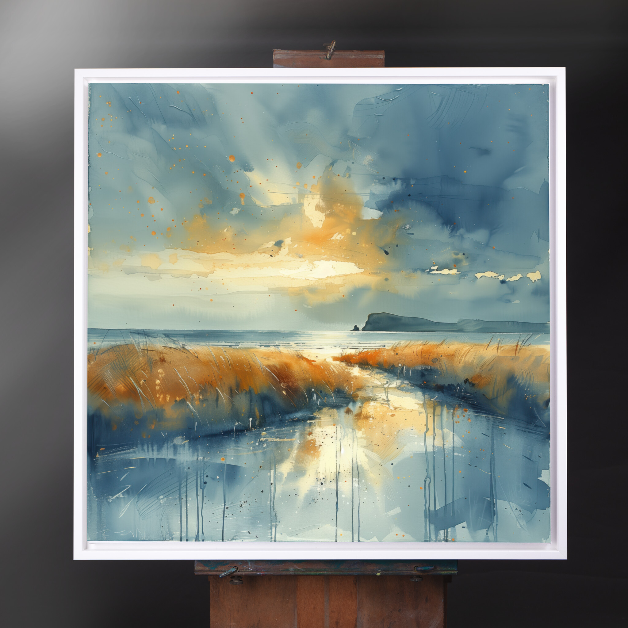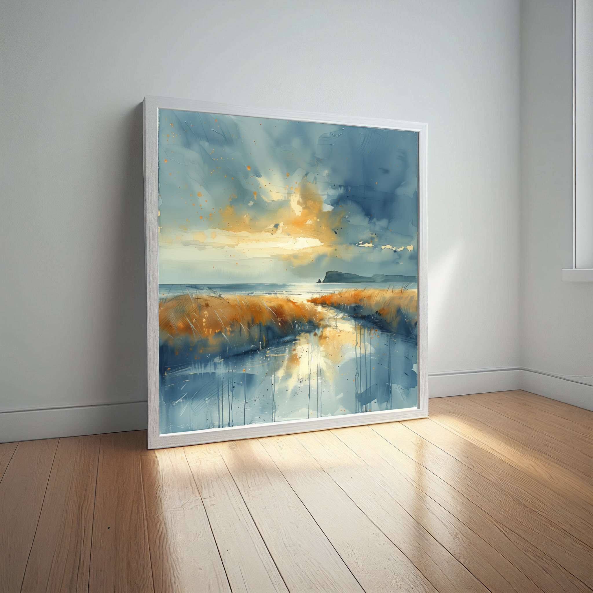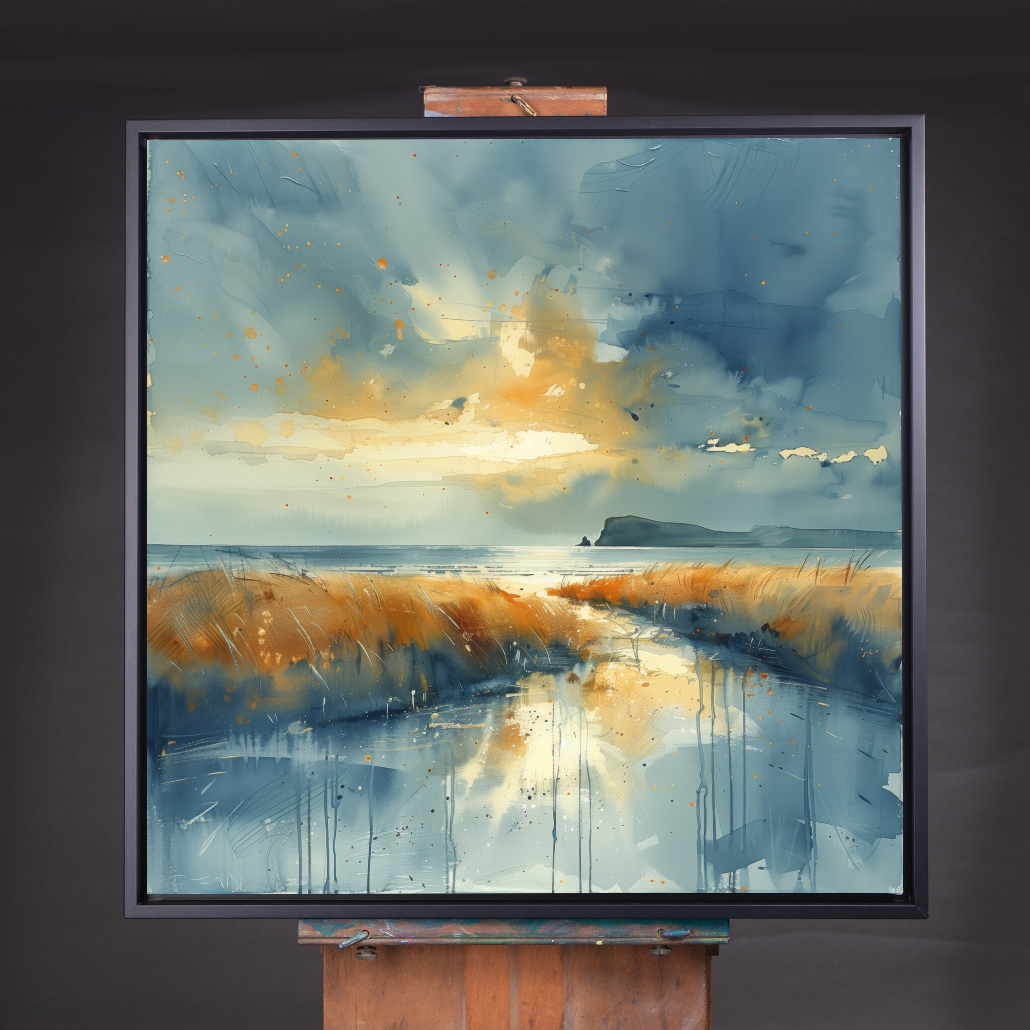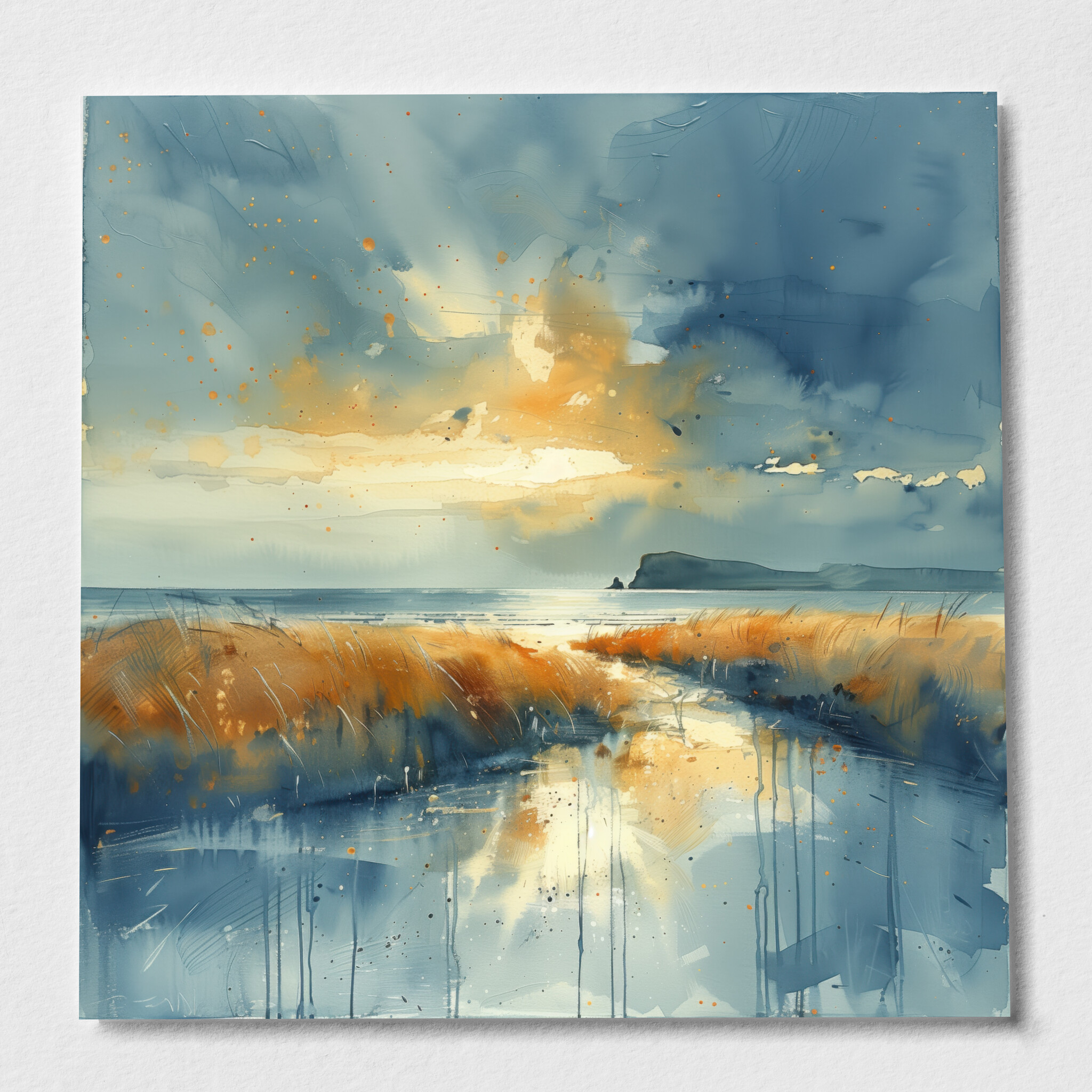 This captivating impressionist artwork beautifully captures the essence of Donegal’s coastal landscape. Rich blue hues blend seamlessly with warm tones, evoking the serene beauty of the ocean and sky. The artwork is a celebration of nature’s splendour, offering a tranquil and inspiring view.