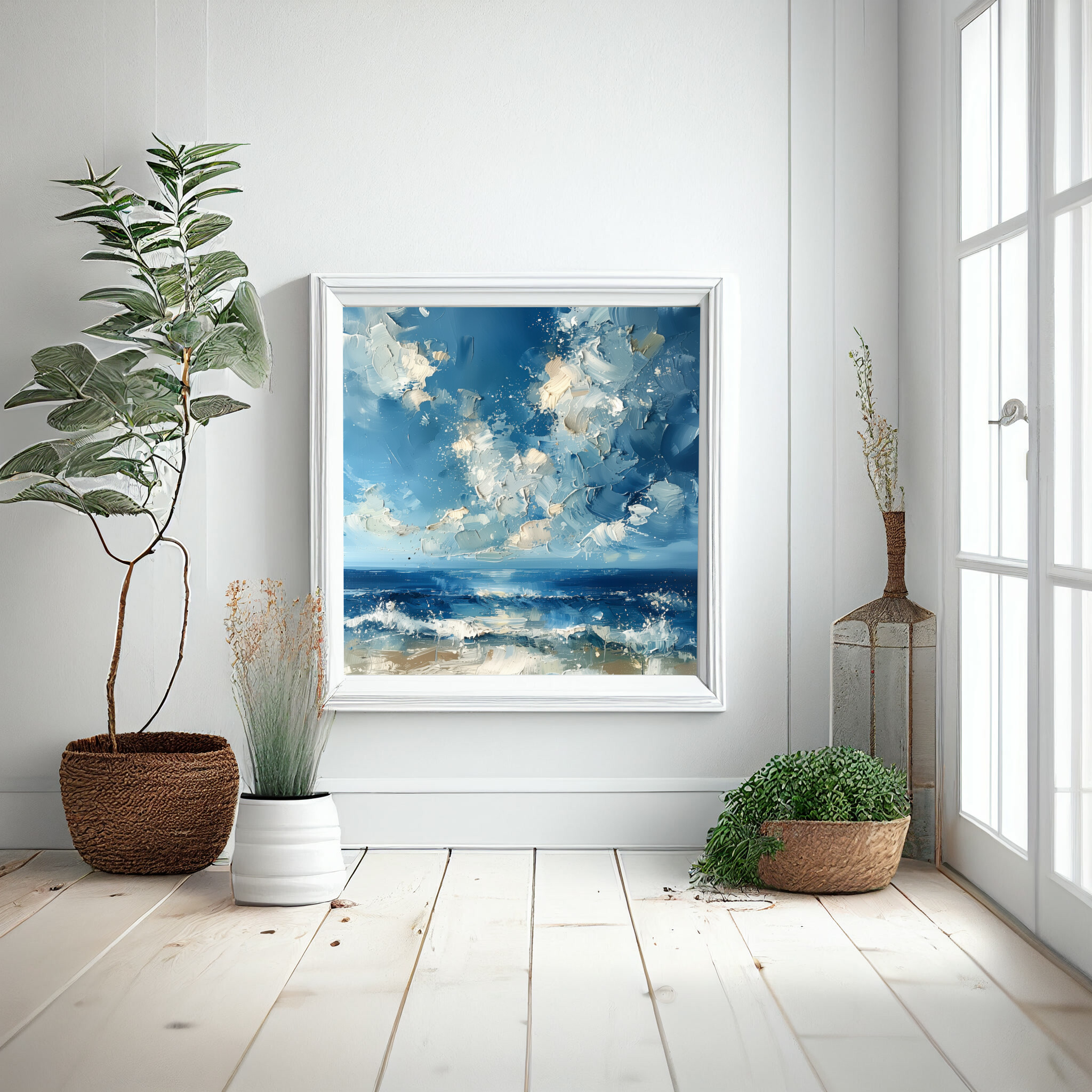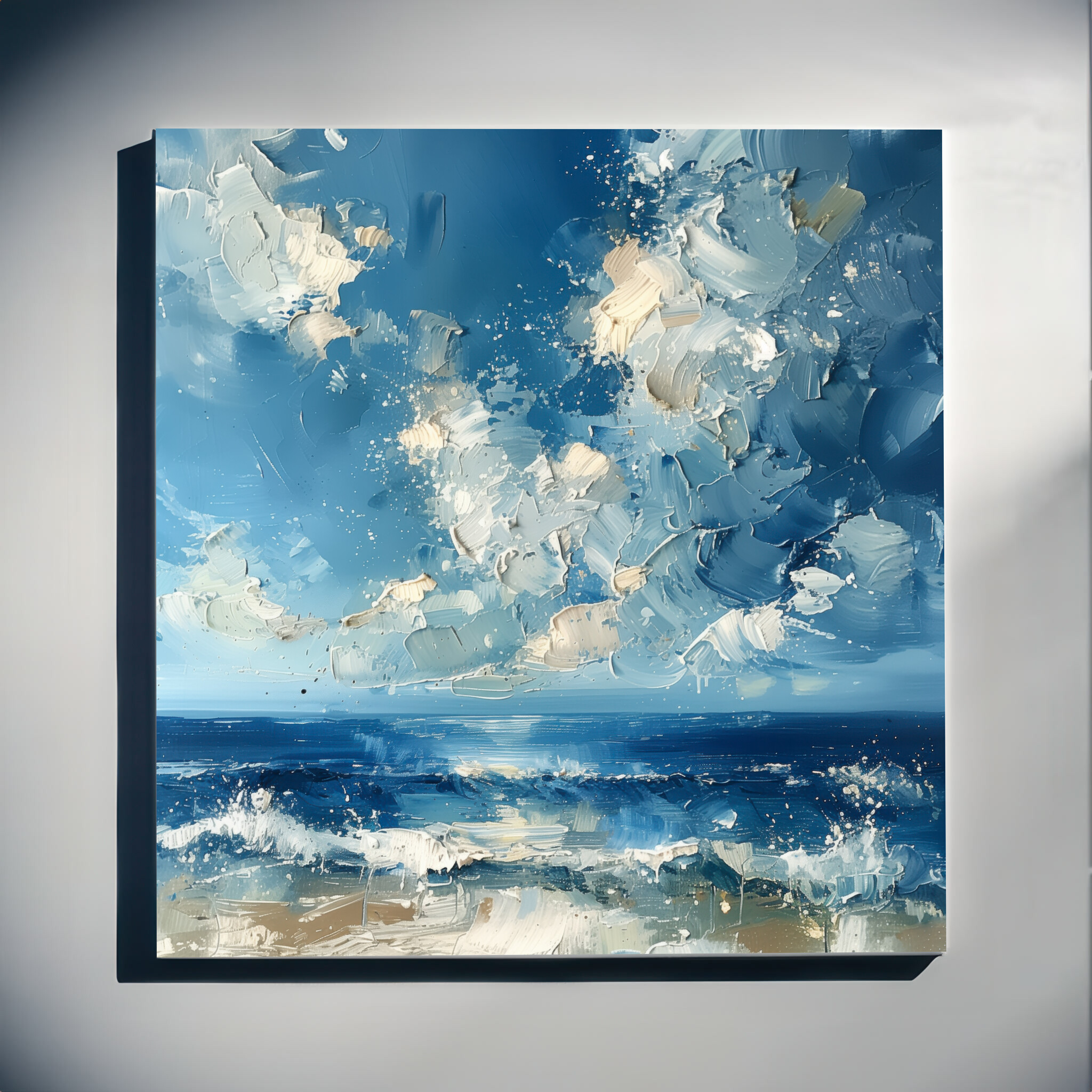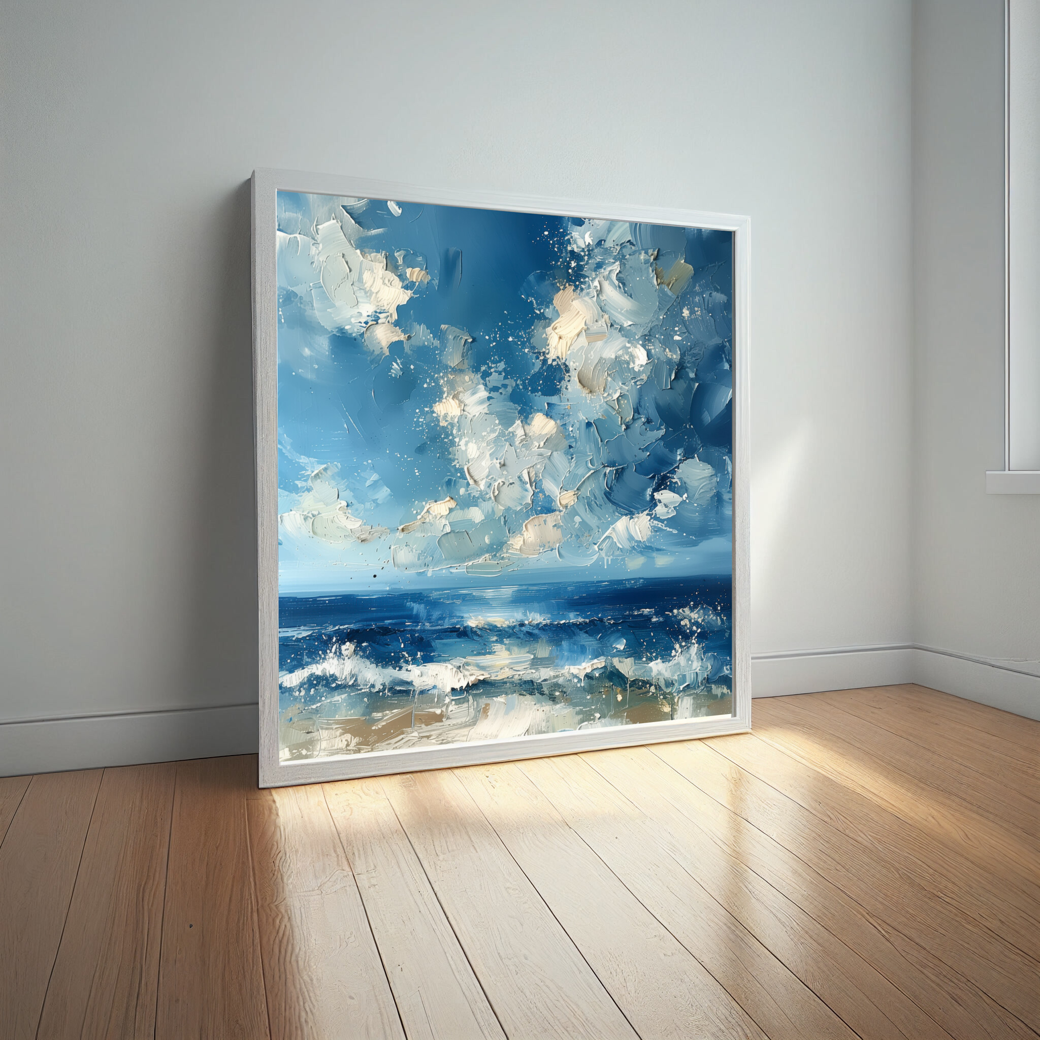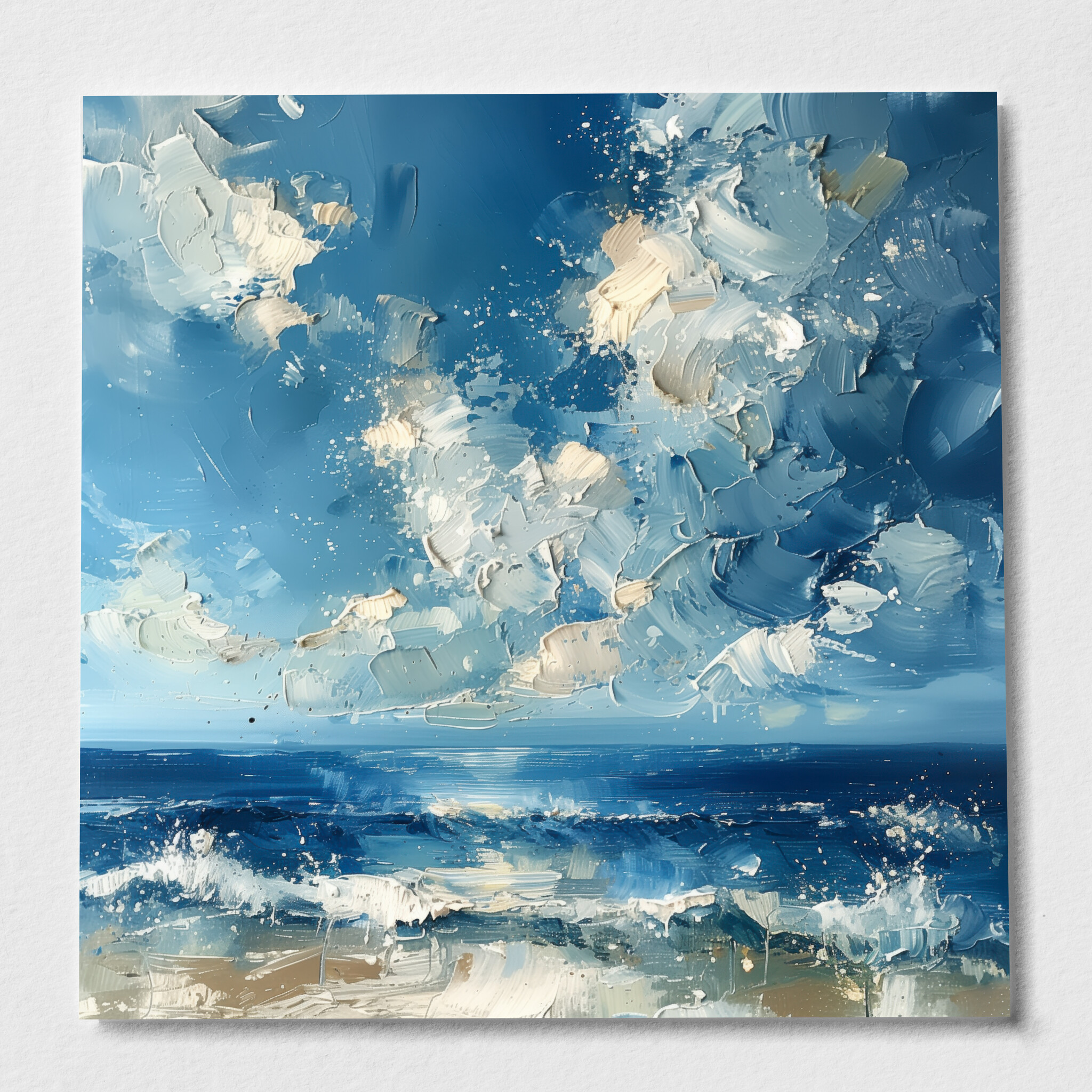 This striking abstract painting depicts the captivating sea of Donegal, rendered in dynamic blue hues. The artwork brings to life the wild essence of the ocean, with sweeping brush strokes that convey movement and energy unique to this coastal scene. Ideal for those who appreciate modern aesthetics, this piece will transform any space with its serene yet energetic mood. Perfect for your living room or office, this ocean landscape art piece inspires tranquility and creativity. It’s an excellent housewarming gift or an ideal choice for any art lover seeking a piece that celebrates the beauty of the sea. Available as high-quality prints, framed art, and gallery-wrapped canvas, this versatile artwork suits any decor style, making it a timeless addition to your home decor.