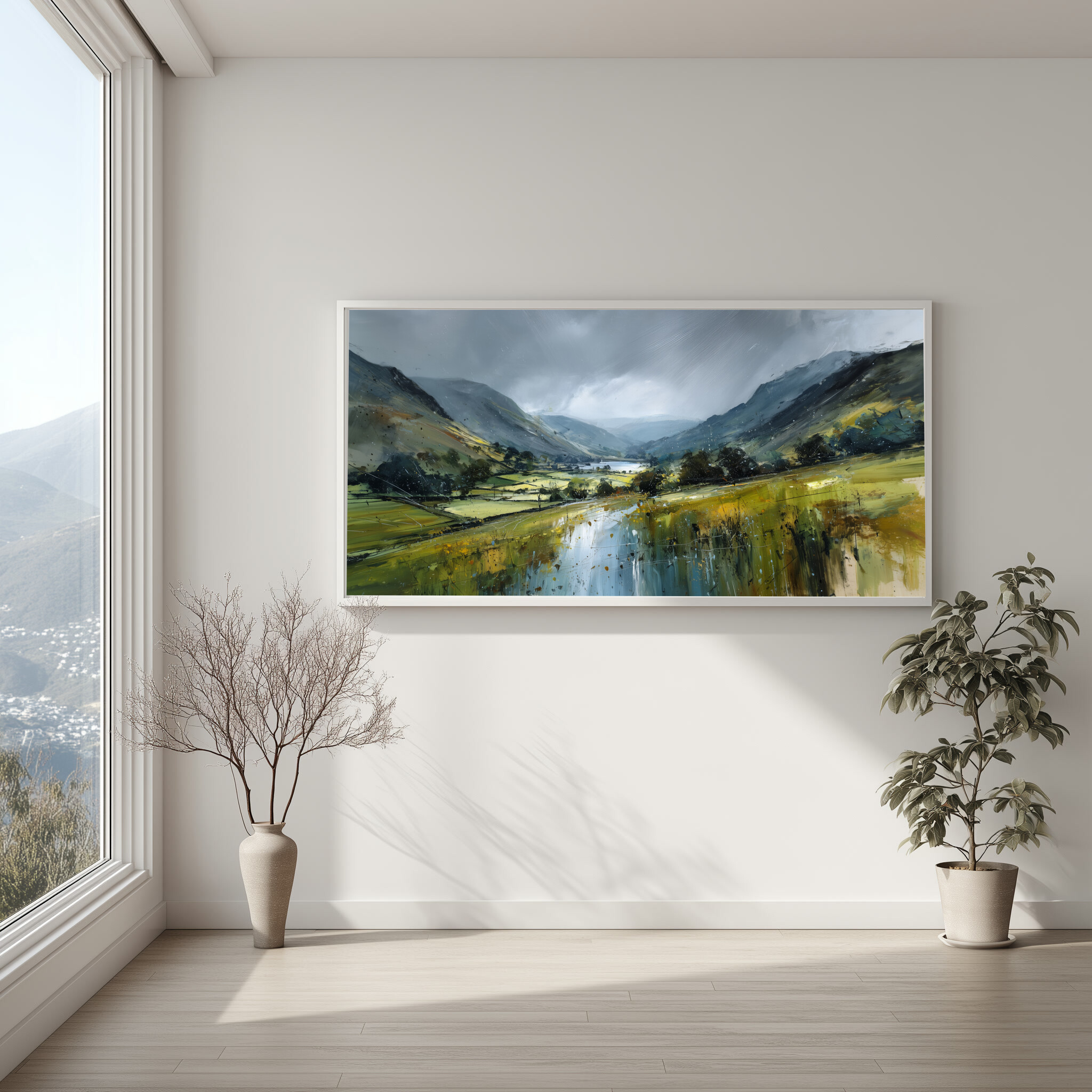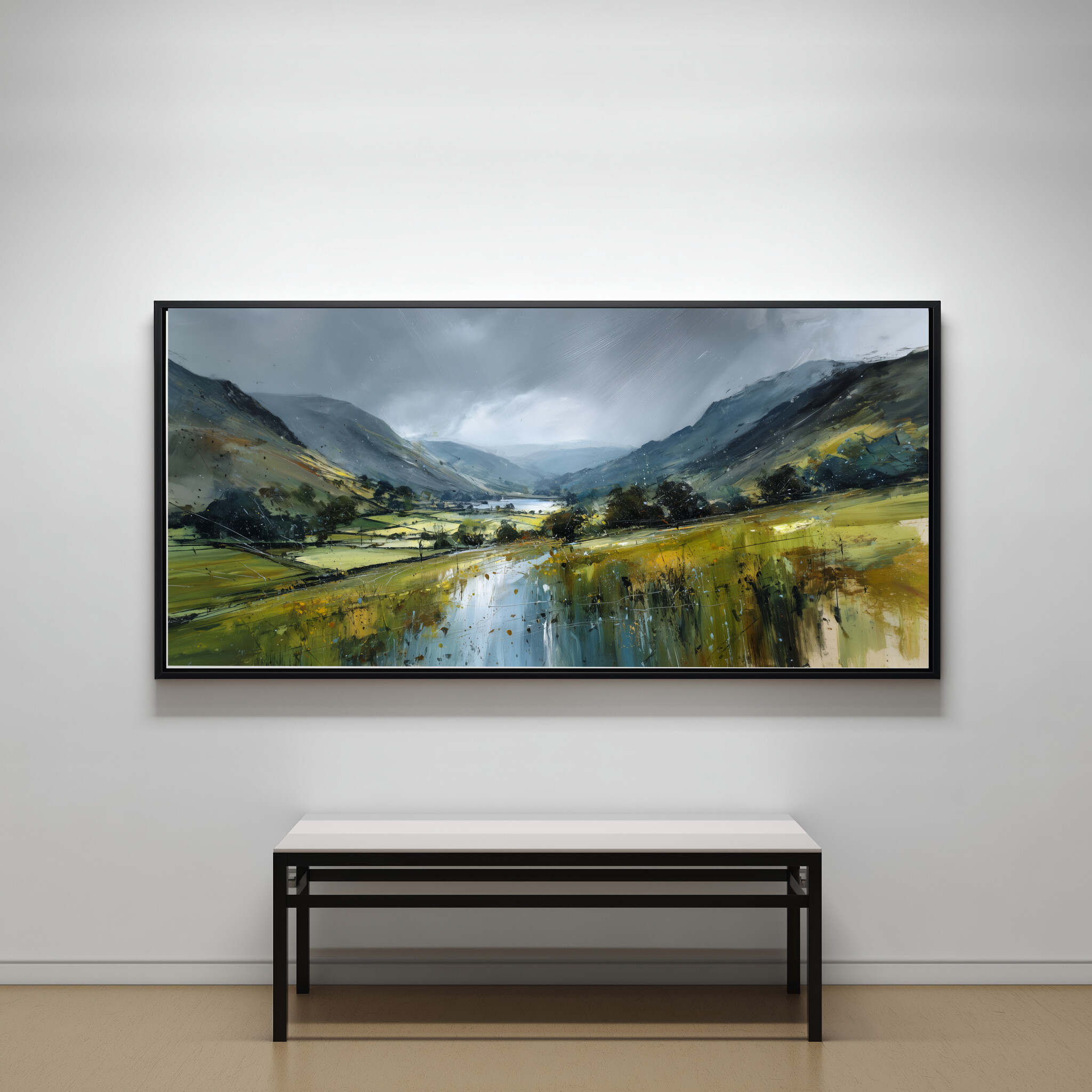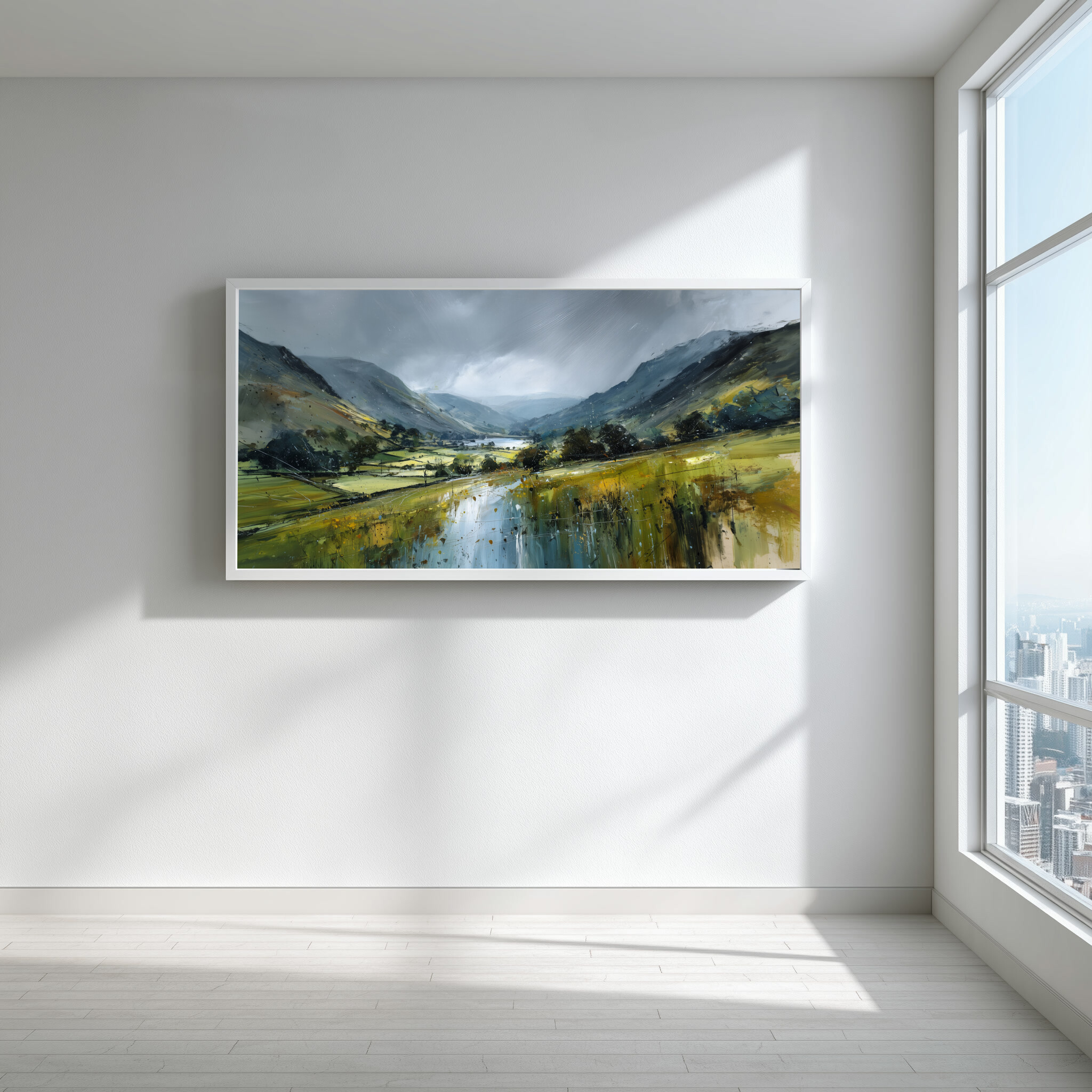 Hang this painting in your living room, bedroom, or office to create a peaceful ambience. Its cool palette and scenic view make it an ideal choice for those looking to bring calm and harmony into their space. Whether as a living room centrepiece or a subtle office decor element, this artwork transforms any room into a personal retreat.