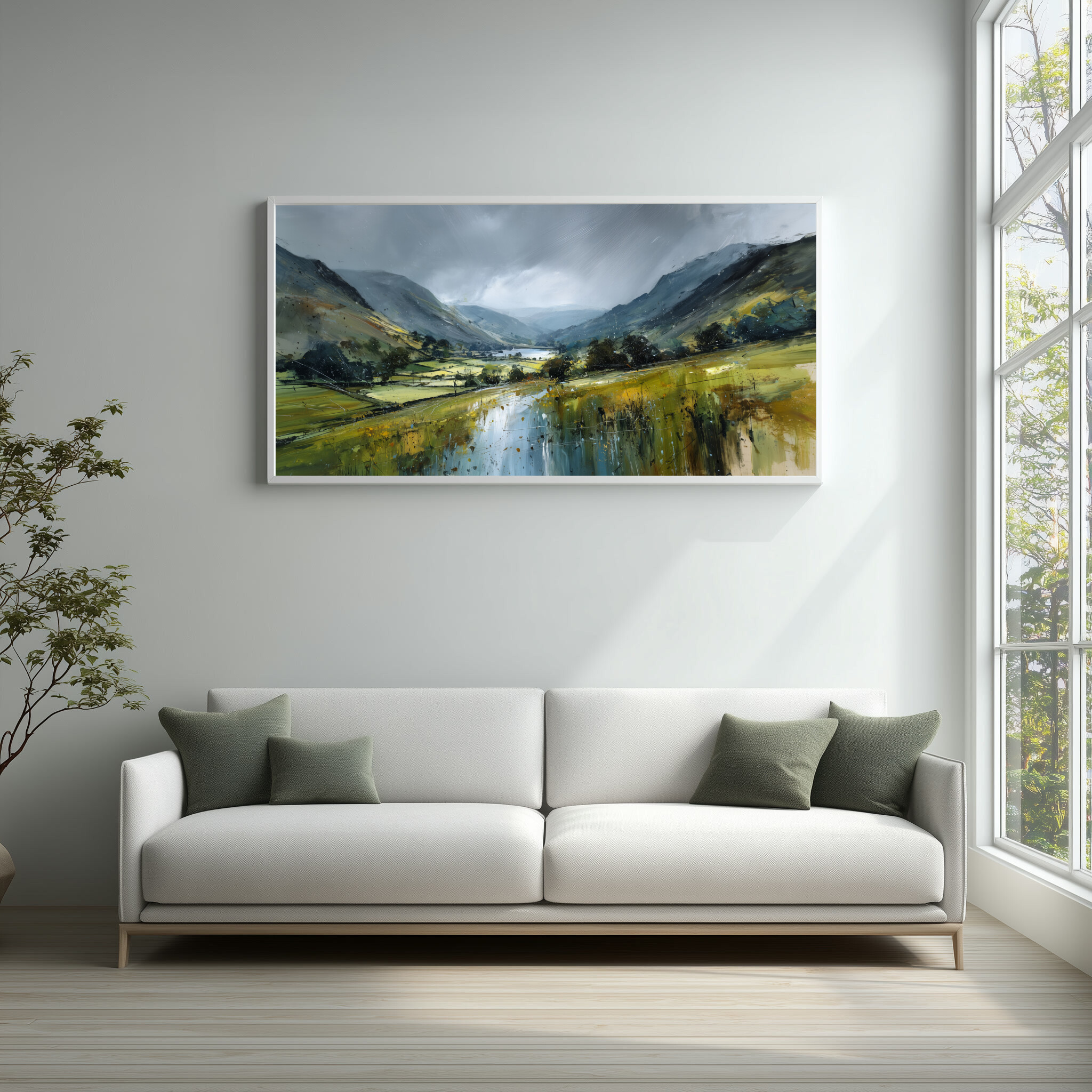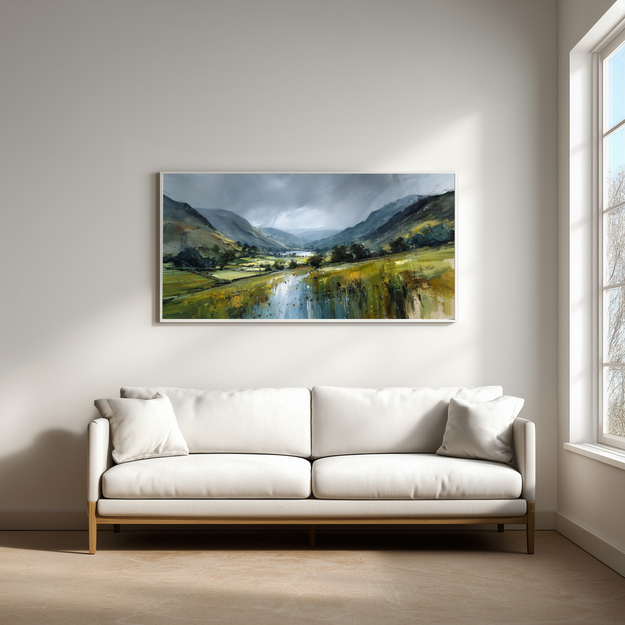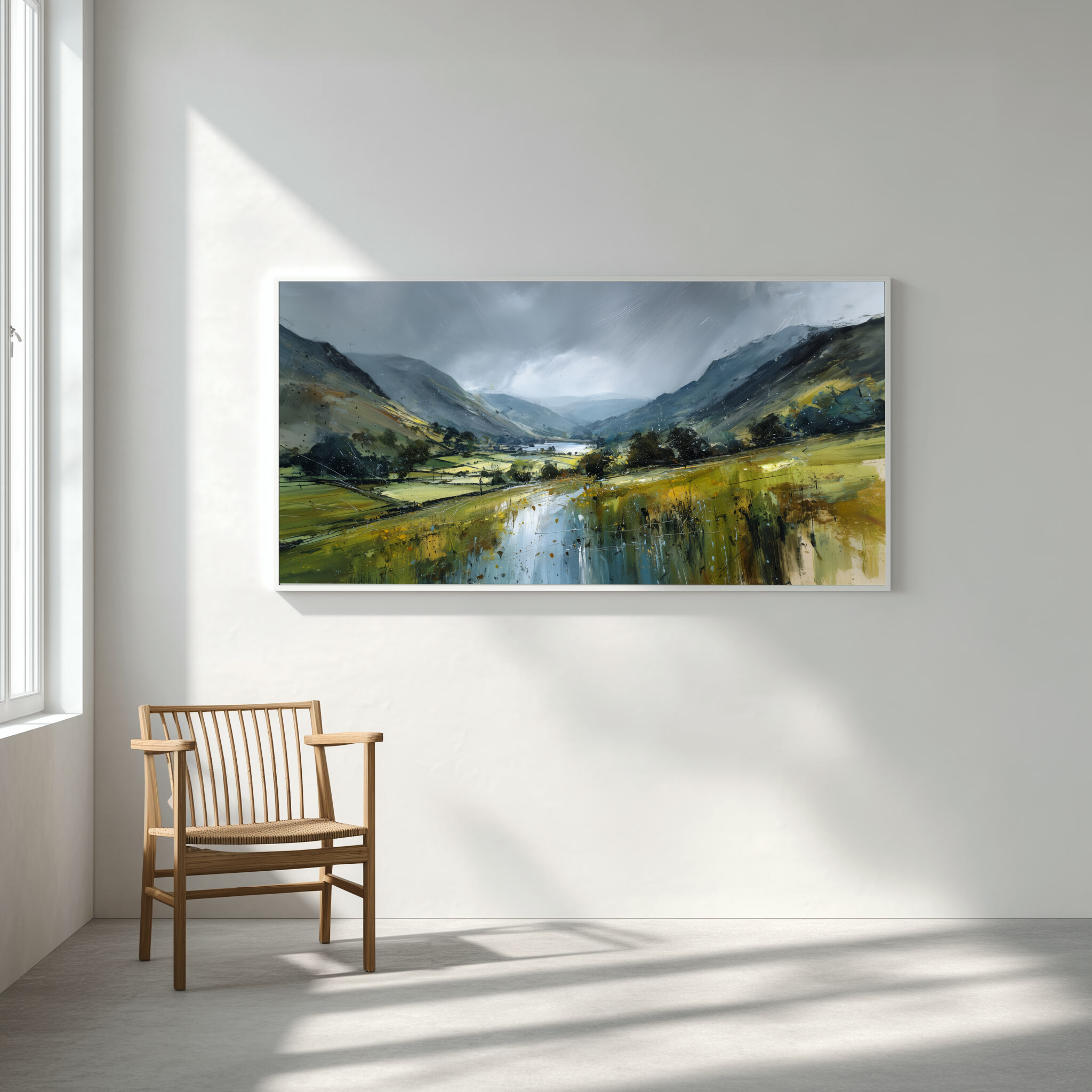 Hang this painting in your living room, bedroom, or office to create a peaceful ambience. Its cool palette and scenic view make it an ideal choice for those looking to bring calm and harmony into their space. Whether as a living room centrepiece or a subtle office decor element, this artwork transforms any room into a personal retreat.