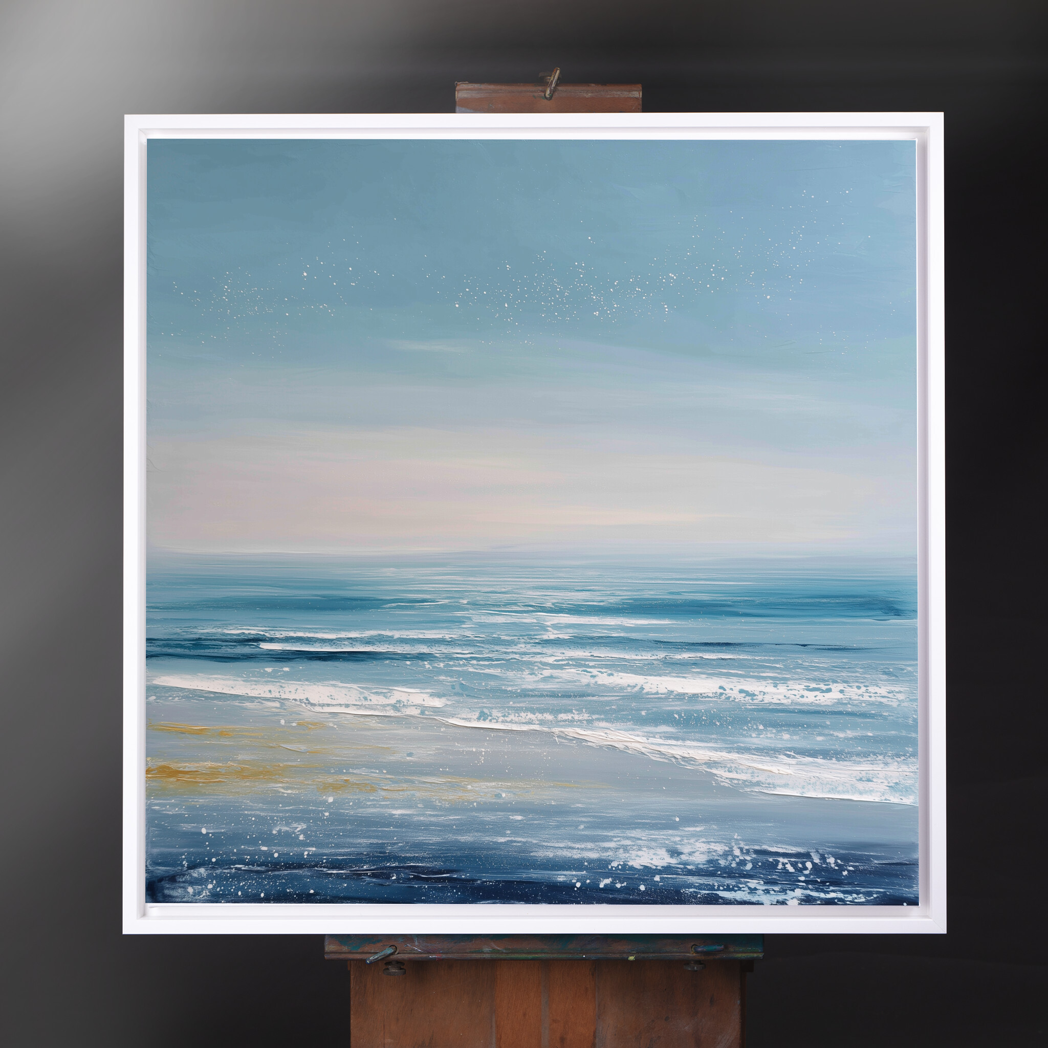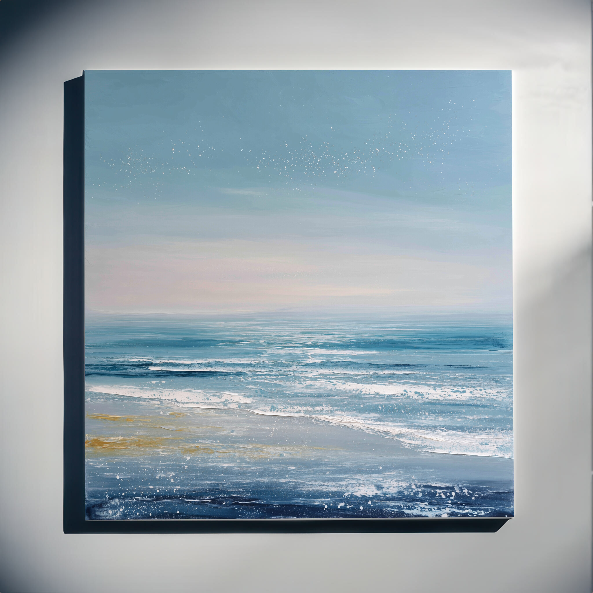 The tranquil mood of this blue art piece makes it an ideal addition to the living room or a relaxing office environment. Its soft colours can also enhance a cosy bedroom decor, adding a sense of peace and harmony to your space.