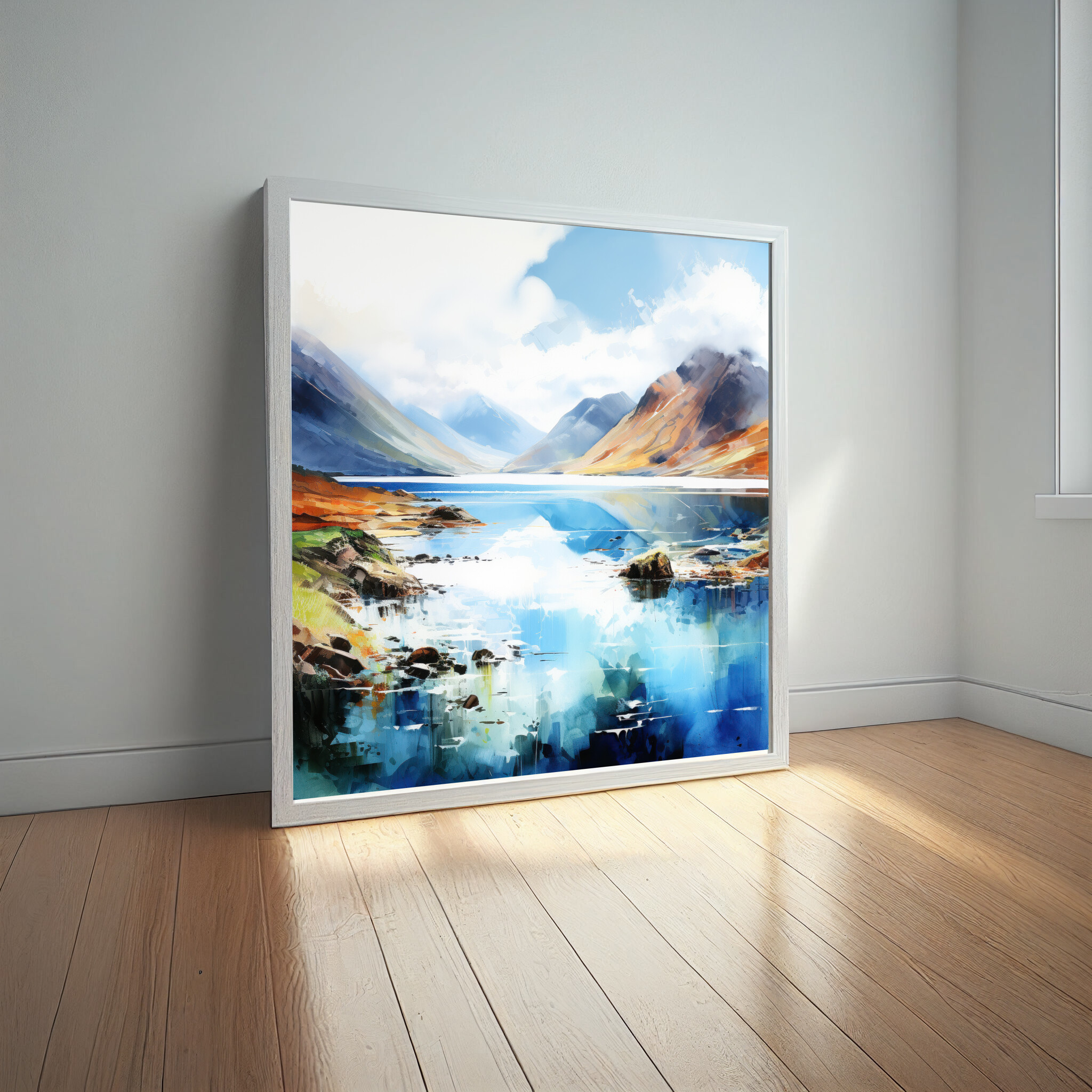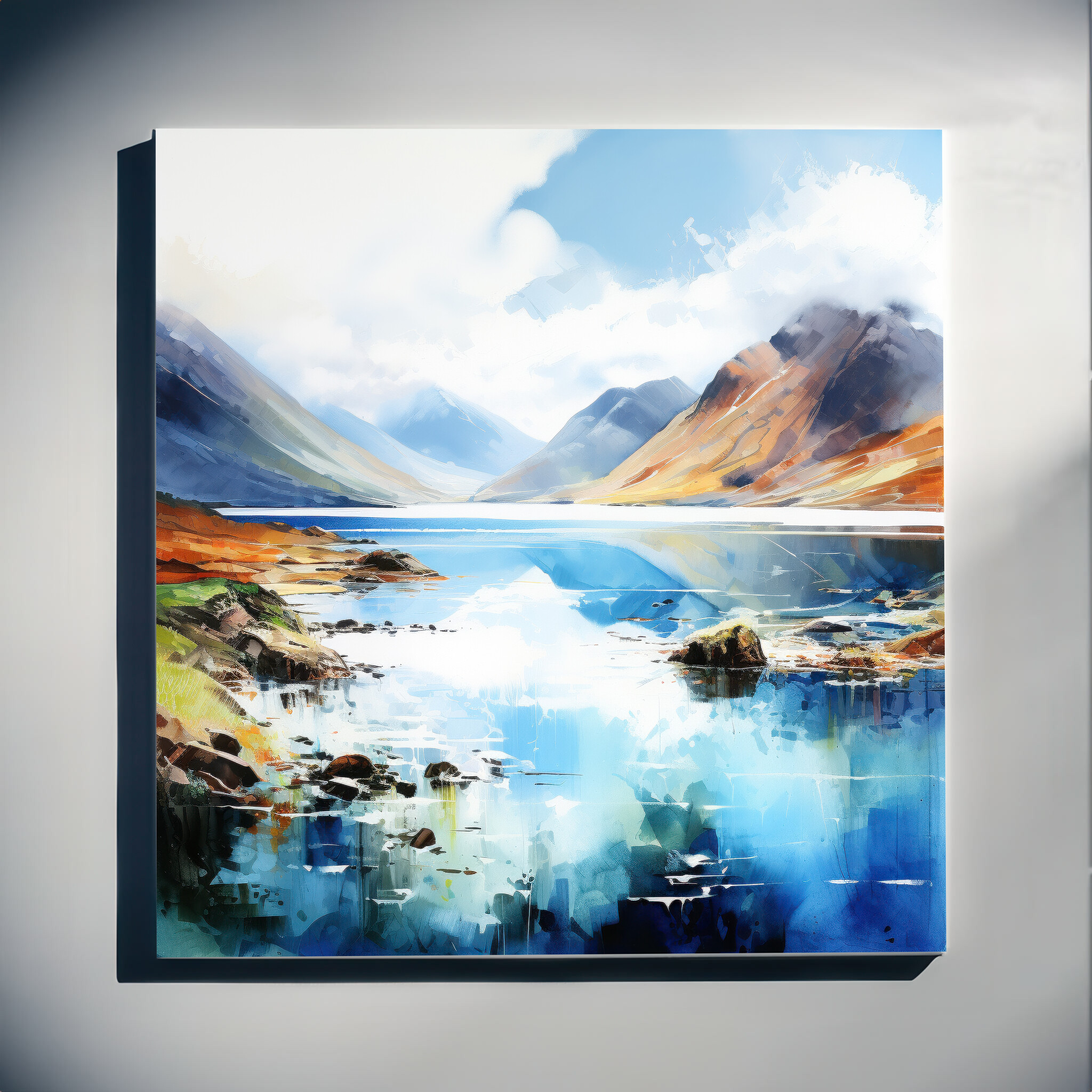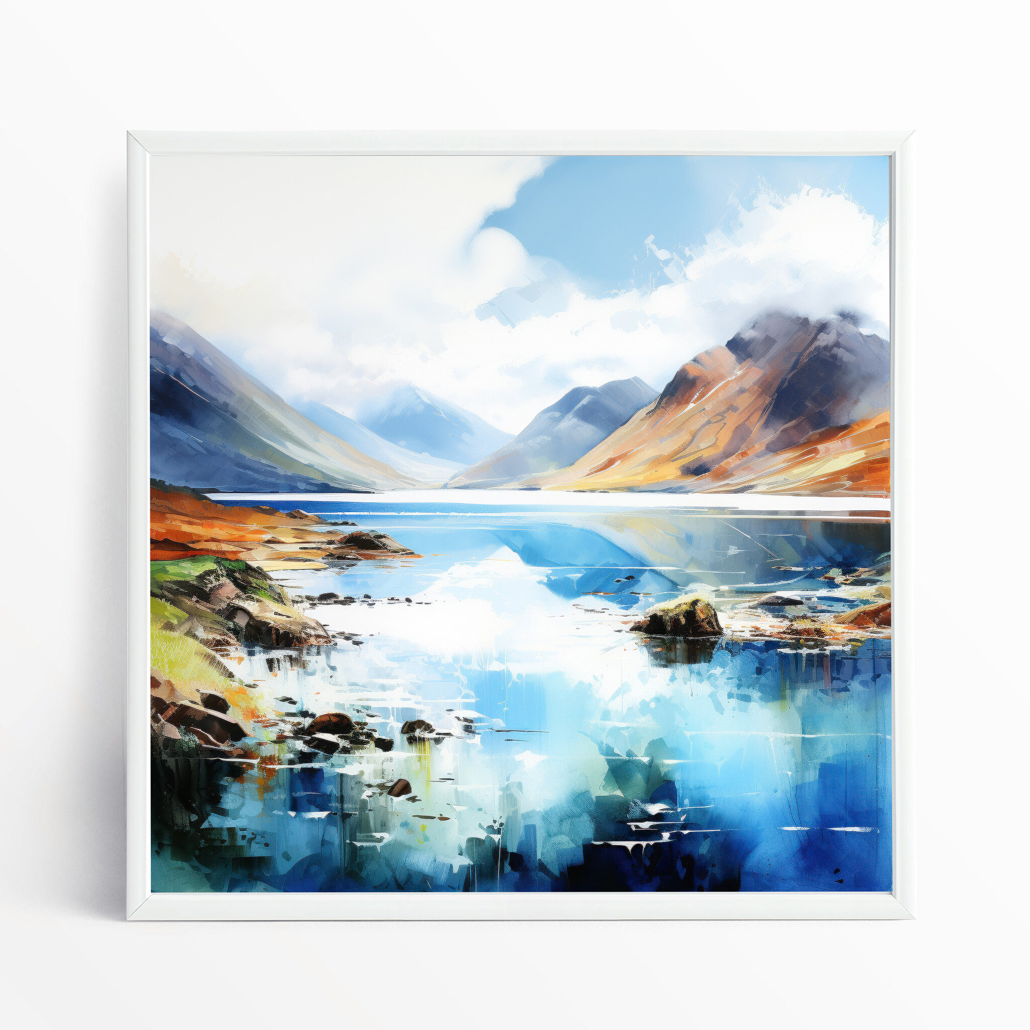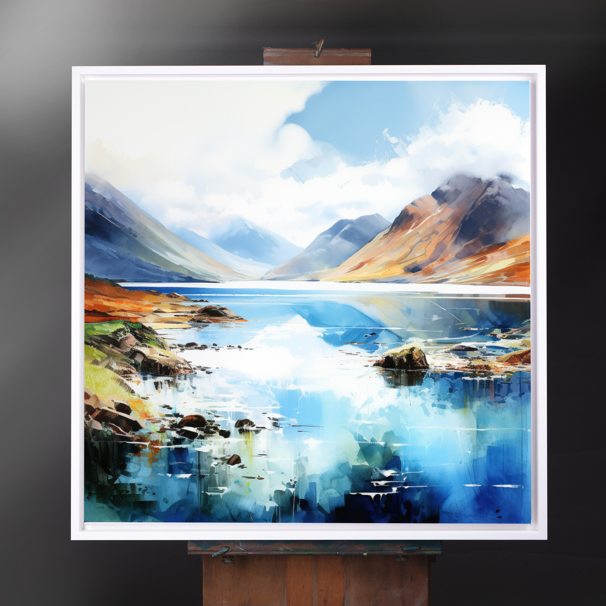 Immerse yourself in the breathtaking beauty of the Lake District with this impressionist landscape artwork. Capturing the serene blue hues of the water reflecting the surrounding peaks, it evokes a sense of tranquillity and natural splendour. Accents of warm tones provide a striking contrast, enhancing its visual appeal.