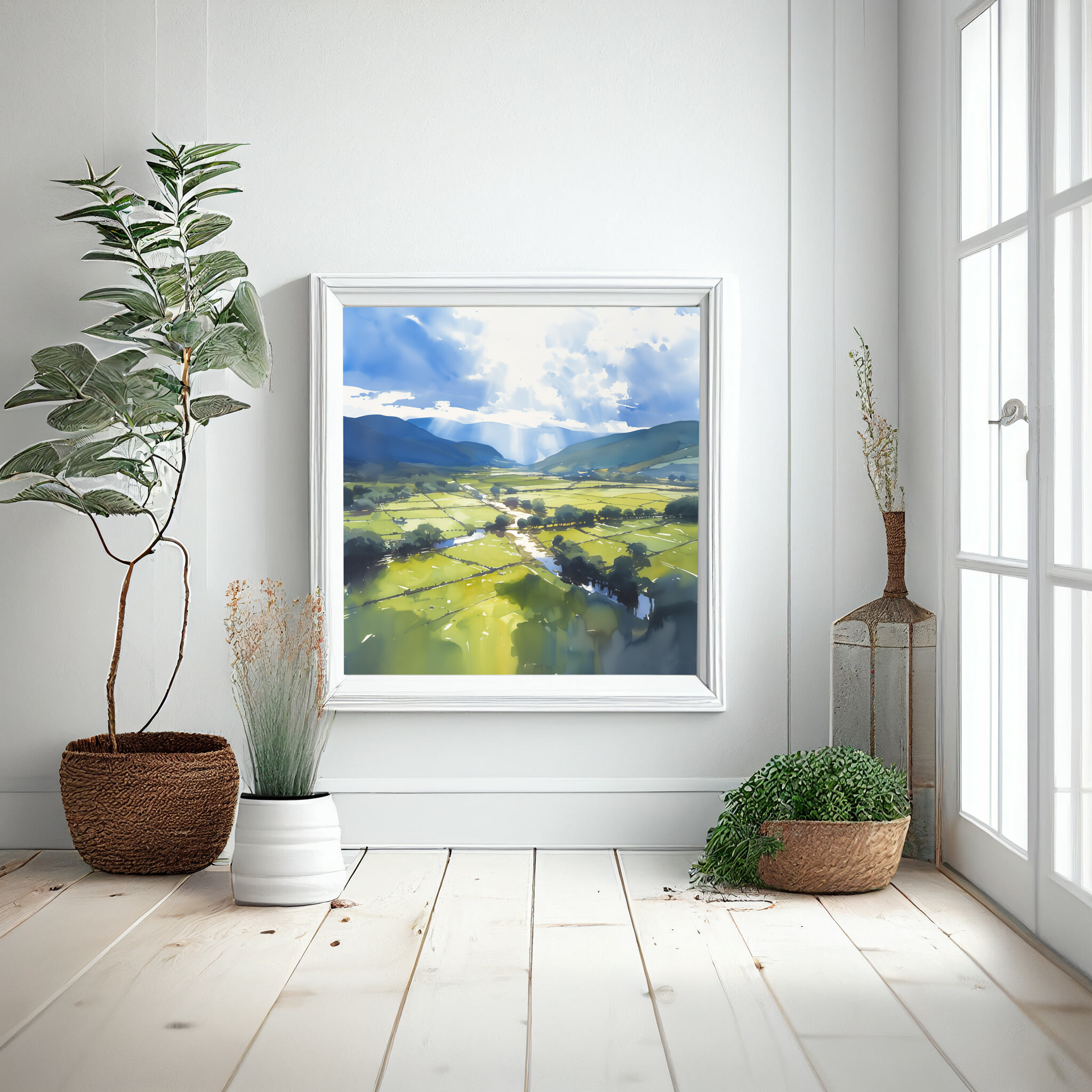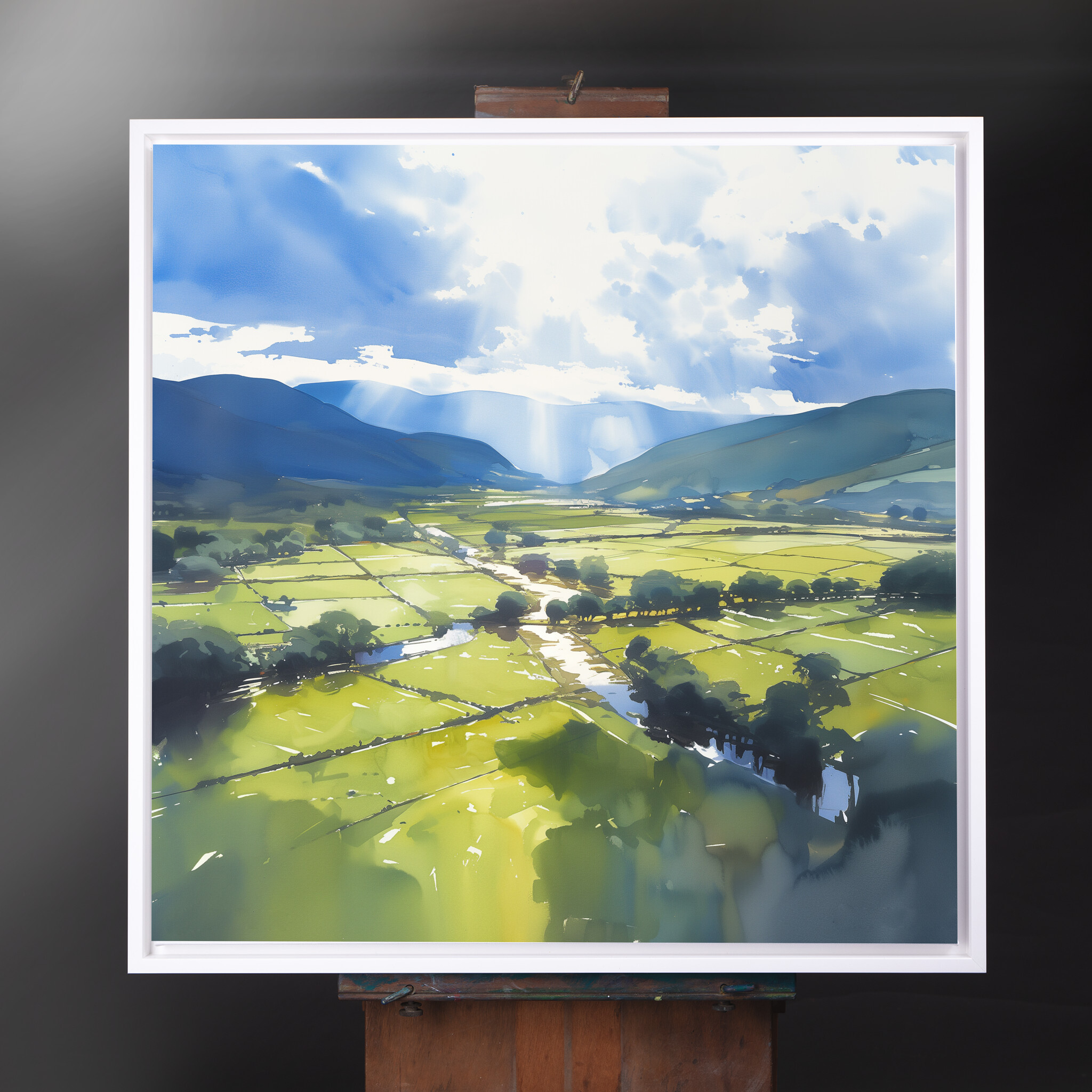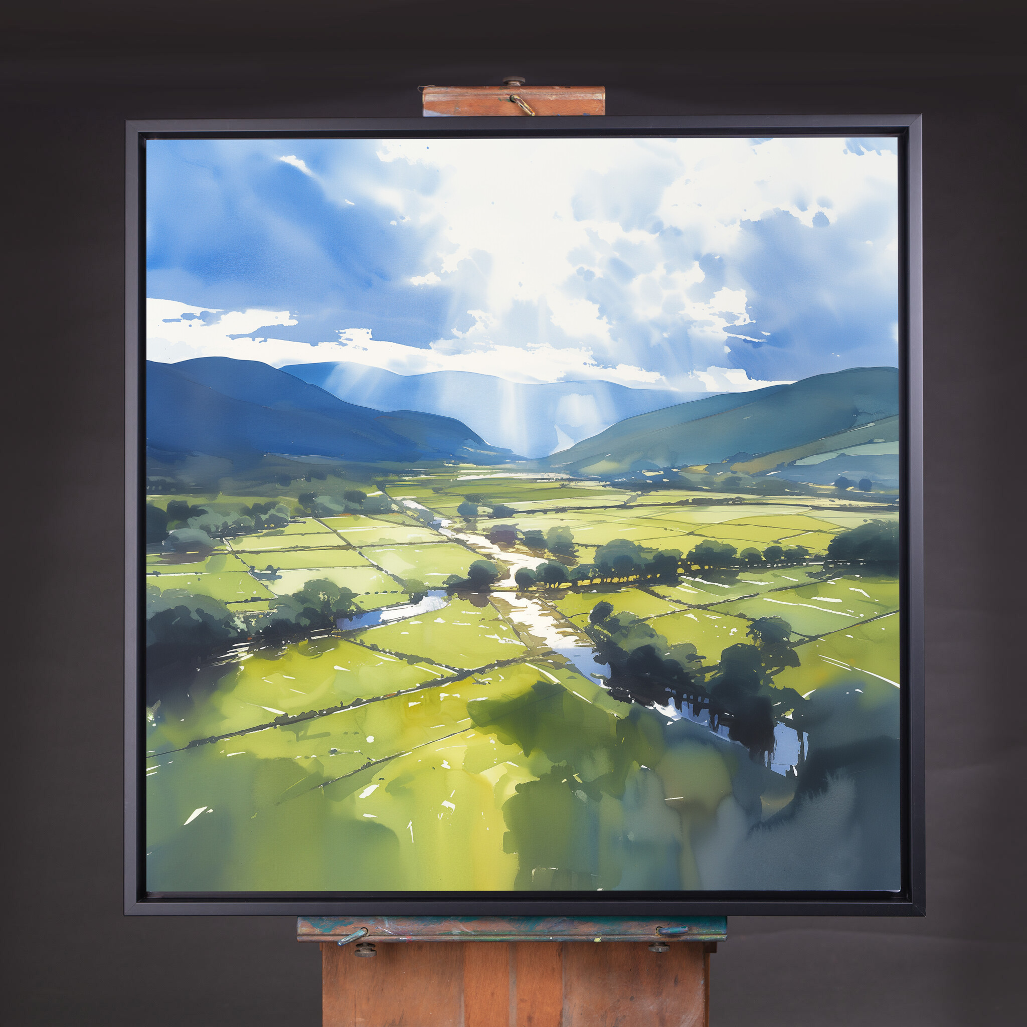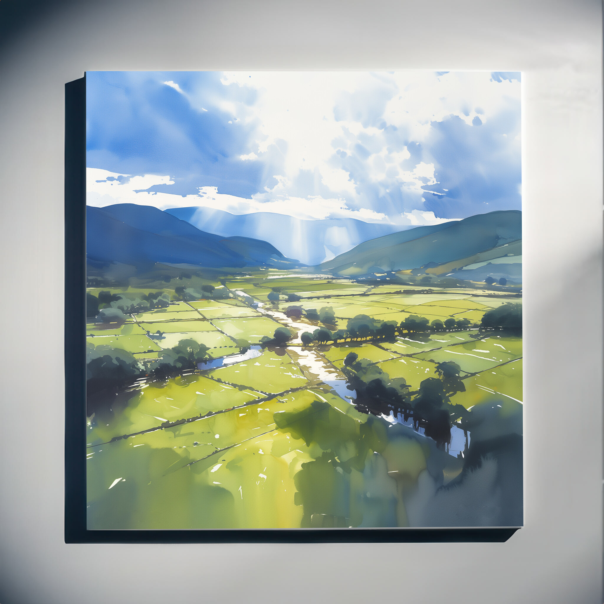 Immerse yourself in the tranquil beauty of the Lake District with this impressionist landscape. Capturing the serene blues of the sky and lush greens of the fields, this artwork brings the peaceful essence of nature into your home. Perfectly crafted in an impressionist style, this piece embodies a soothing harmony of colour and light.