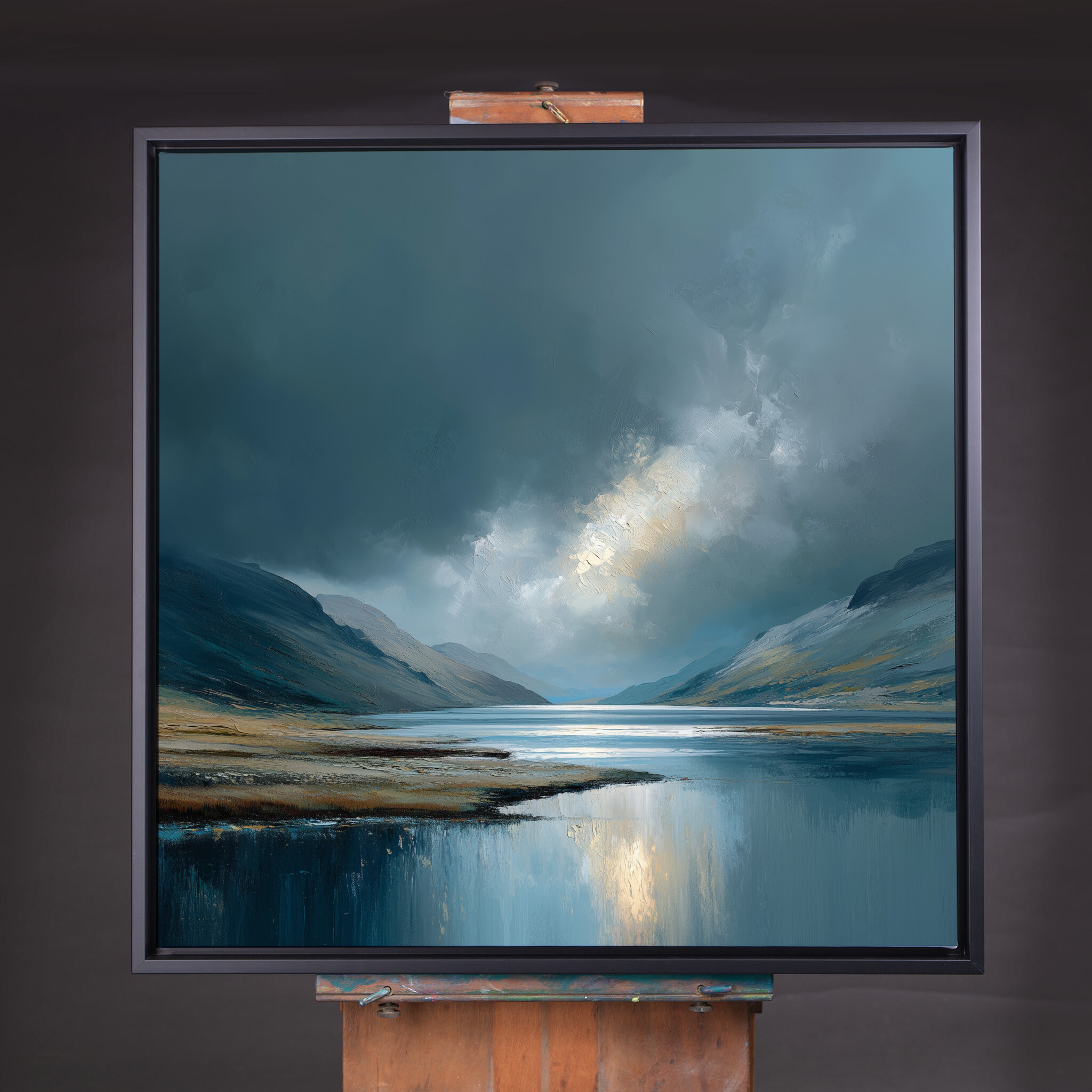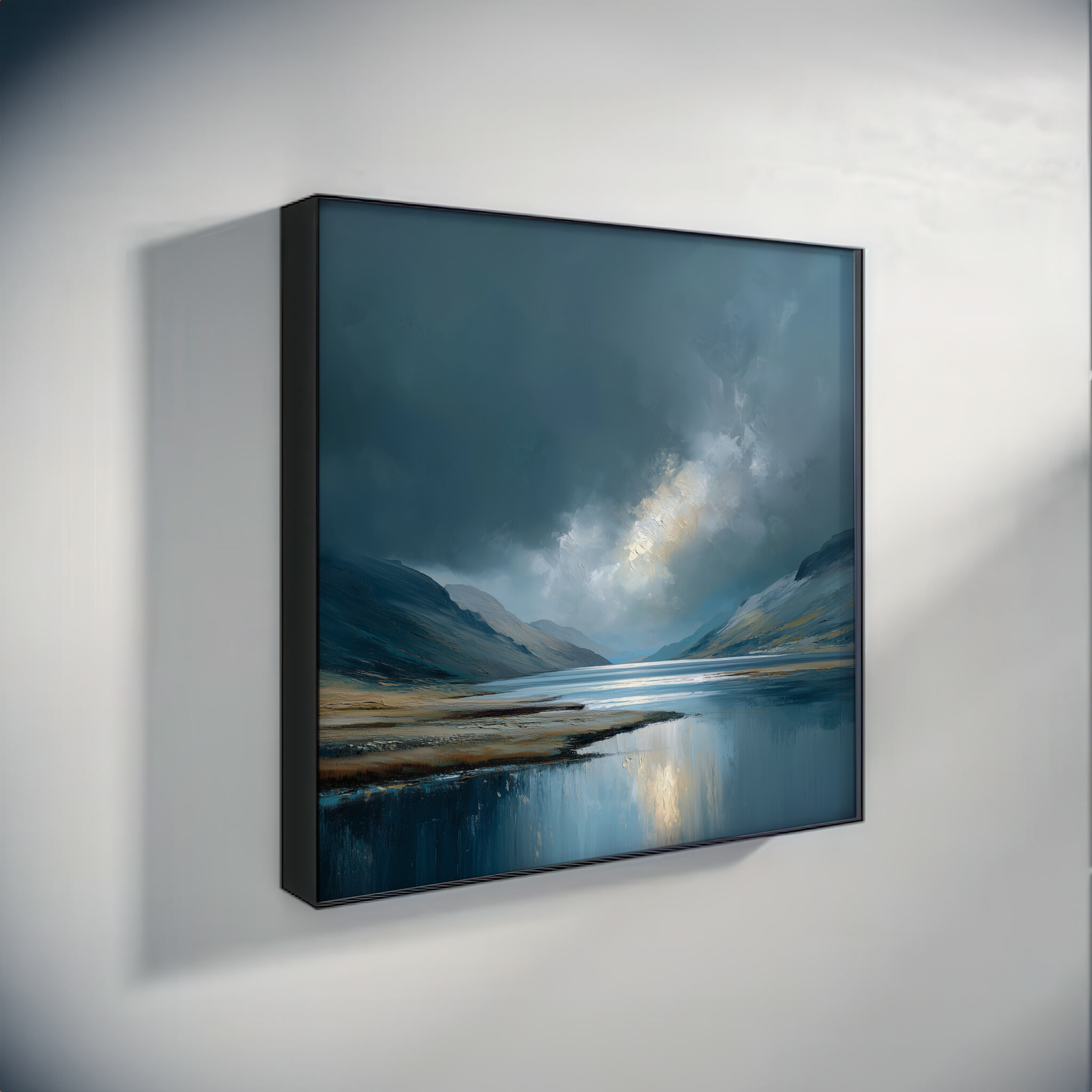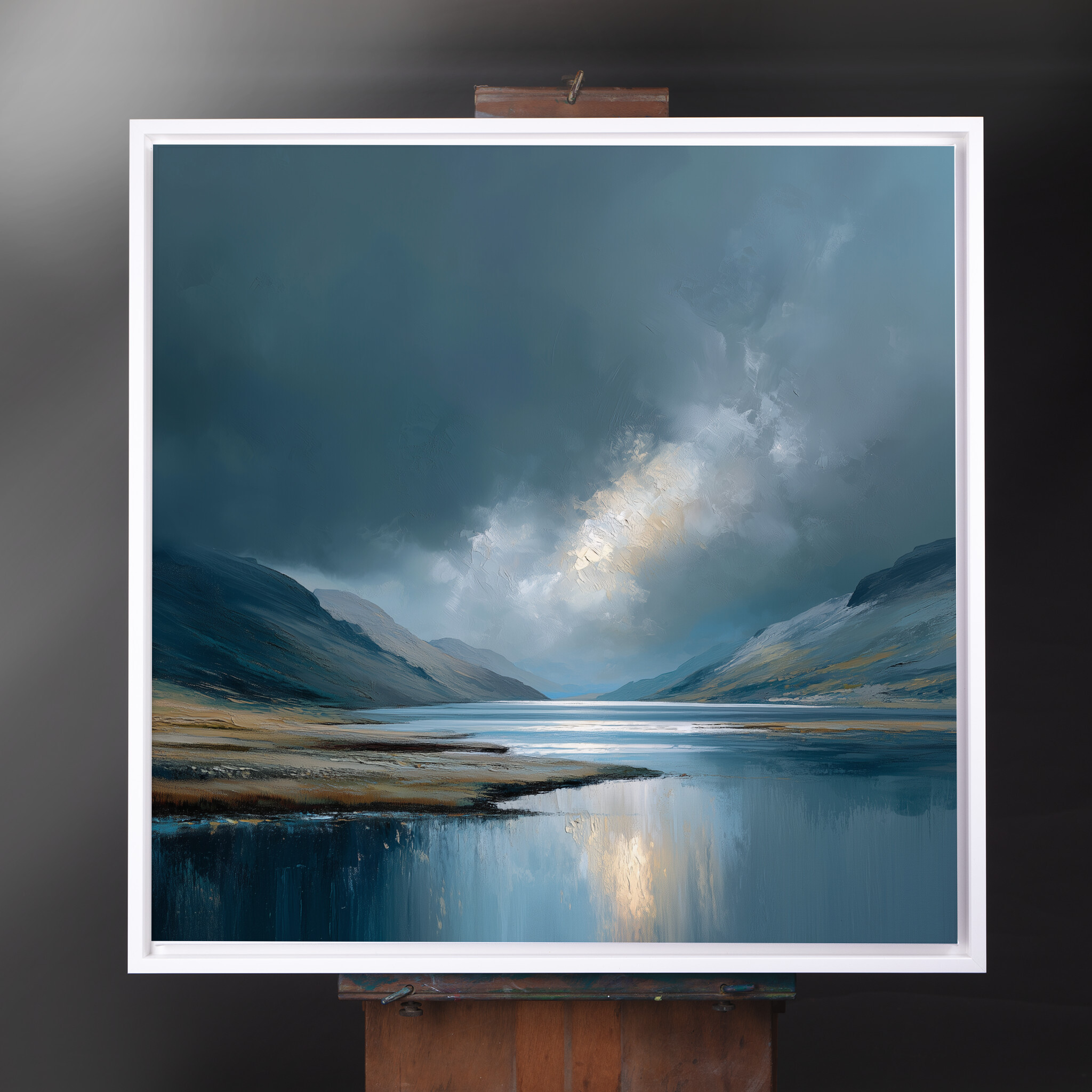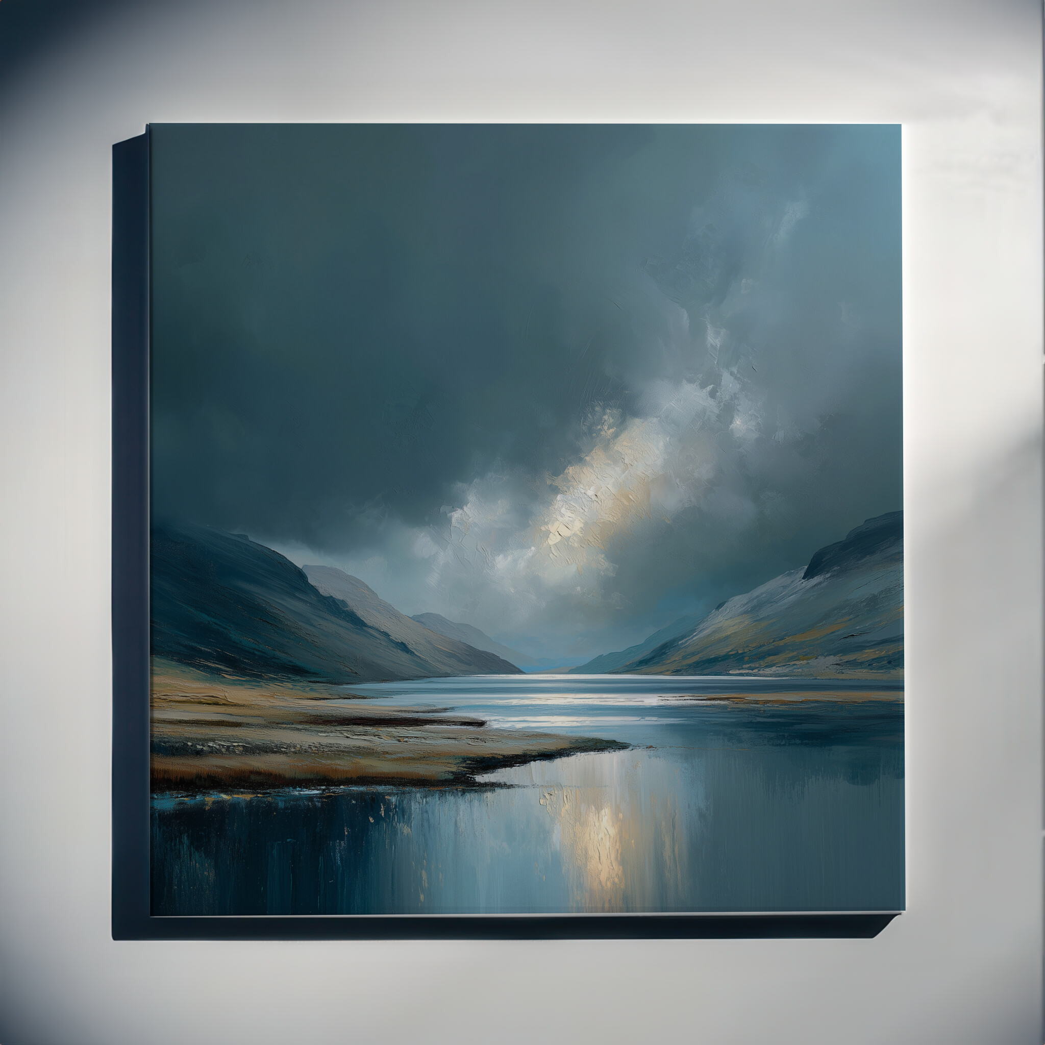 This impressionist artwork captures the serene beauty of the Lake District, with its expansive blue tones and calming grey neutral palette. The landscape is enveloped in a tranquil atmosphere, depicting the timeless allure of these iconic lakes, bathed in the softness of diffused light.