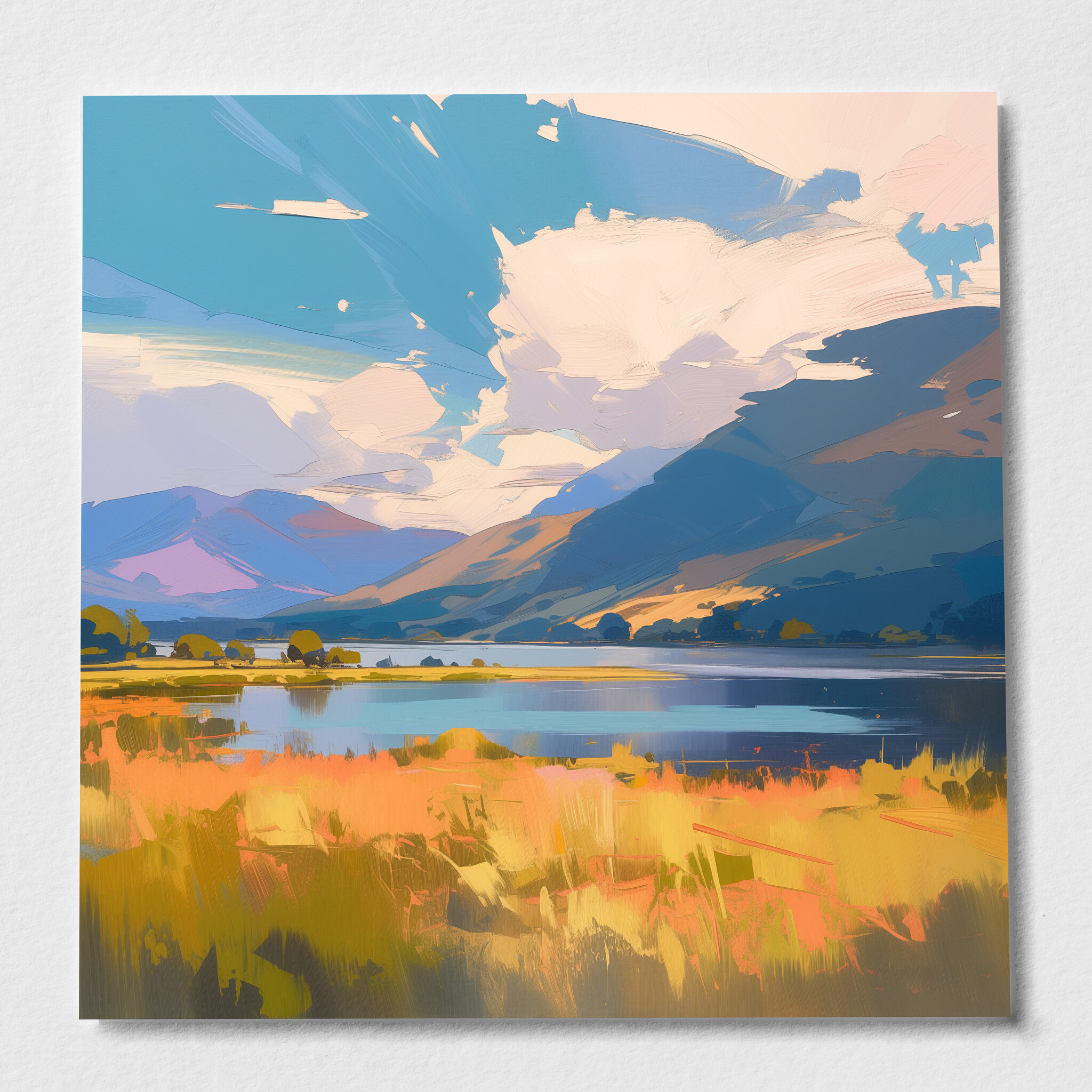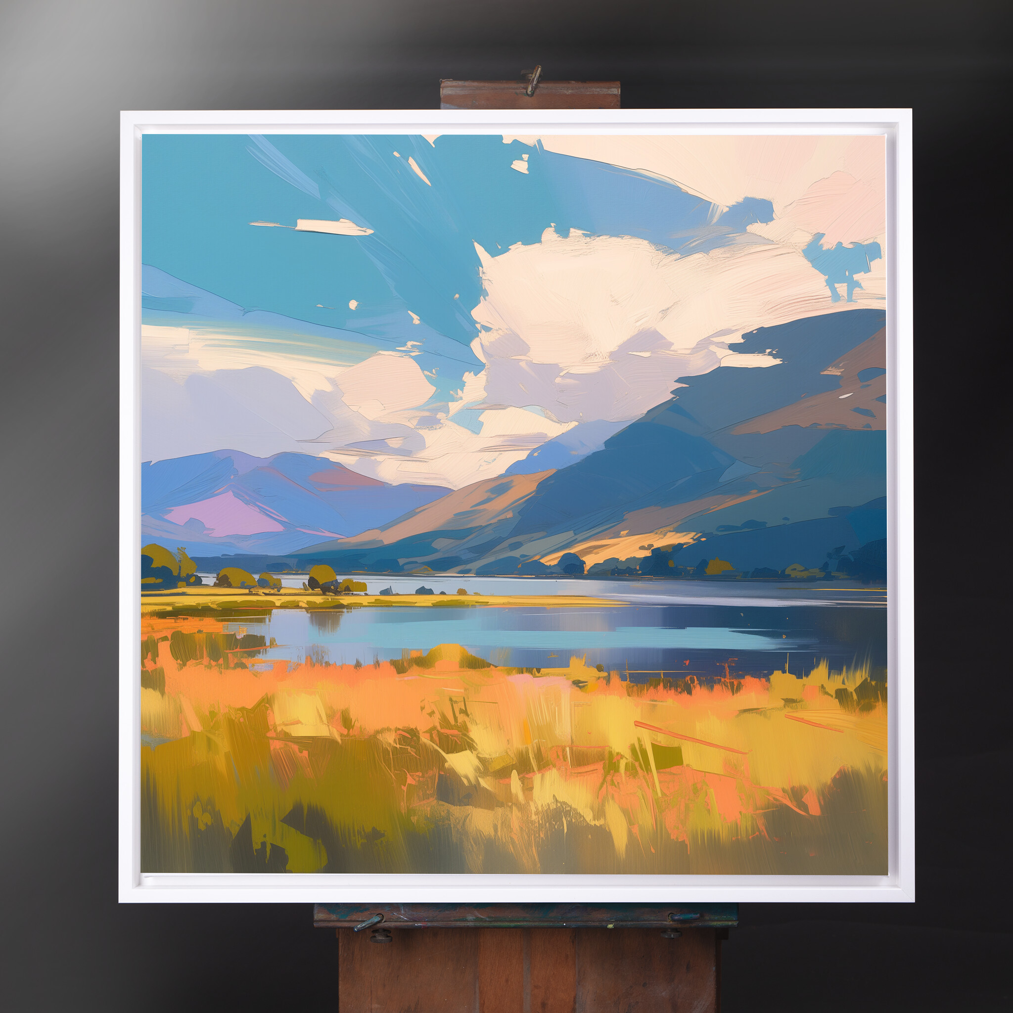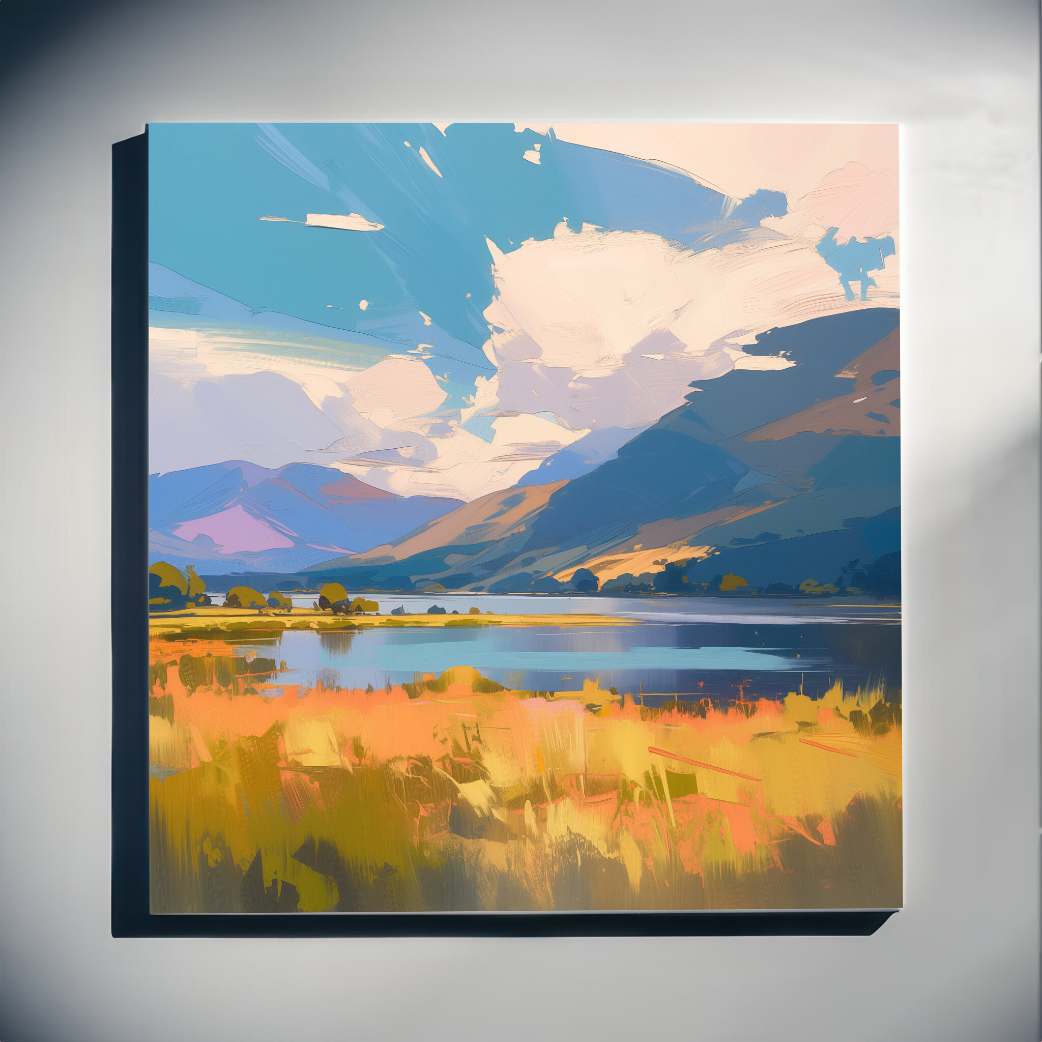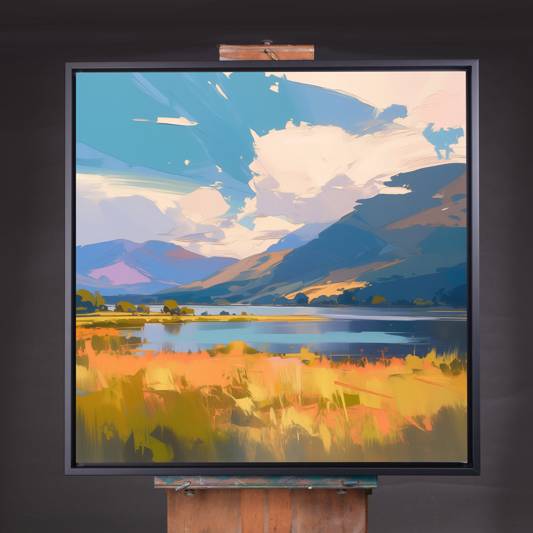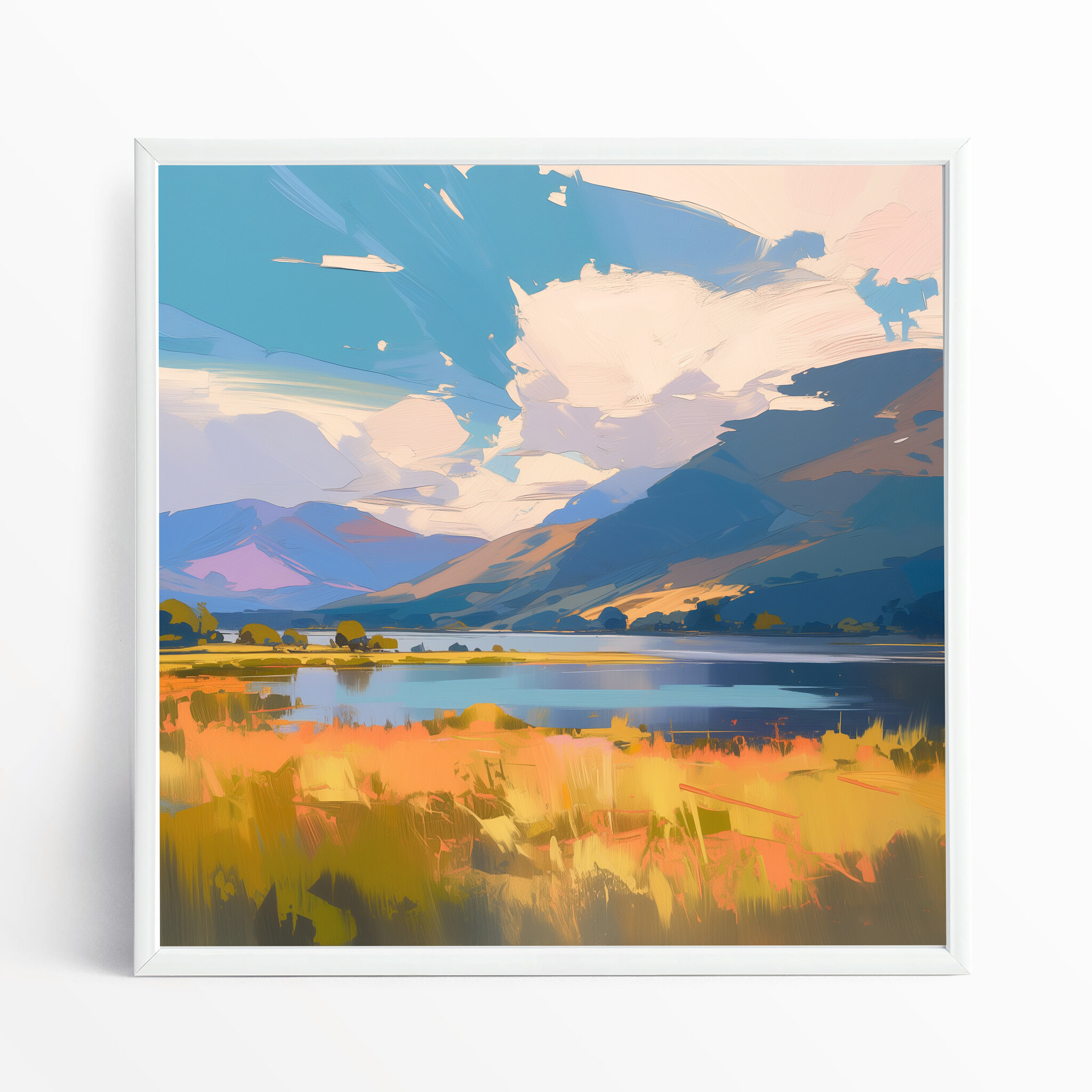 This stunning impressionist artwork vividly captures the serene beauty of the Lake District. With its rich blue hues painting the reflections on the lake, and soft brushstrokes creating a gentle landscape, this piece transports you to a place of calm and contemplation. Perfectly embodying the natural splendour of lakes, it is an elegant addition to any room.