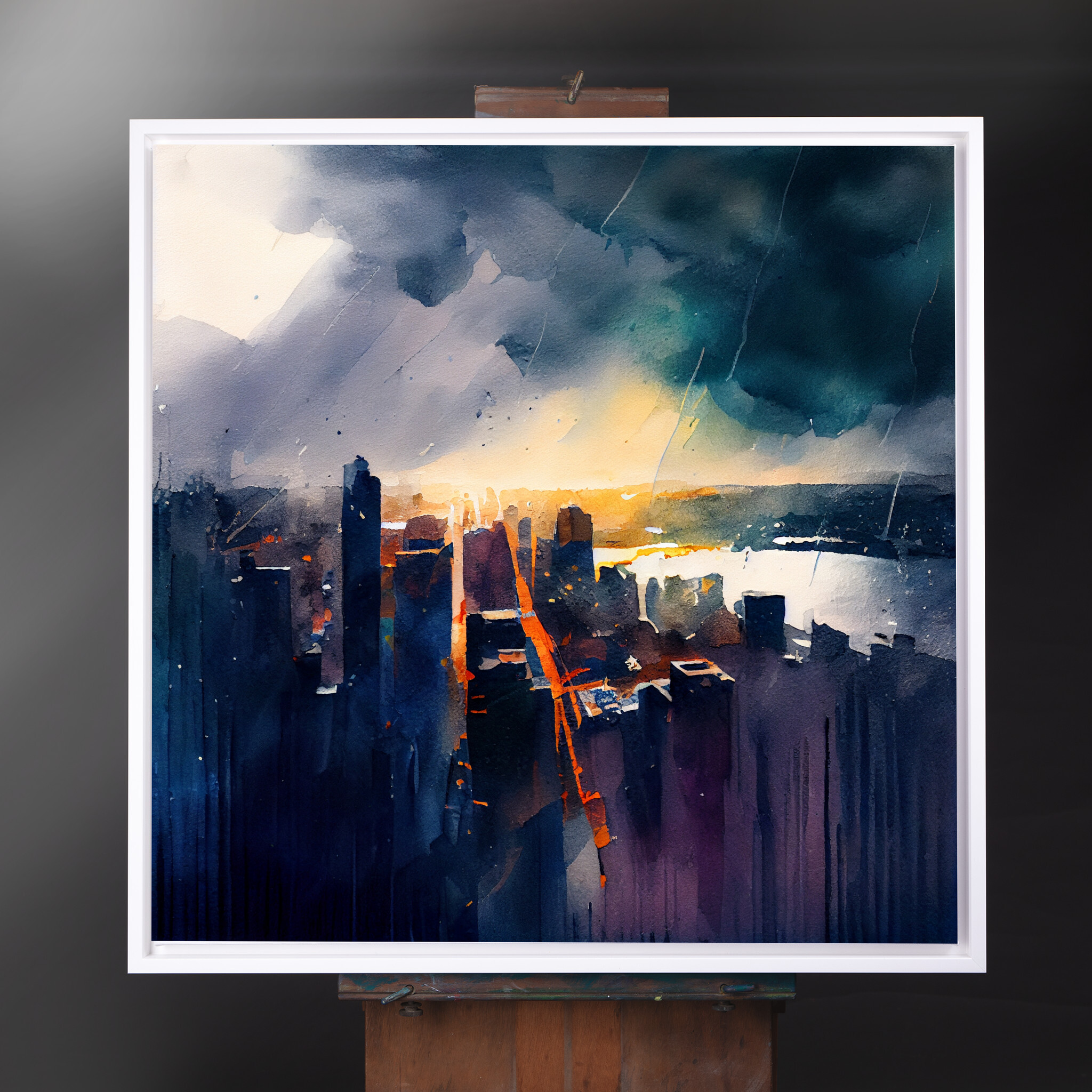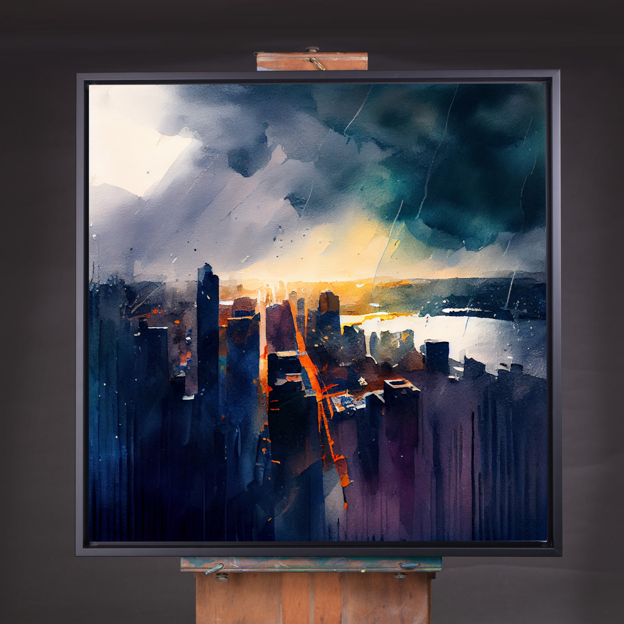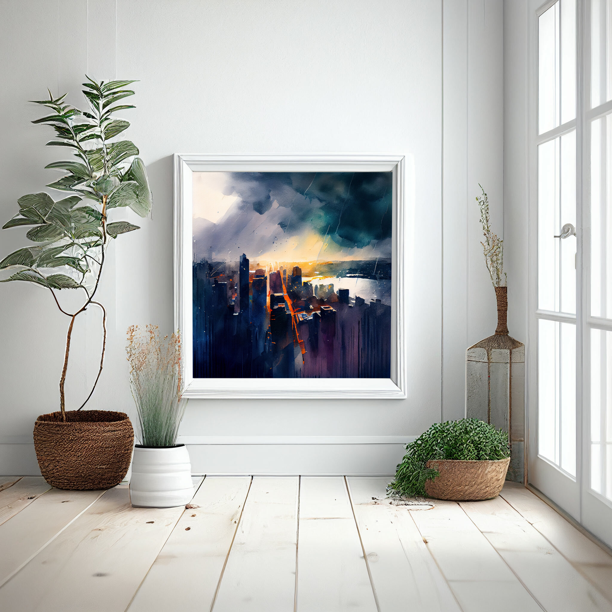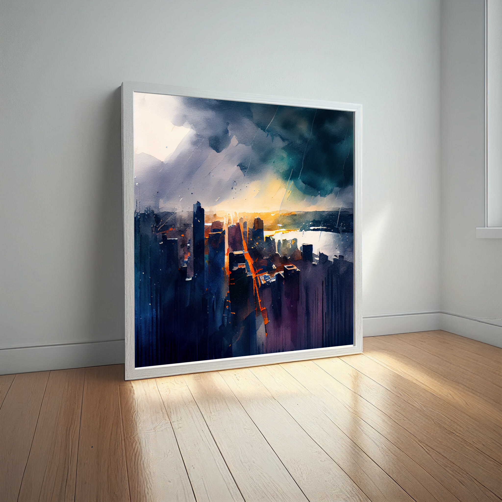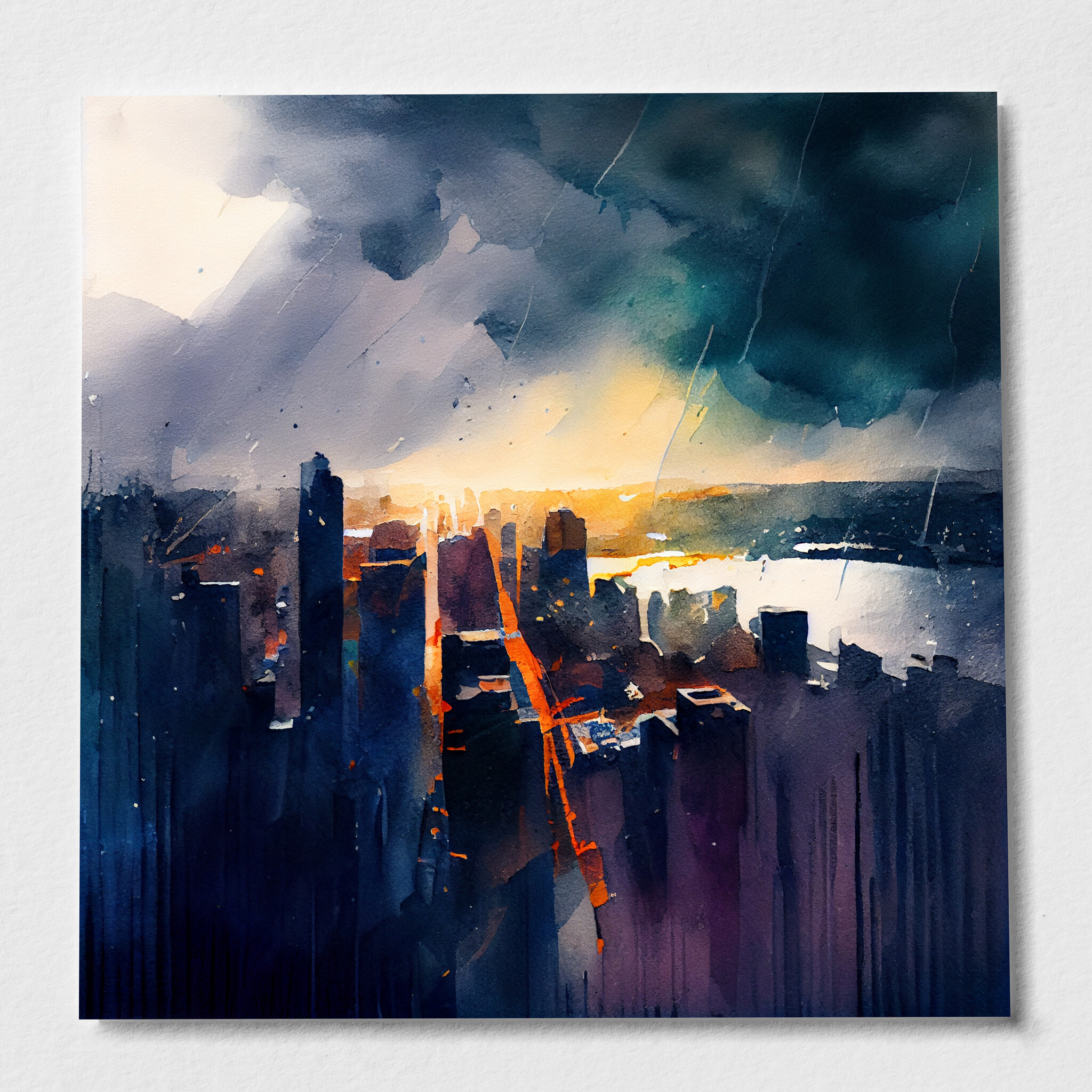 The painting evokes a sense of movement and vibrancy, making it an ideal focal point for spaces needing a splash of colour and character. Its abstract landscape style allows the viewer to wander through the imagined streets of New York, where skyscrapers greet the golden hues of a bustling city. This piece is not only a testament to the beauty of urban scenes but also a versatile element in home decor.