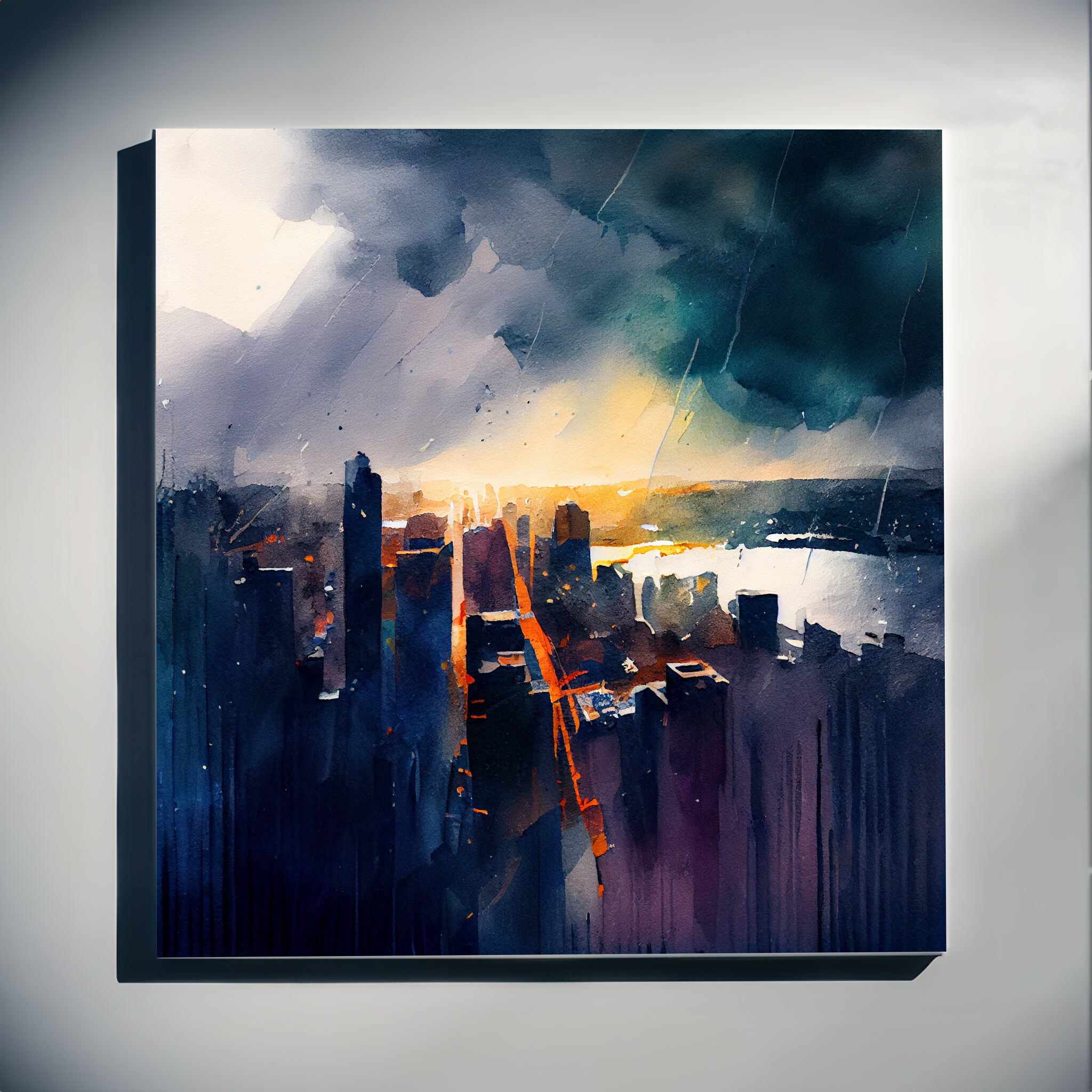 This captivating artwork showcases a stunning abstract cityscape of New York, using rich blue tones and inviting warm tones to convey the city’s dynamic energy. The interplay of light and shadow in this piece reflects the bustling urban environment, making it an eye-catching addition to any wall art collection. Perfectly suitable for adding a touch of sophistication to both living room art and office art, this canvas print embodies the essence of modern urban decor.