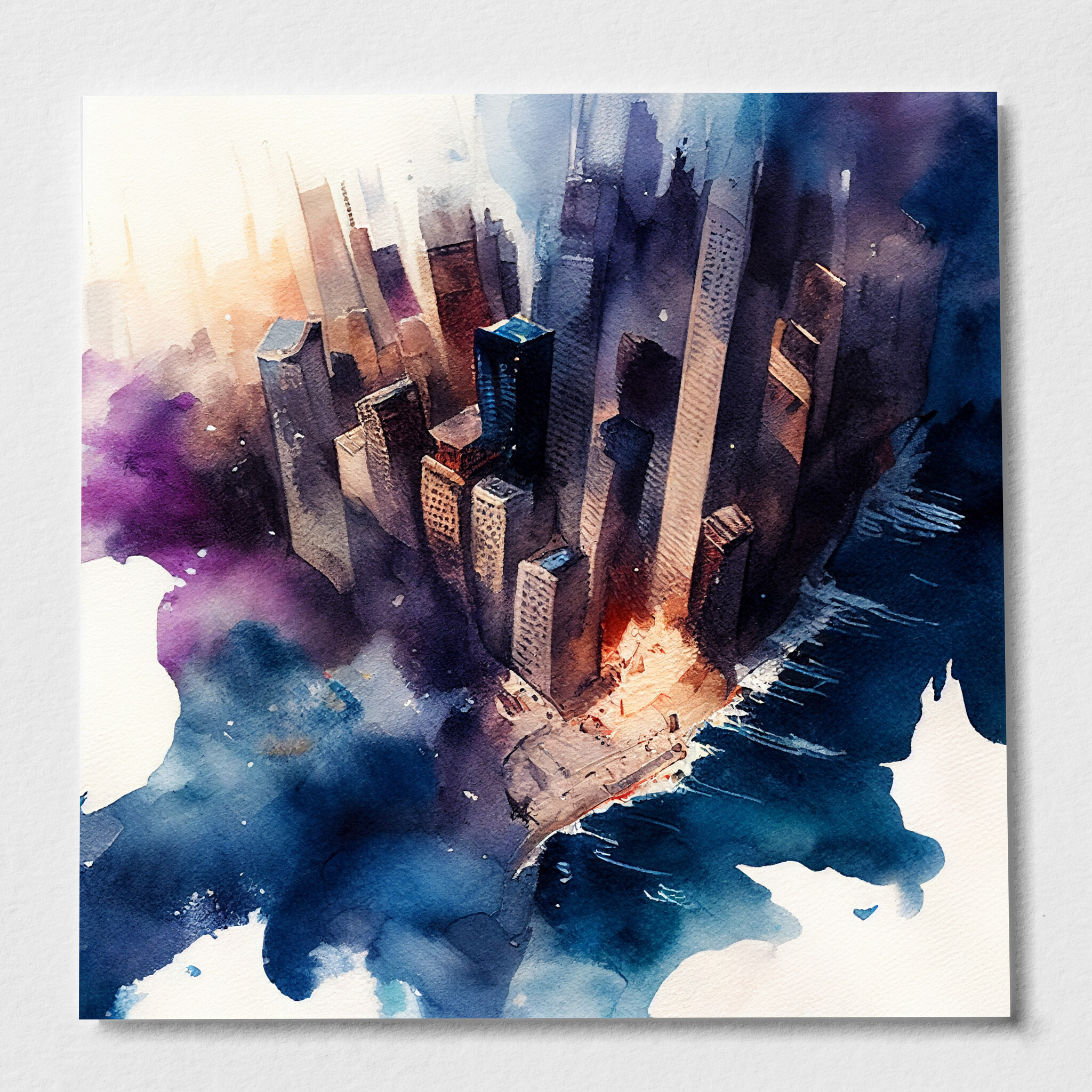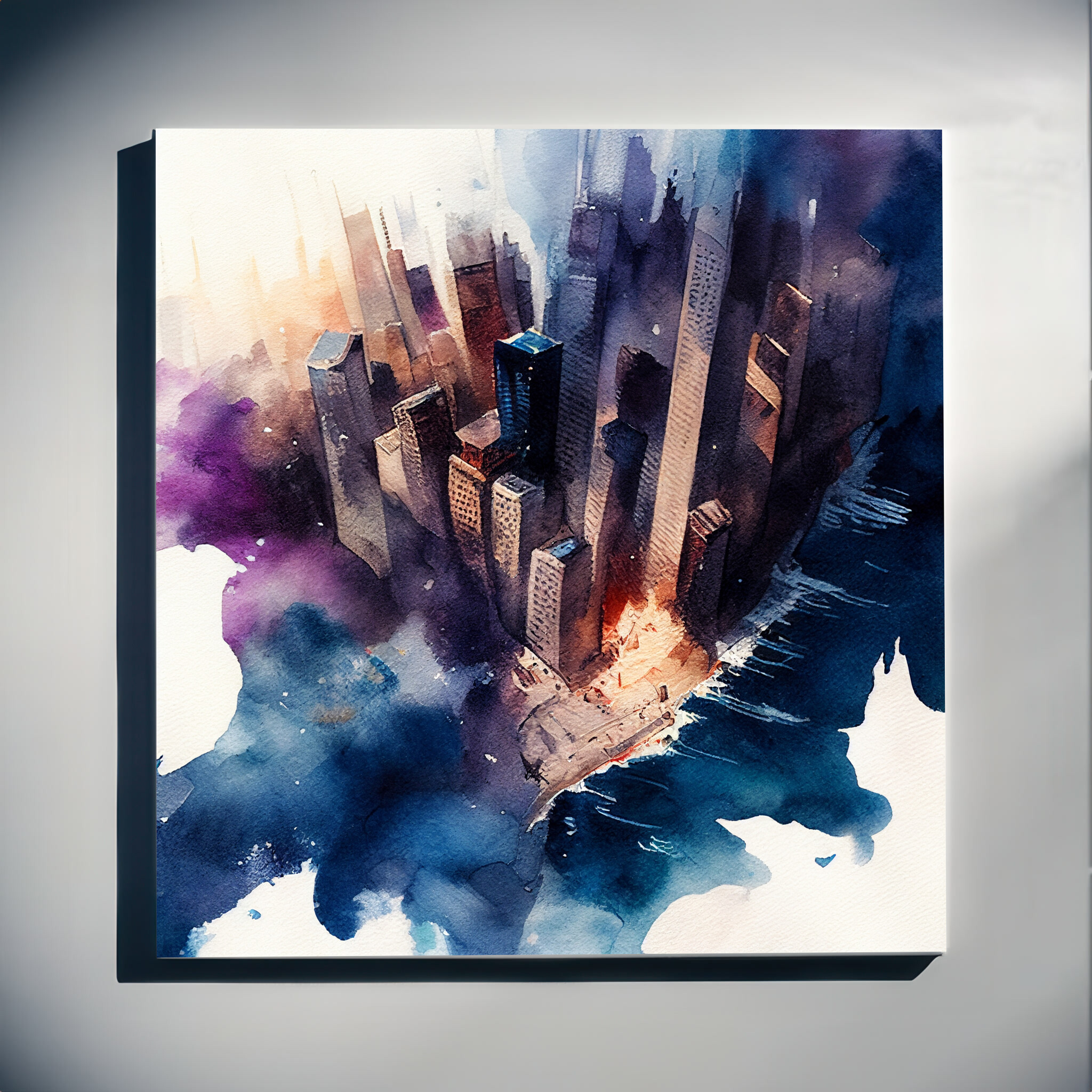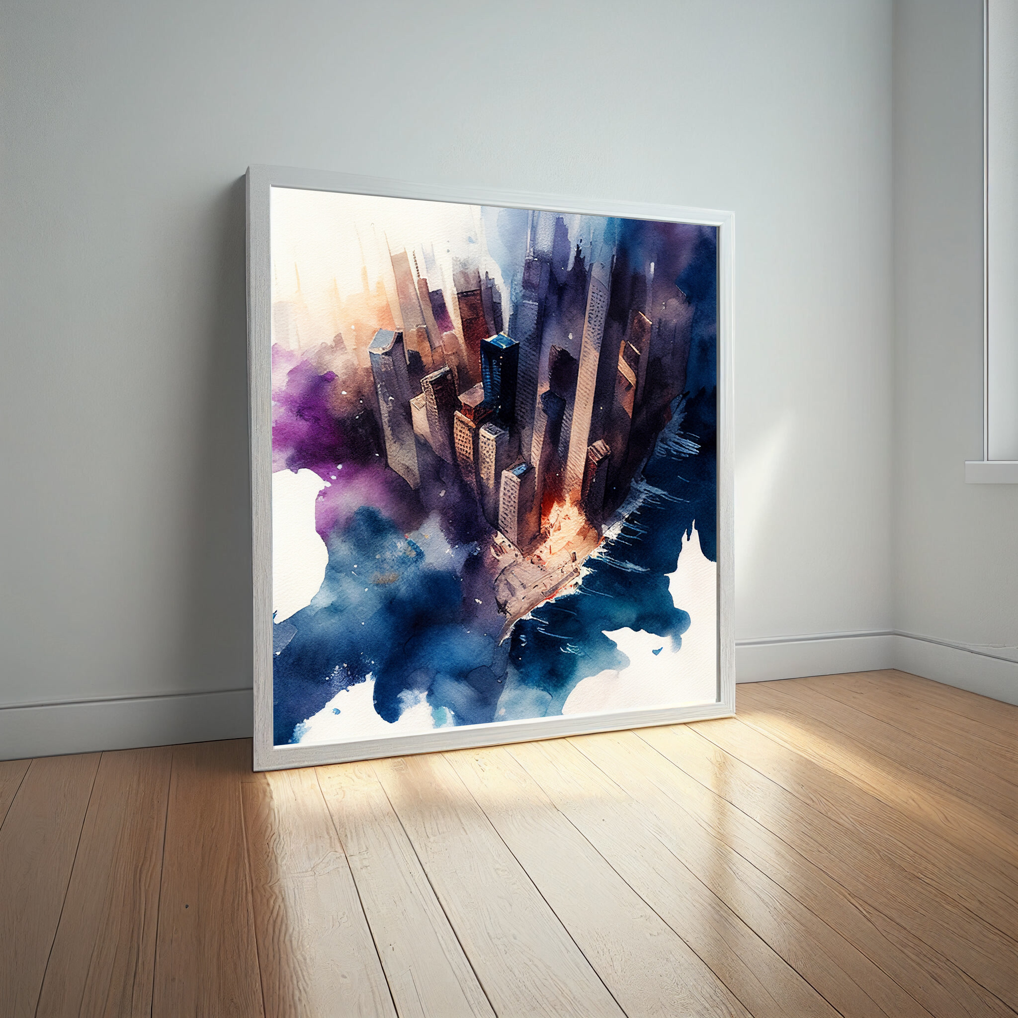 Immerse yourself in the vibrant urban essence of New York with this abstract cityscape. Captured in rich blue and purple tones, the artwork exudes a modern flair that transforms a familiar skyline into a dreamy visual experience. The interplay of colours and abstract style brings a dynamic feel to any space.