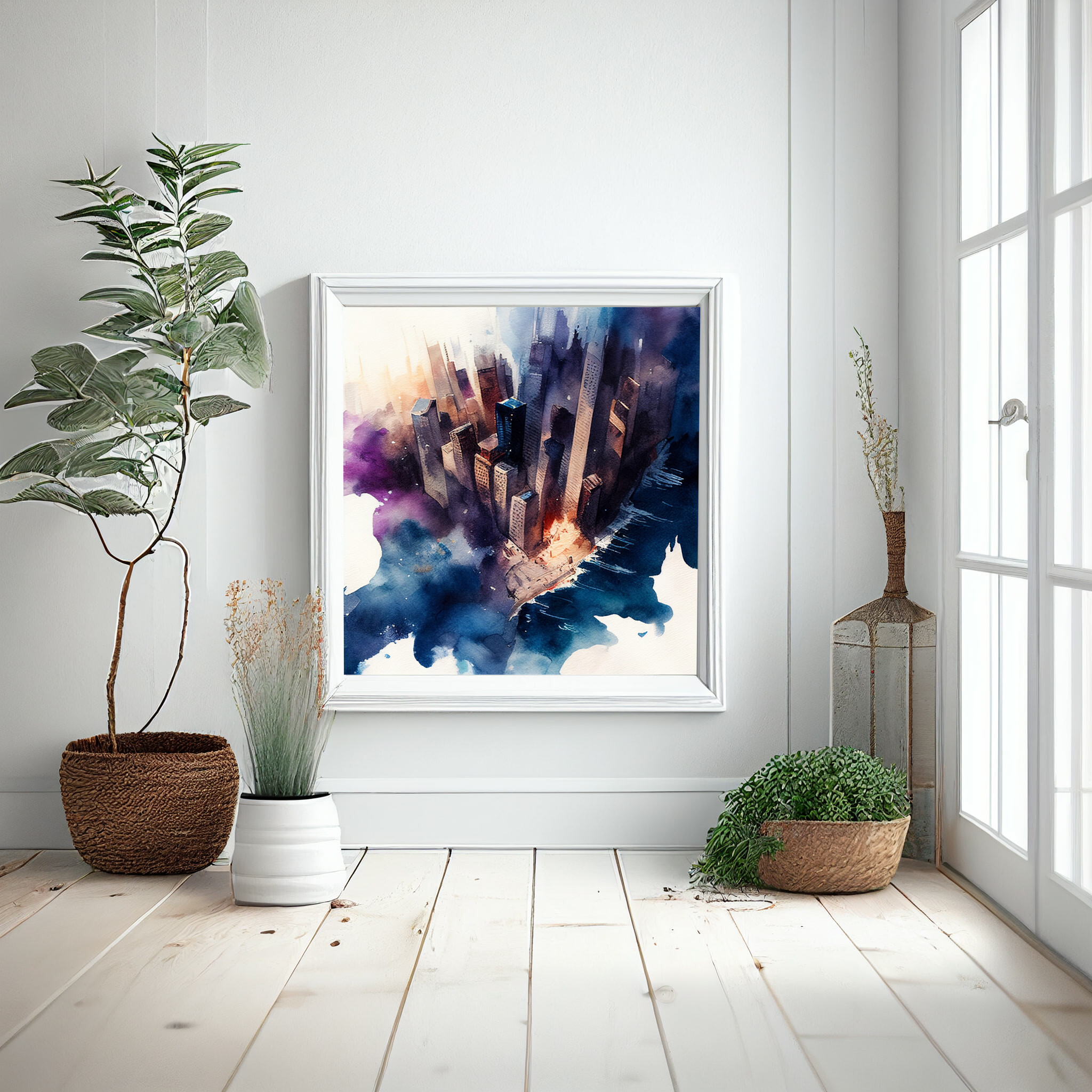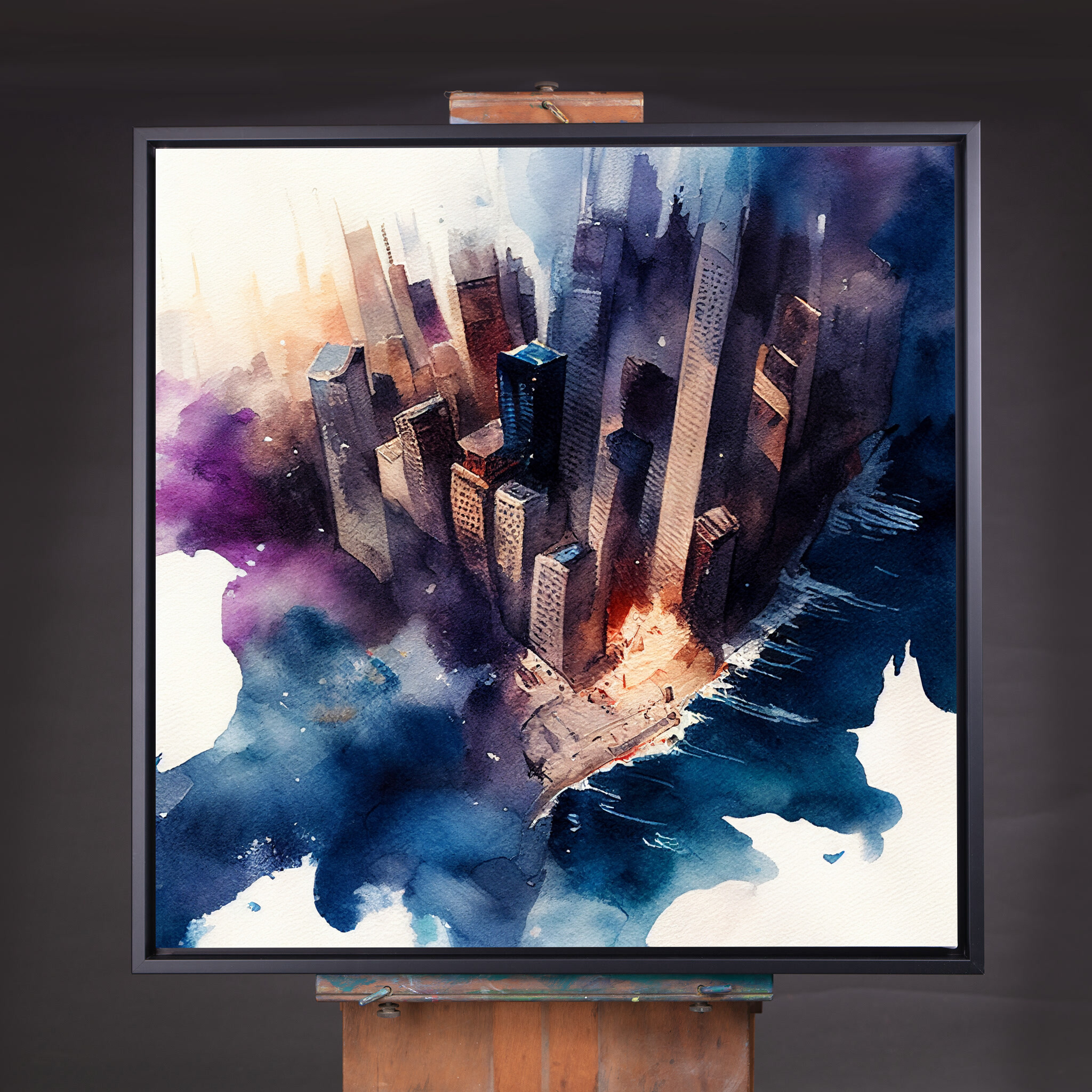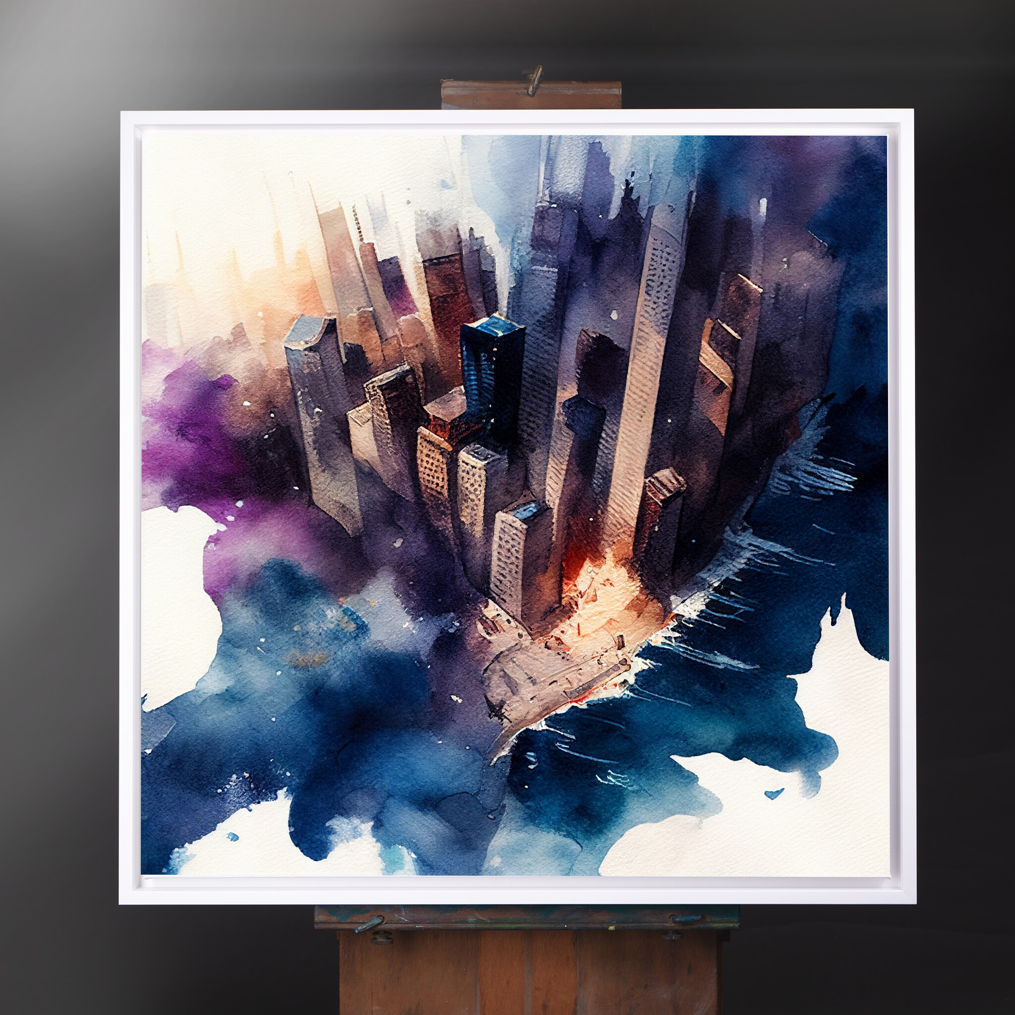Immerse yourself in the vibrant urban essence of New York with this abstract cityscape. Captured in rich blue and purple tones, the artwork exudes a modern flair that transforms a familiar skyline into a dreamy visual experience. The interplay of colours and abstract style brings a dynamic feel to any space.
