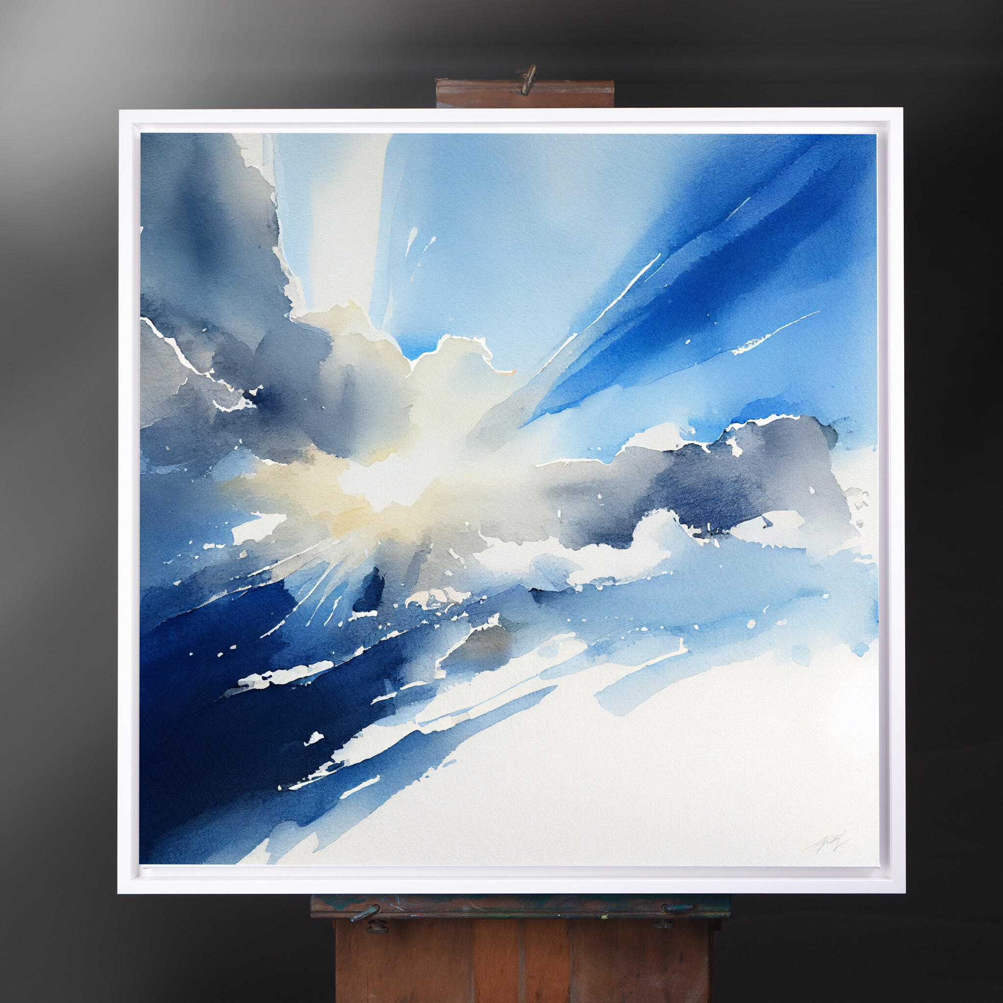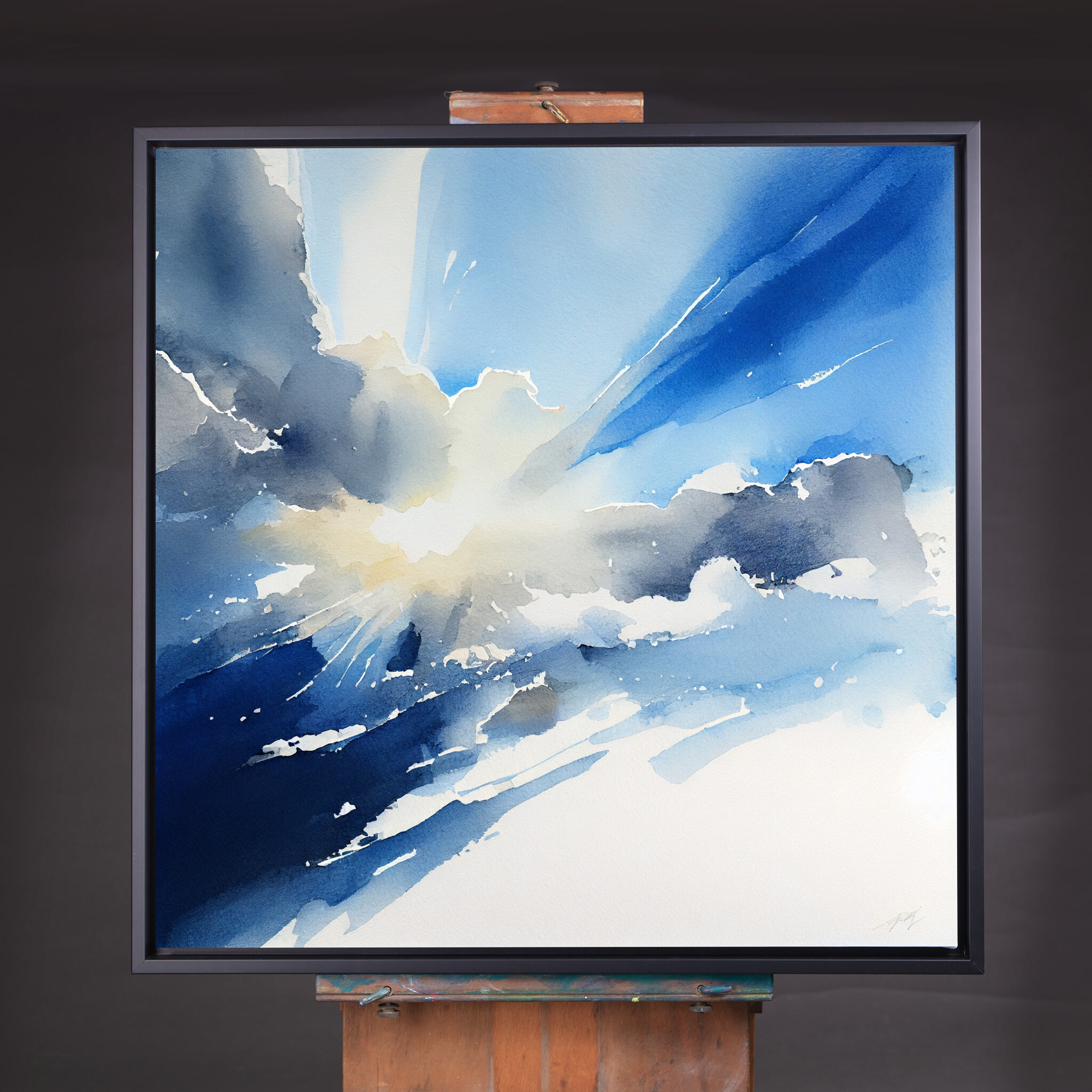 This stunning abstract painting captures the serene beauty of the sky with rich blue tones and grey accents, evoking a sense of calm and wonder. It’s an exquisite piece of wall art for those who appreciate elegant landscape details and a modern artistic touch.