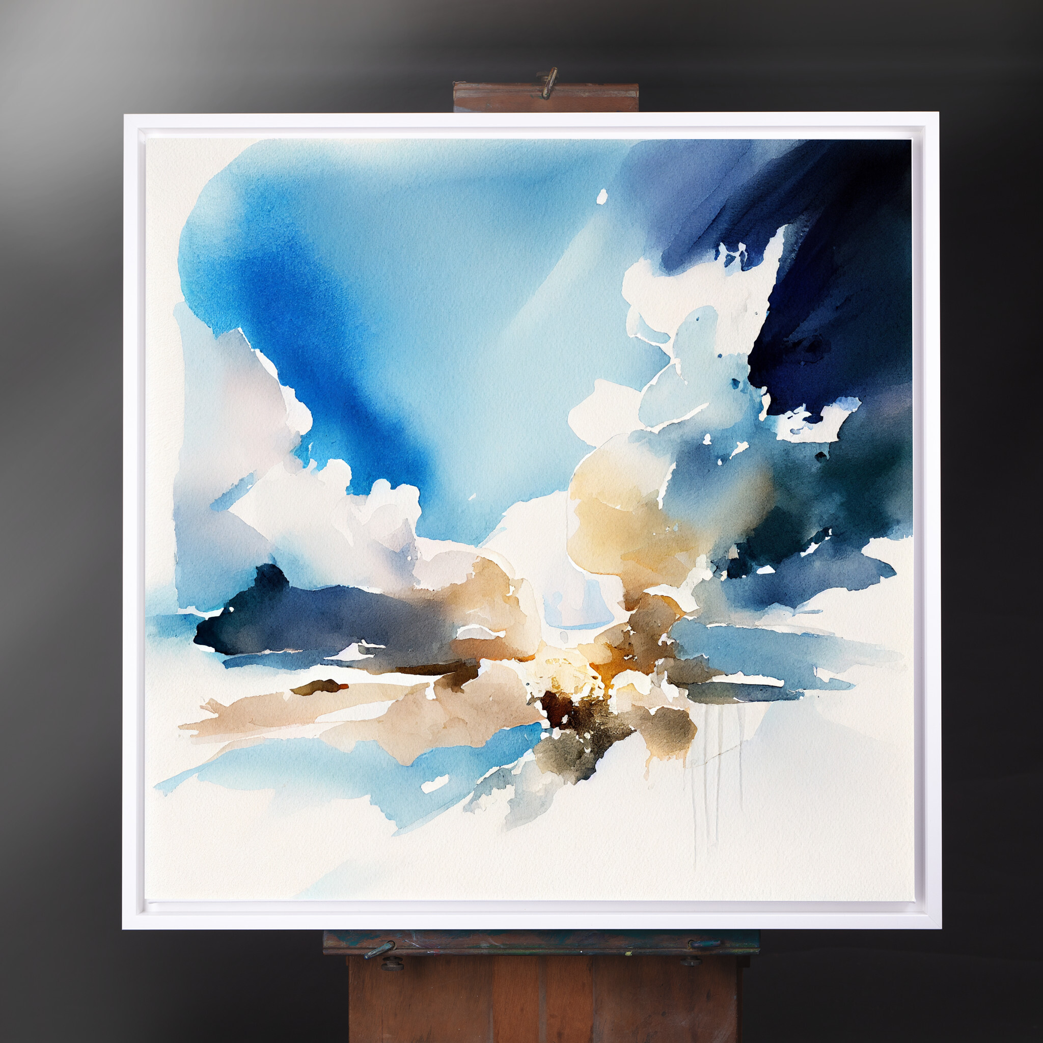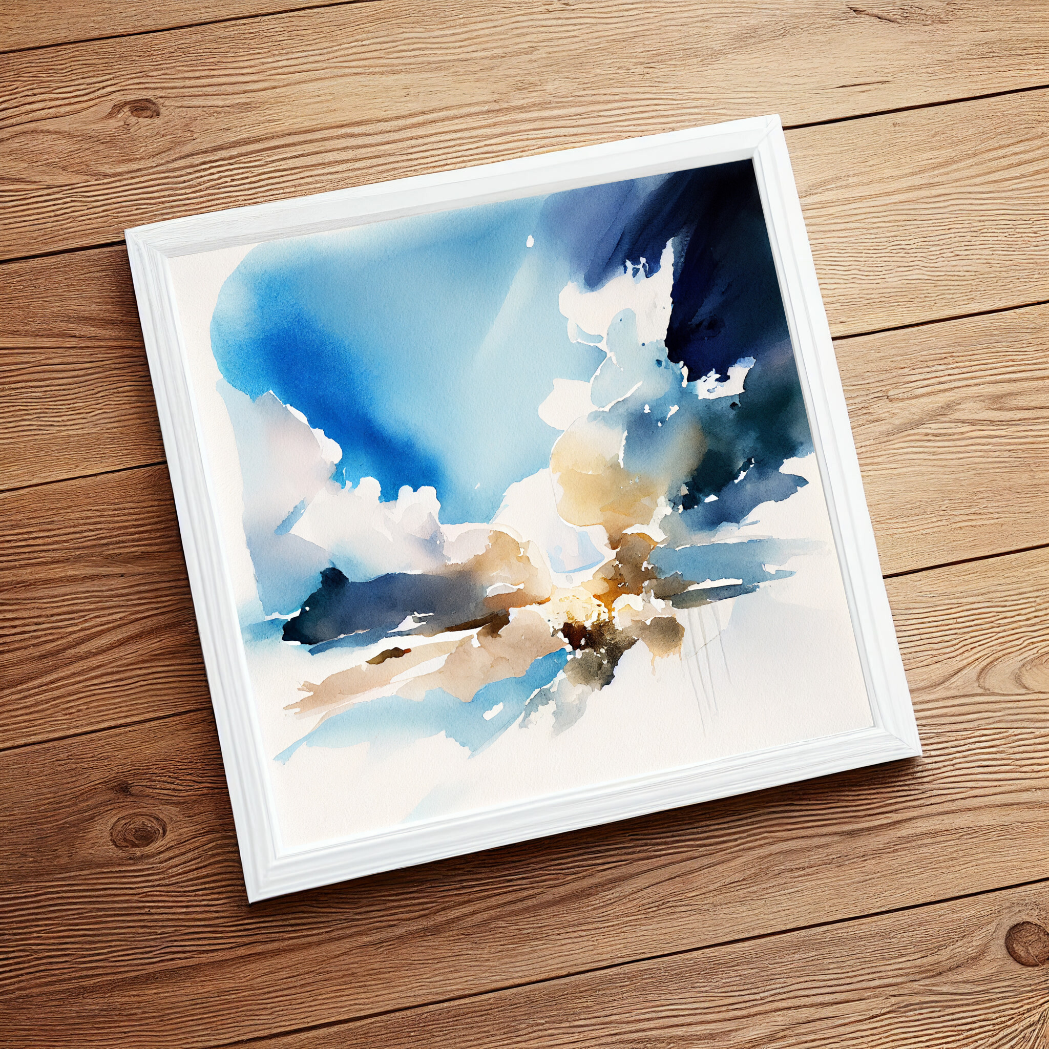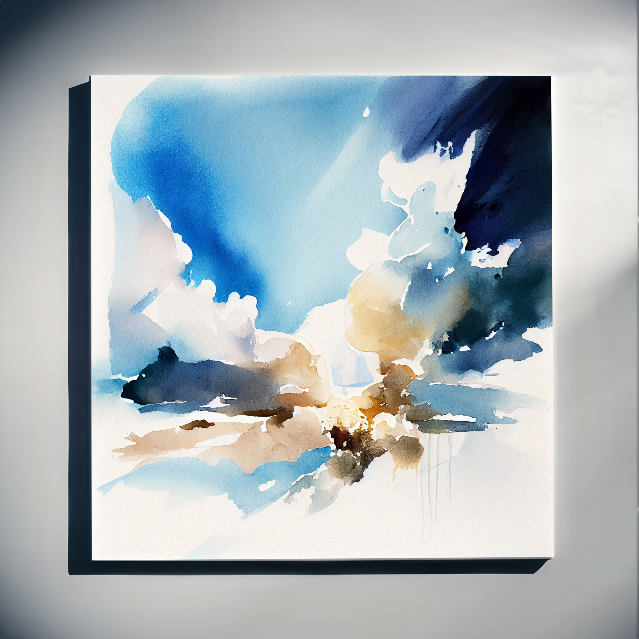 This captivating abstract skyscape features calming blue art intertwined with warm tones, creating a harmonious balance. The modern style and fluid brushstrokes bring the skyscape to life, making it an exquisite piece of wall art. Perfect for those who appreciate abstract landscapes, the artwork captures the serene beauty of the sky.