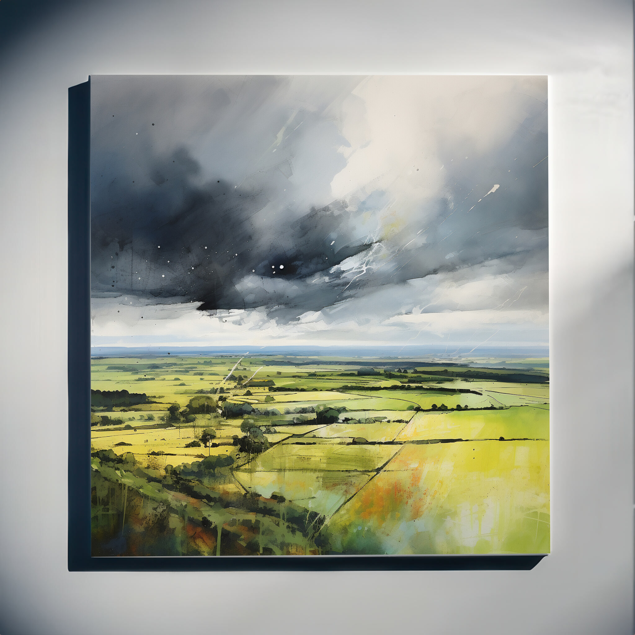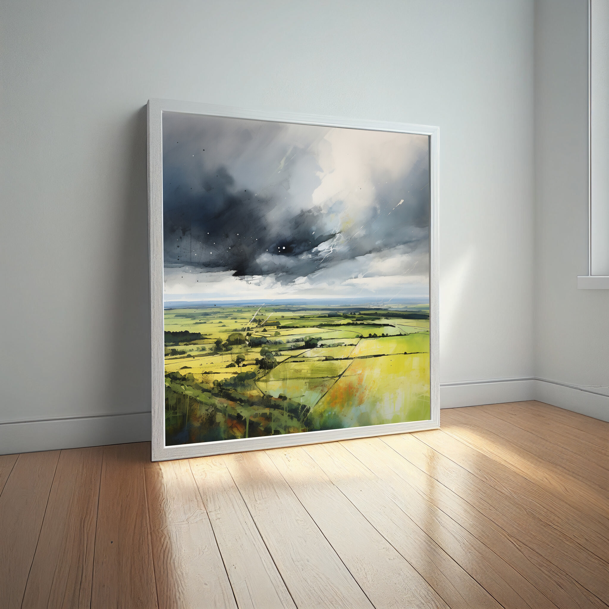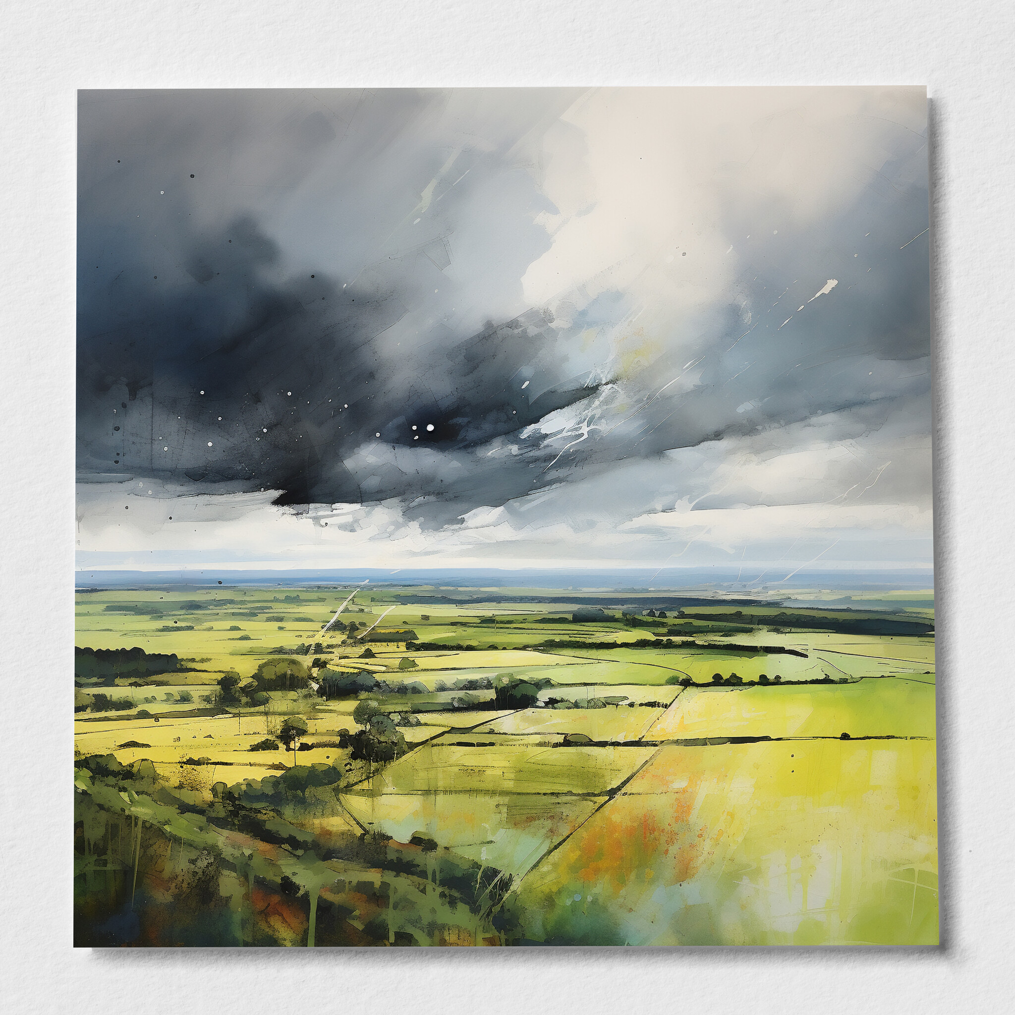 Immerse yourself in the impressionist beauty of the Southdowns, captured in this stunning landscape artwork. The painting showcases the vibrant green fields under dramatic grey skies, offering a sense of tranquility and drama. The piece embodies a unique blend of impressionist style, with a focus on green art and grey tones that bring the Southdowns to life. Perfect for adding a touch of natural beauty to your living room, bedroom, or office.