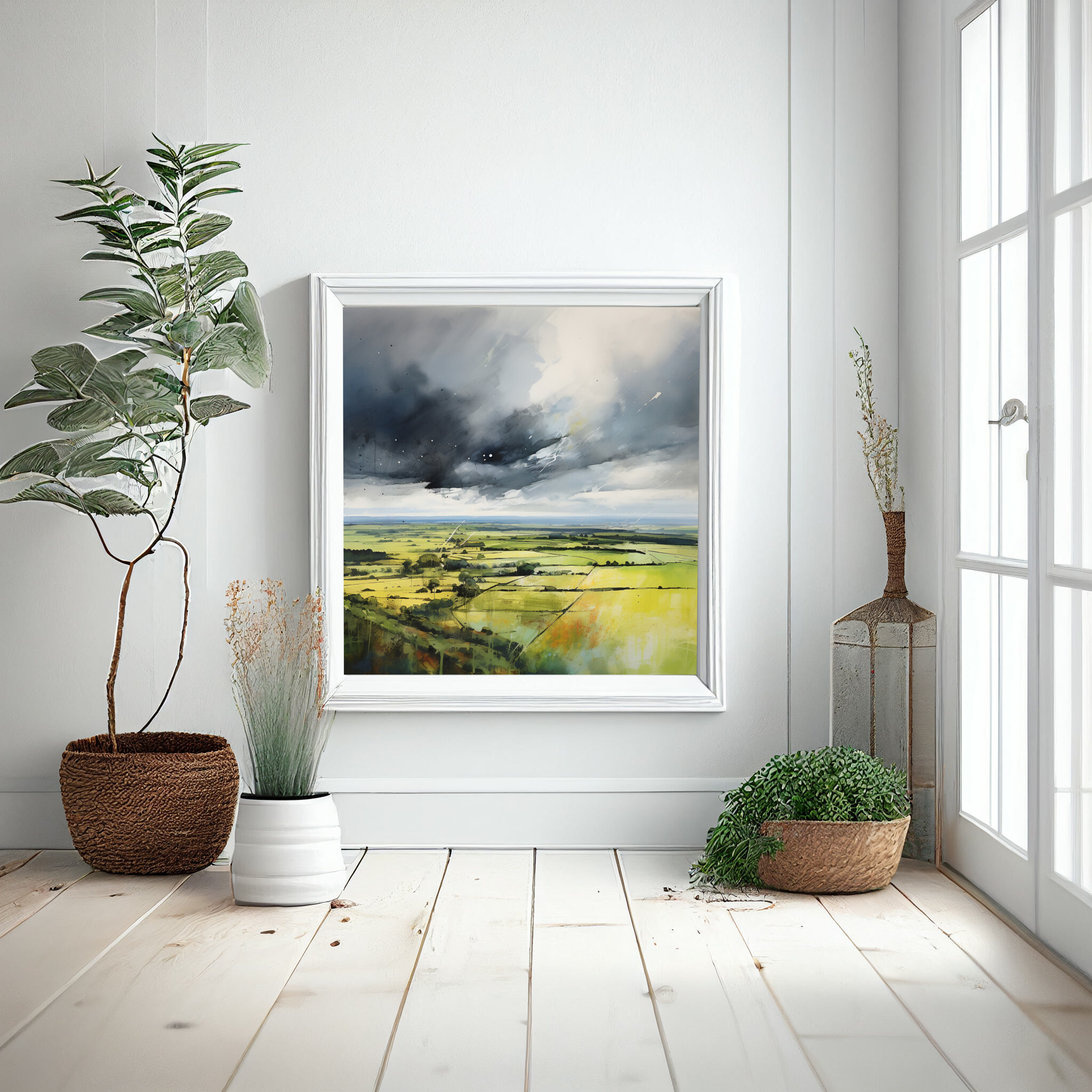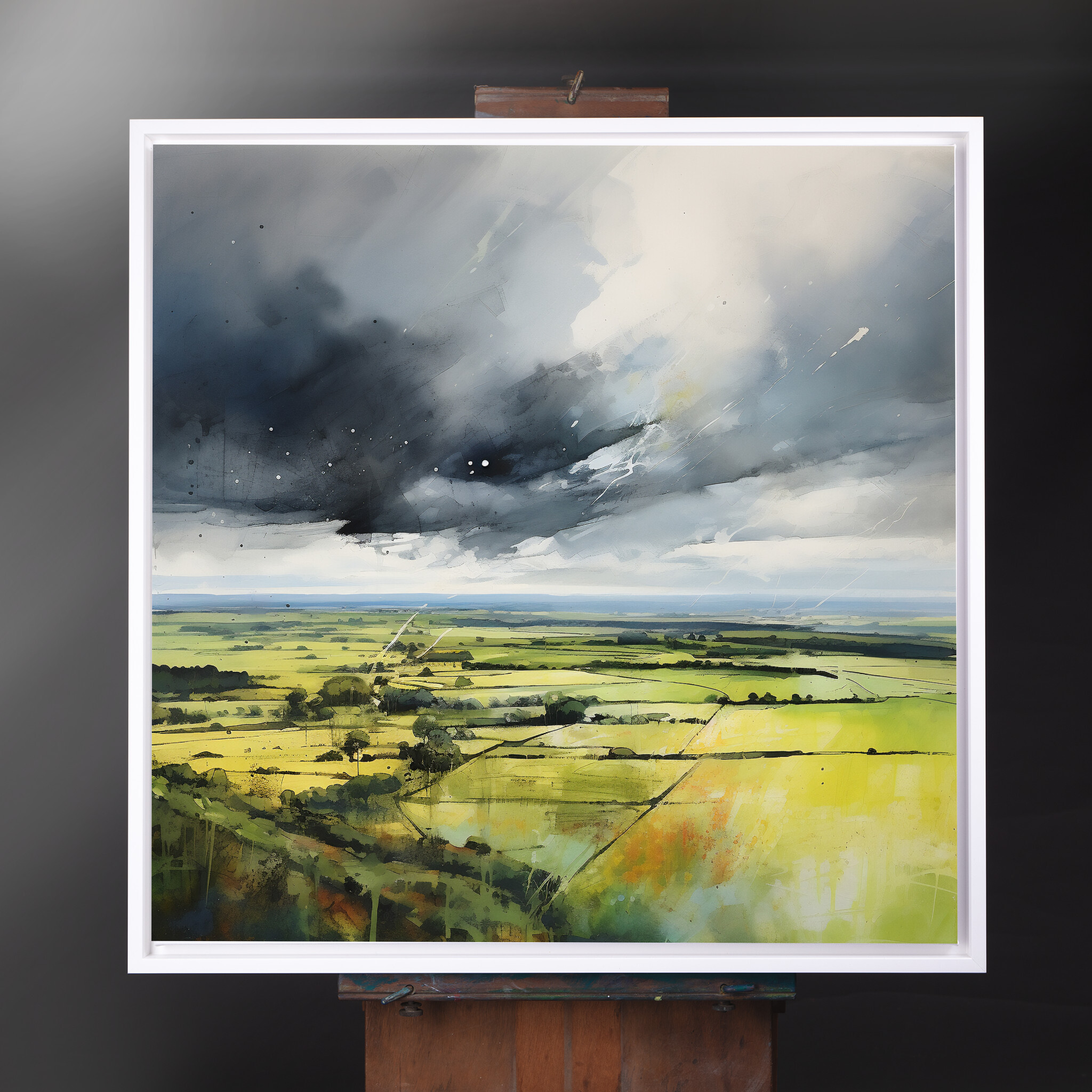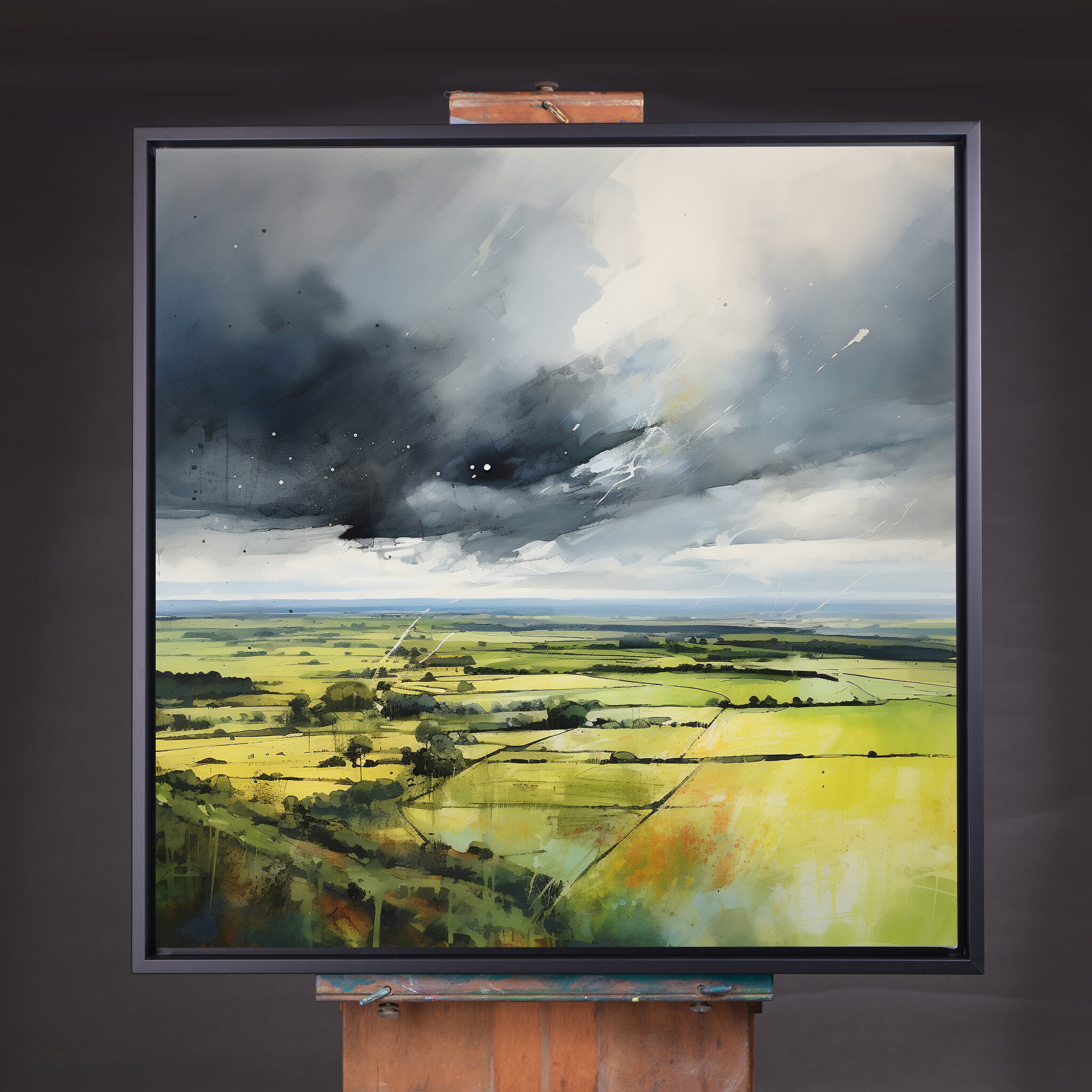 Immerse yourself in the impressionist beauty of the Southdowns, captured in this stunning landscape artwork. The painting showcases the vibrant green fields under dramatic grey skies, offering a sense of tranquility and drama. The piece embodies a unique blend of impressionist style, with a focus on green art and grey tones that bring the Southdowns to life. Perfect for adding a touch of natural beauty to your living room, bedroom, or office.