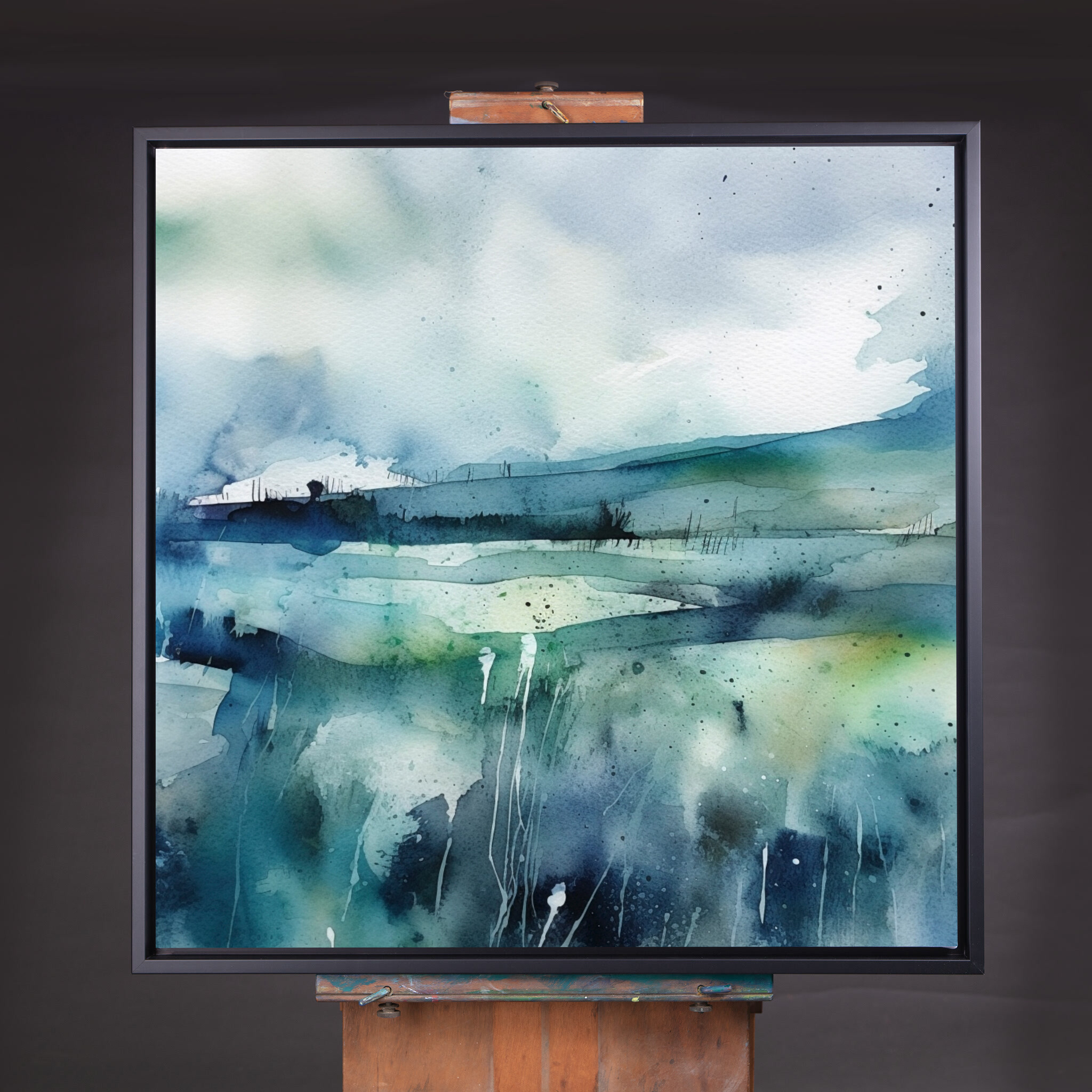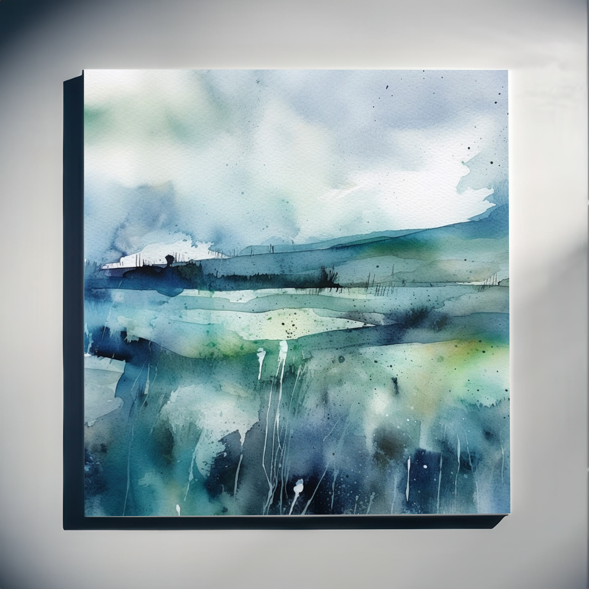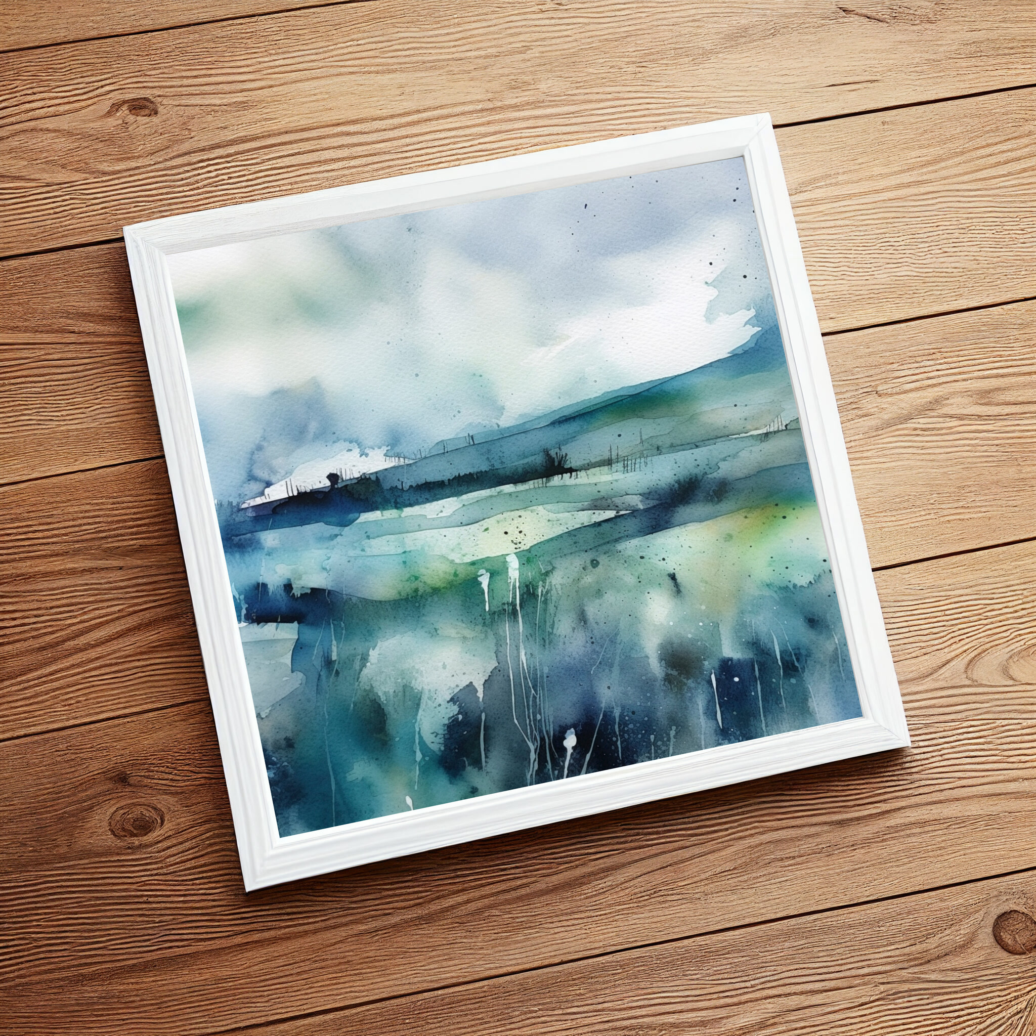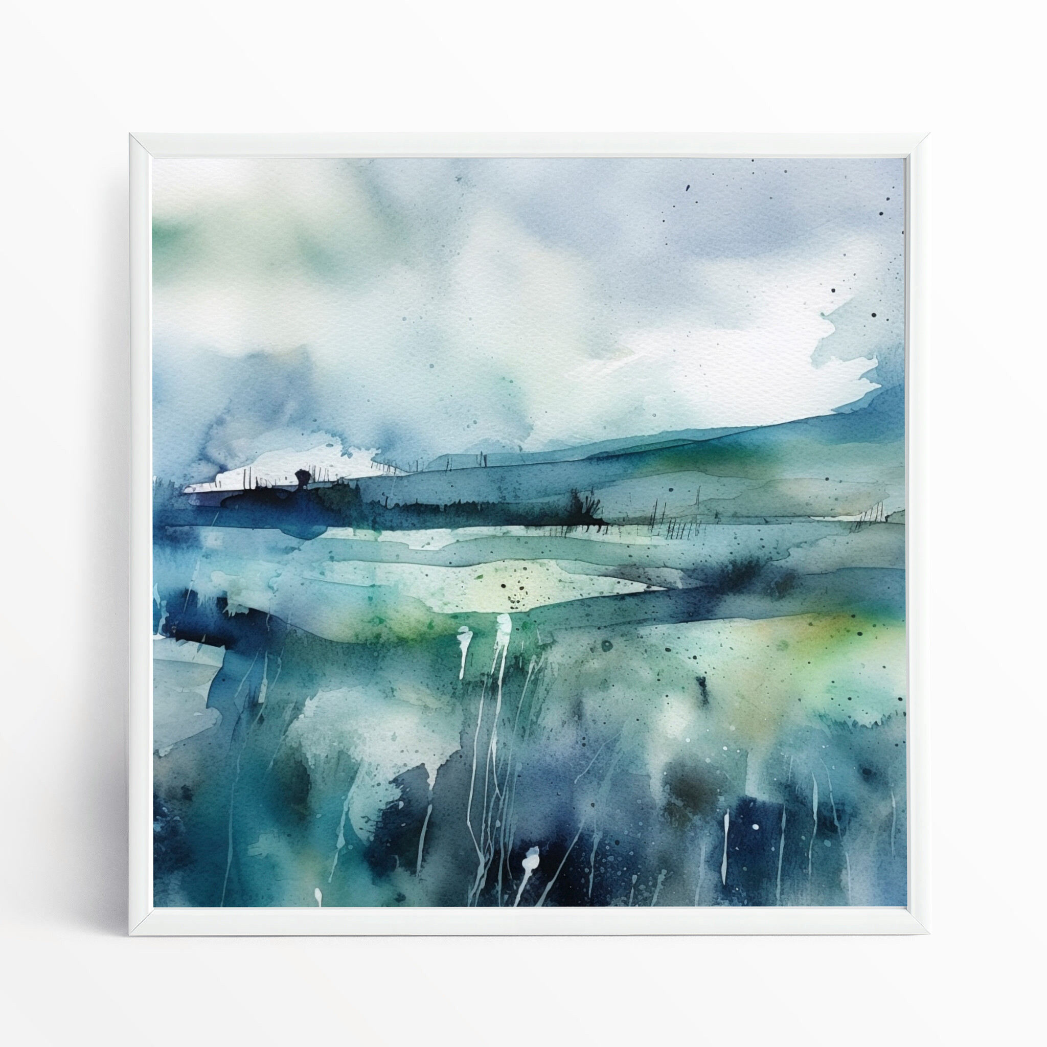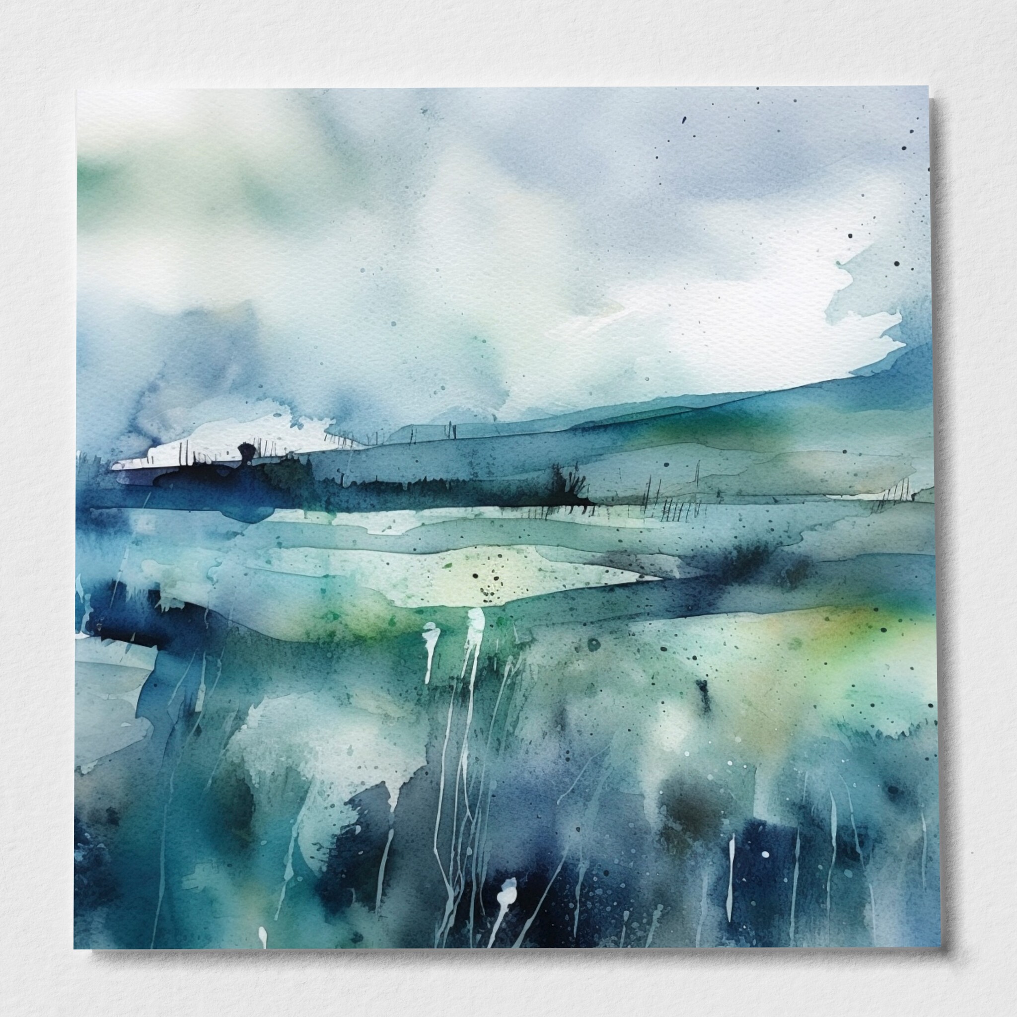 This captivating watercolor landscape depicts the tranquil beauty of the Southdowns, infused with lush blue and green hues. The abstract strokes create a serene landscape scene, capturing the essence of the countryside’s natural elegance. Perfect for adding a touch of tranquility to any setting, this masterpiece is an ideal addition to your living room art collection or as striking bedroom decor.